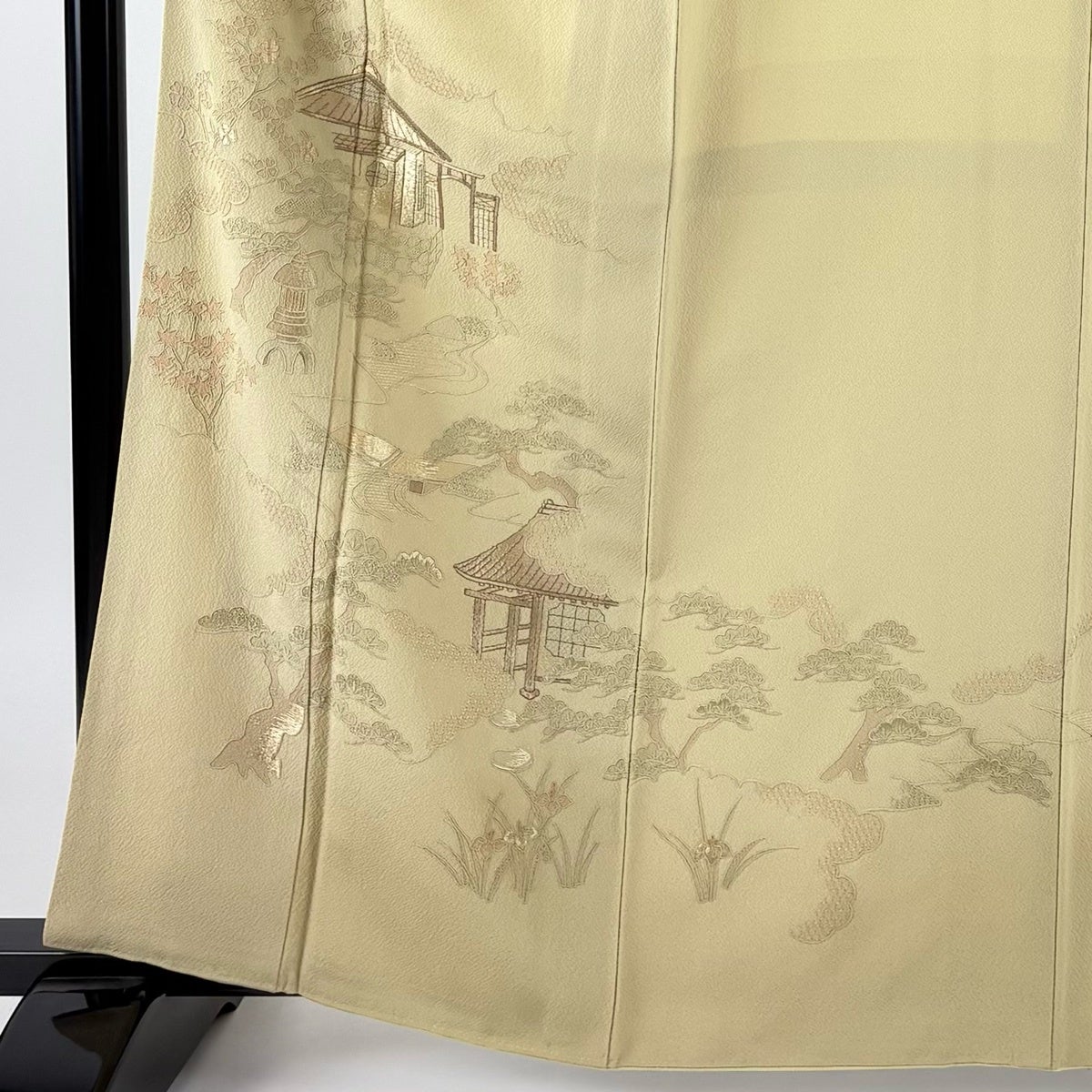【美品】 訪問着 身丈160.5cm 裄丈65cm M 袷 落款あり 辻が花 金彩 抹茶色 正絹 名品