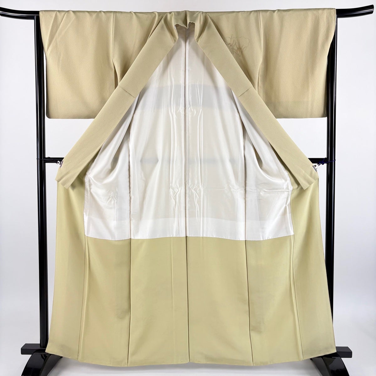 付下げ 身丈166cm 裄丈65cm M 袷 落款あり 枝花 草花 ぼかし ベージュ 正絹 秀品