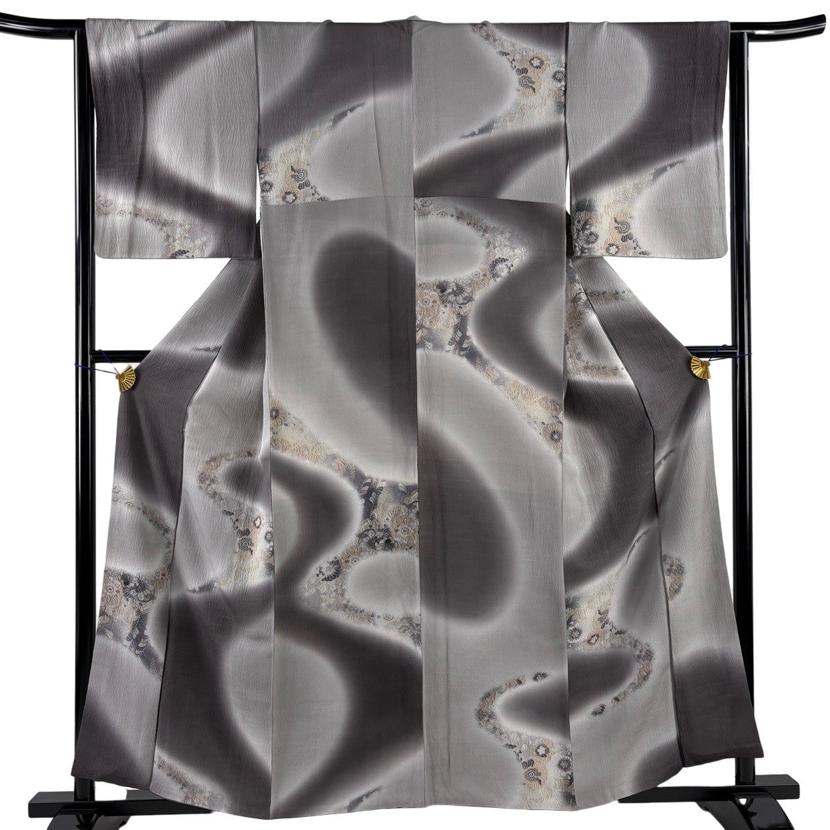 付下げ 身丈159cm 裄丈65cm M 袷 番傘 金糸 金彩 灰色 正絹 秀品