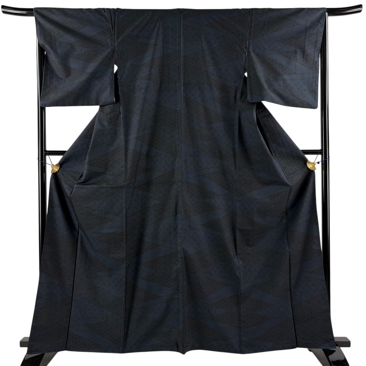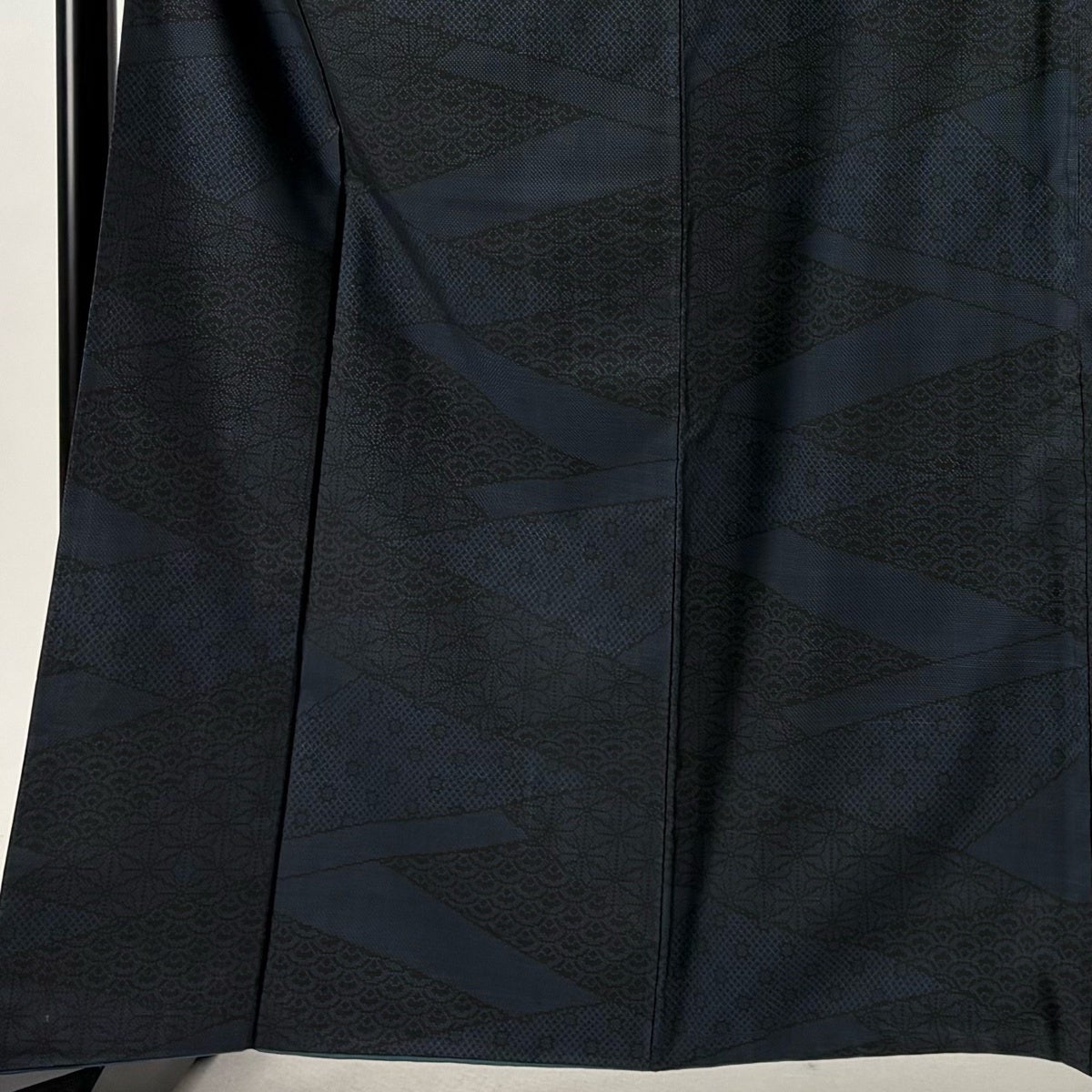 【美品】 紬 身丈167cm 裄丈65cm M 袷 幾何学模様 黒 正絹 優品