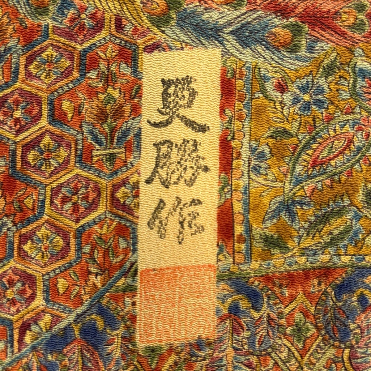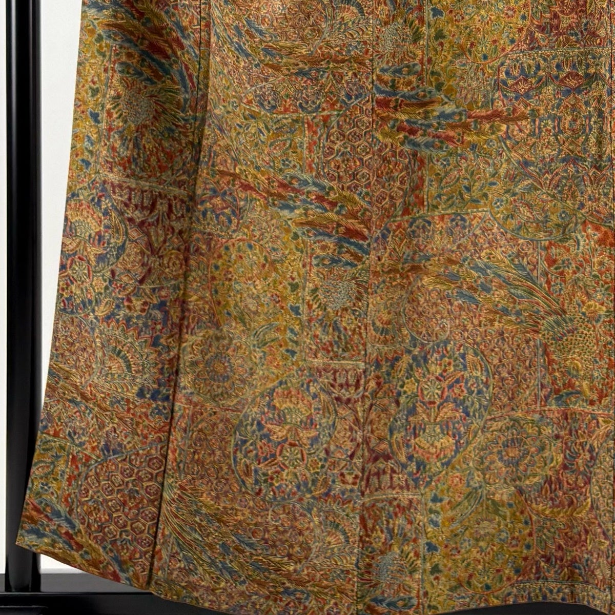 道中着 身丈95cm 裄丈65.5cm M 斉藤三才 和装コート 落款あり 鳥 金銀彩 染め分け 深緑 正絹 名品