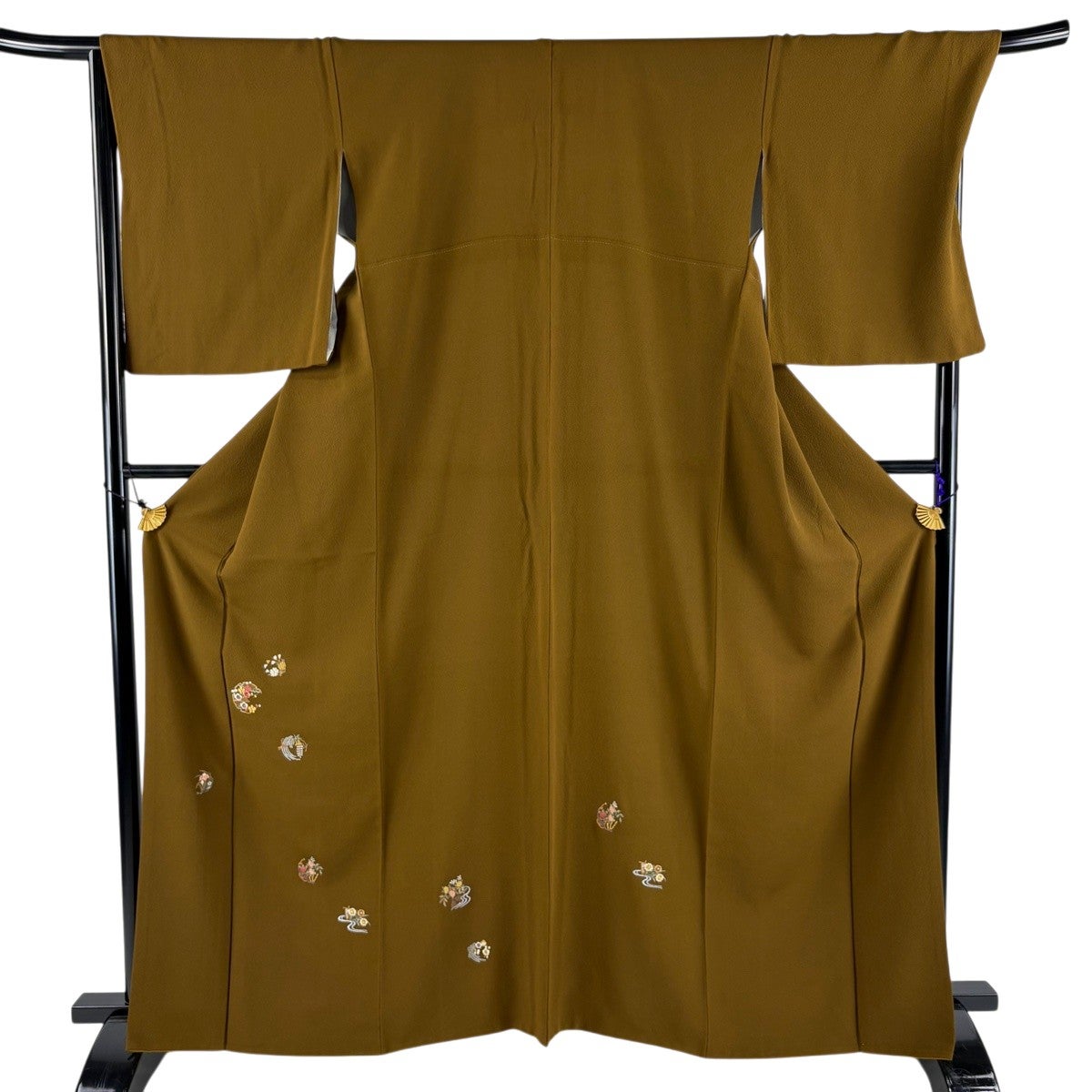 色留袖 身丈169cm 裄丈69cm L 袷 宝尽くし 辻が花 金彩 ぼかし 茶色 正絹 秀品 一つ紋