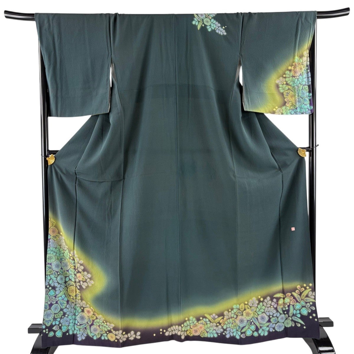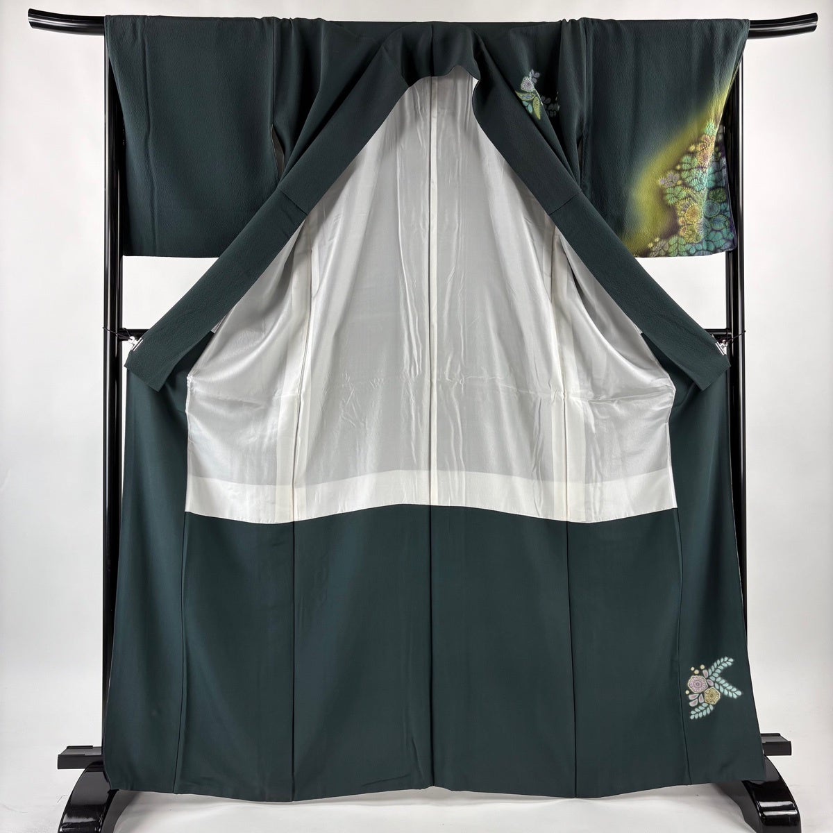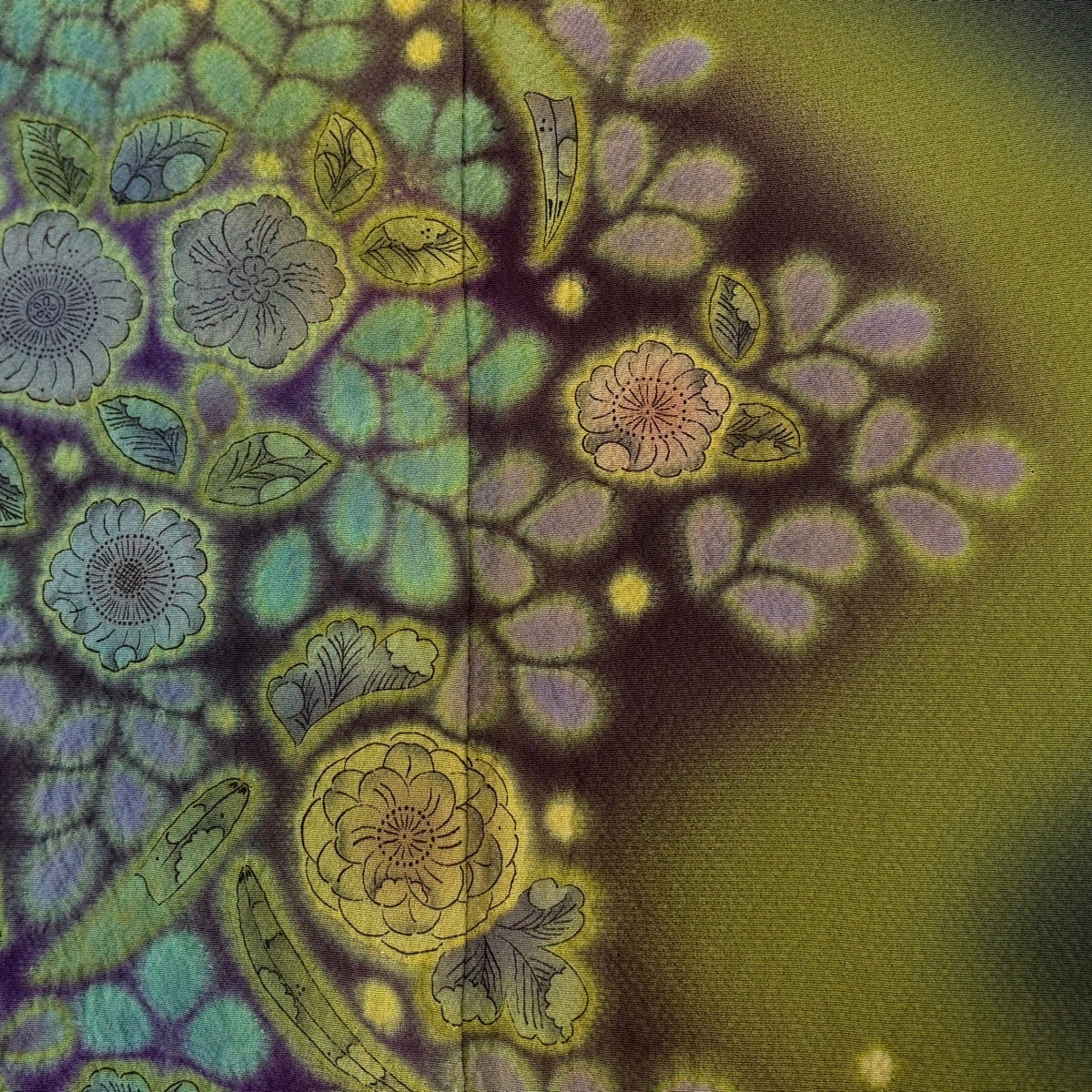 訪問着 身丈167cm 裄丈69cm L 袷 落款あり 辻が花柄 霞 絞り 深緑 正絹 名品