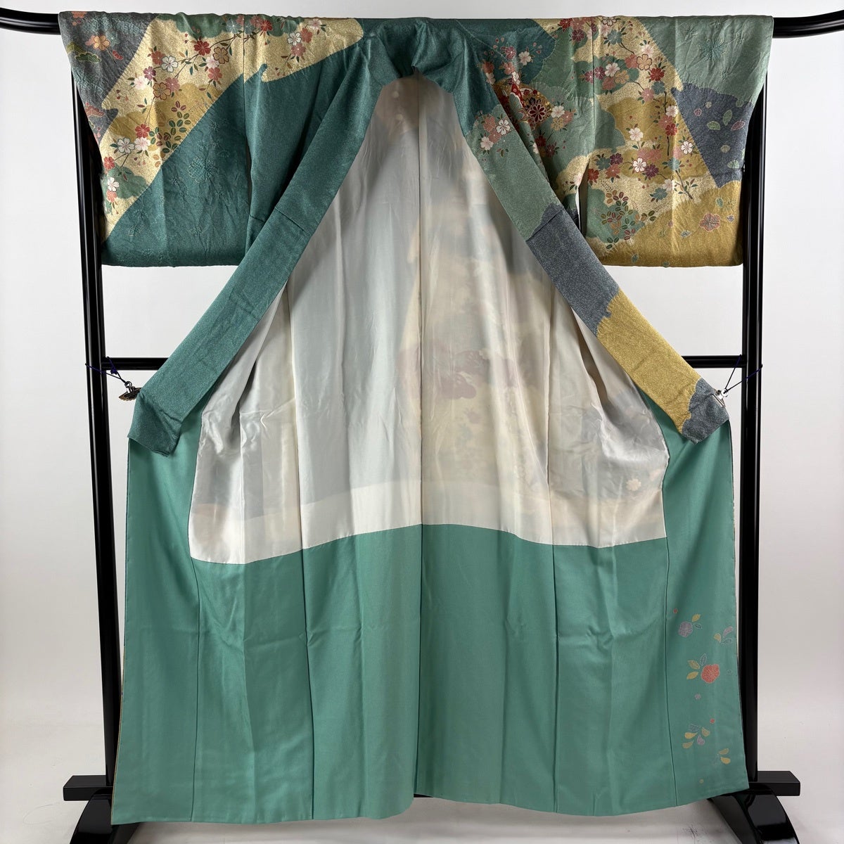 50%OFF 振袖 身丈168cm 裄丈69cm L 袷 桜 金糸 金彩 黒 正絹 逸品 K50