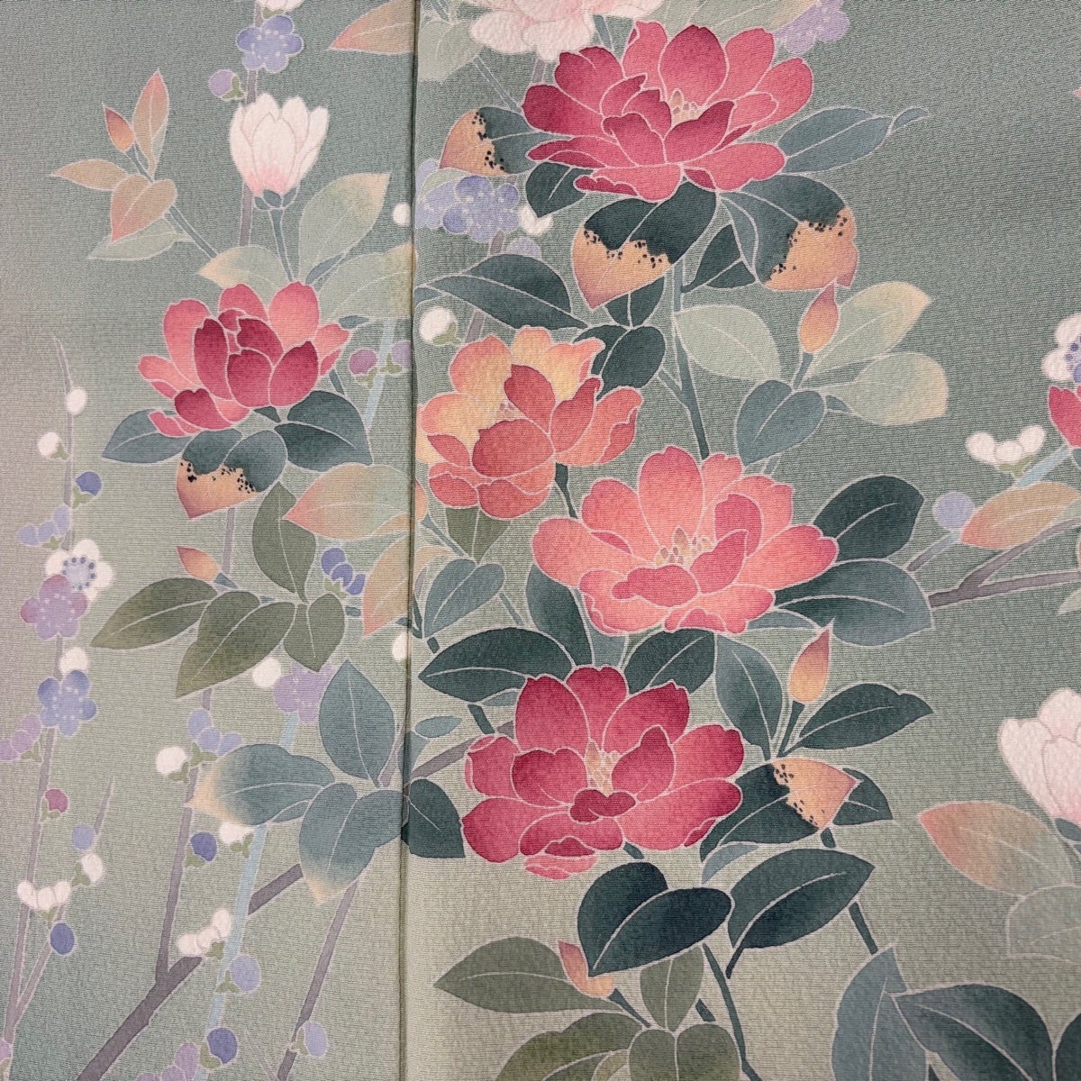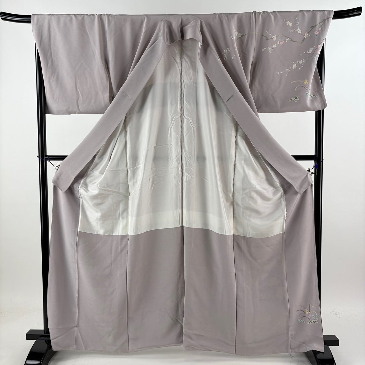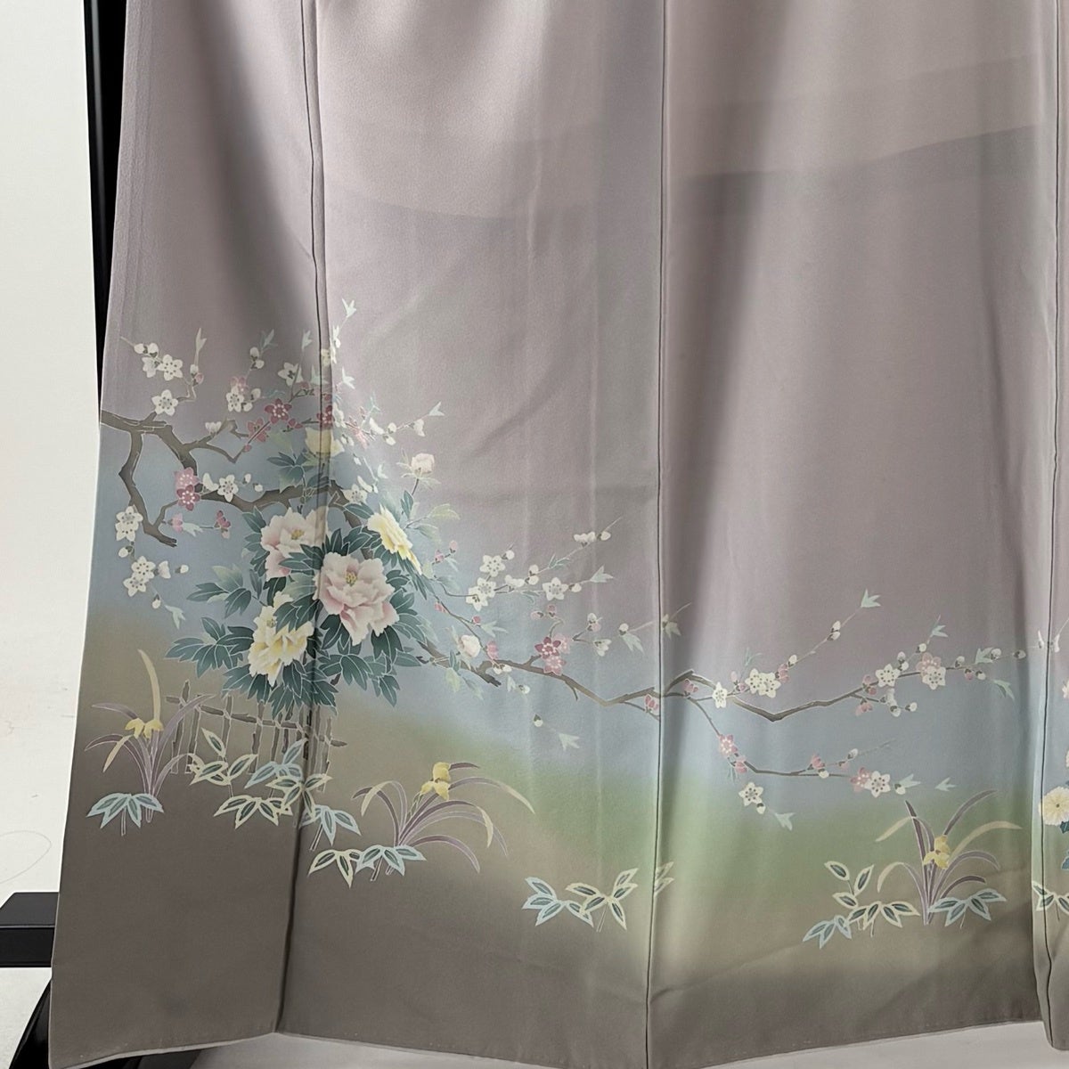 訪問着 身丈164cm 裄丈69cm L 袷 落款あり 牡丹 枝花 ぼかし 灰紫 正絹 秀品