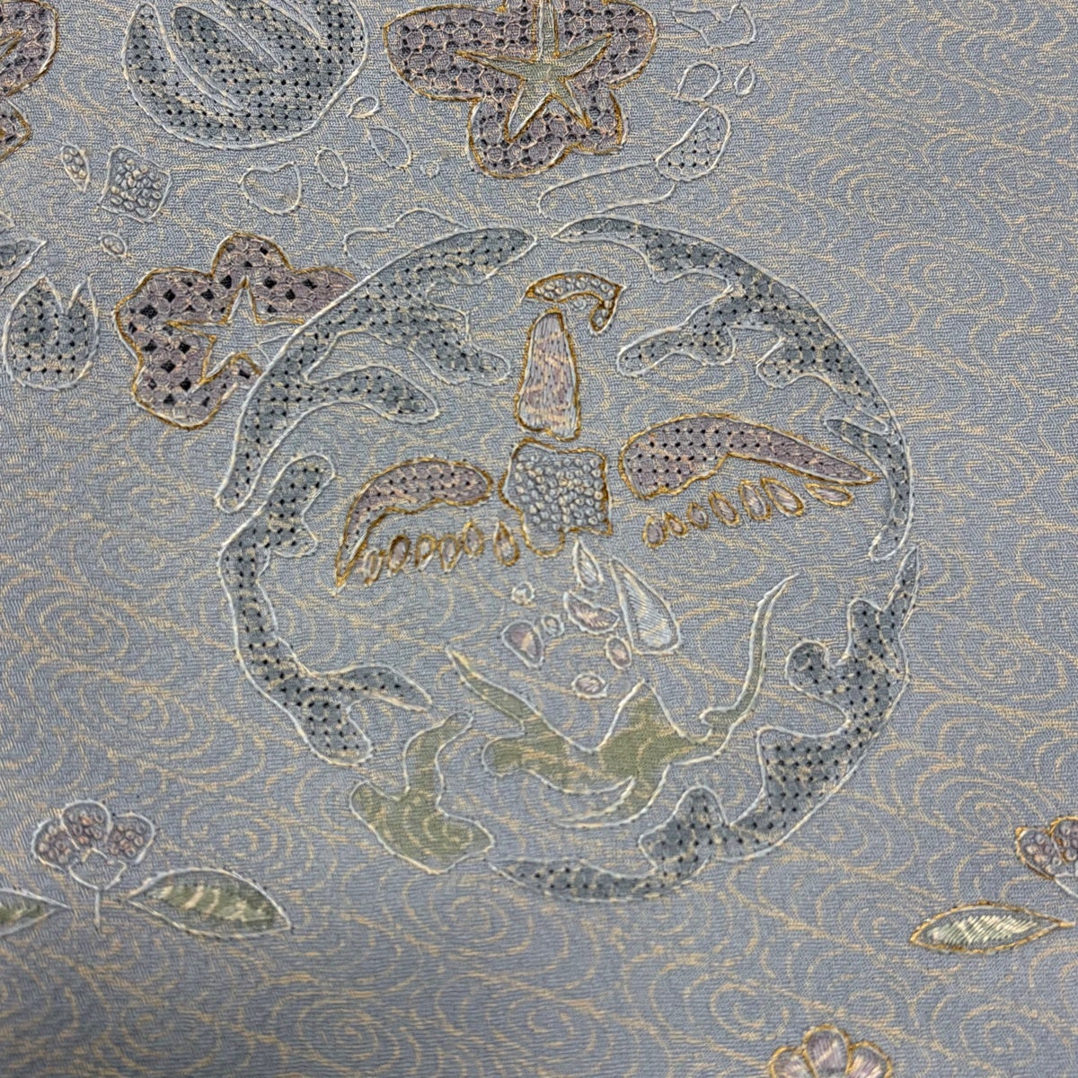 付下げ 身丈172.5cm 裄丈69cm L 袷 鳳凰 ヱ霞 刺繍 サーモンピンク 正絹 秀品