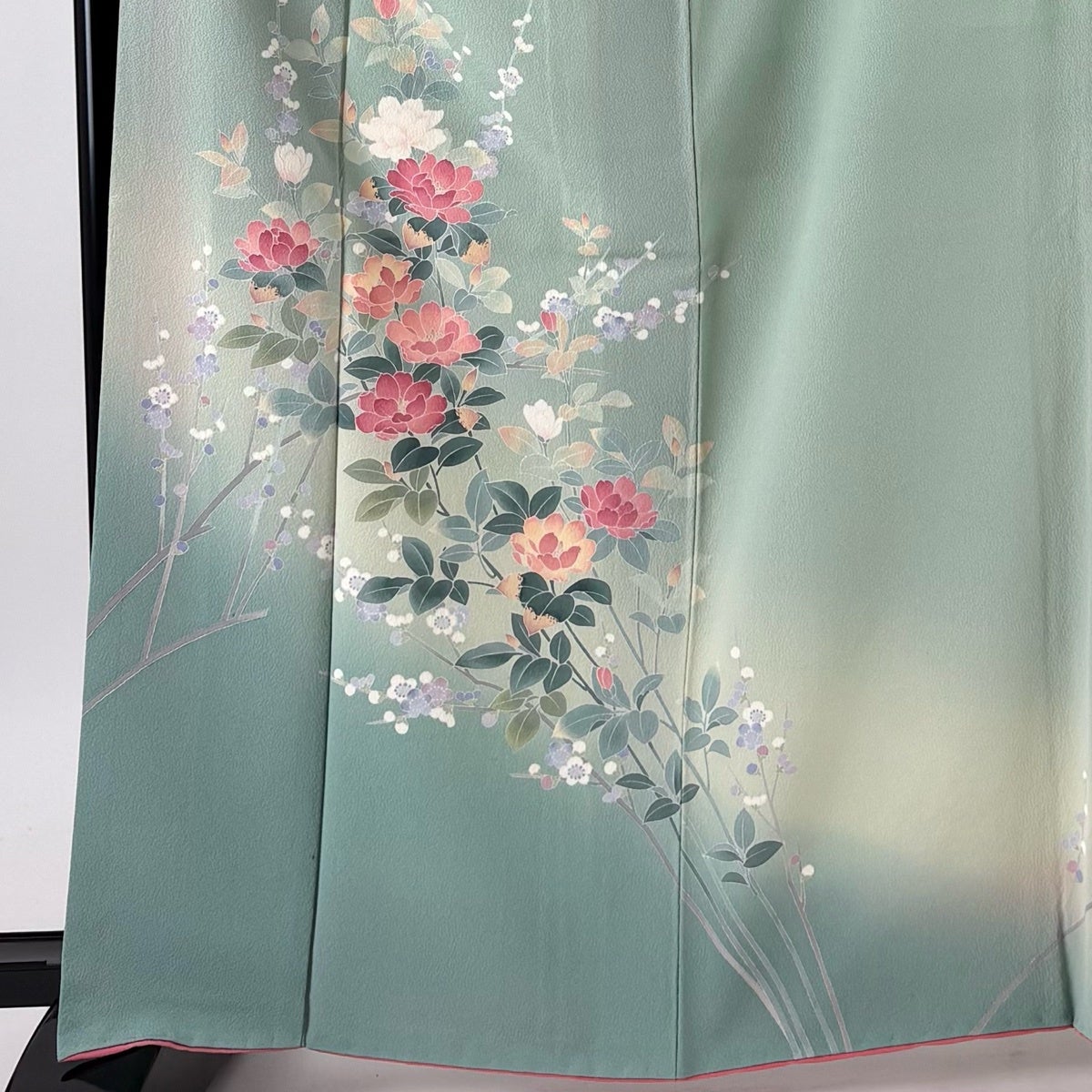 【美品】 振袖 身丈168cm 裄丈69cm L 袷 袋帯フルセット 薔薇 桜 箔 黒 正絹 名品