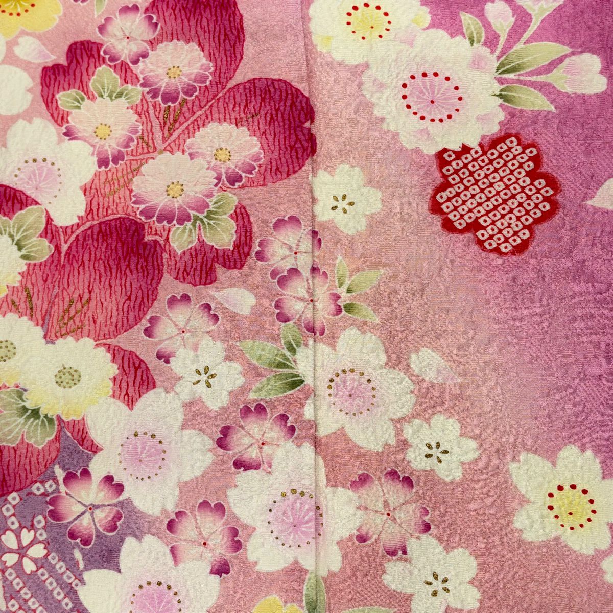 30%OFF 振袖 身丈167cm 裄丈69cm L 袷 草花 桜 箔 銀通し ピンク 正絹 名品 K30