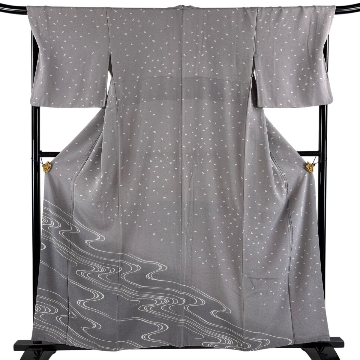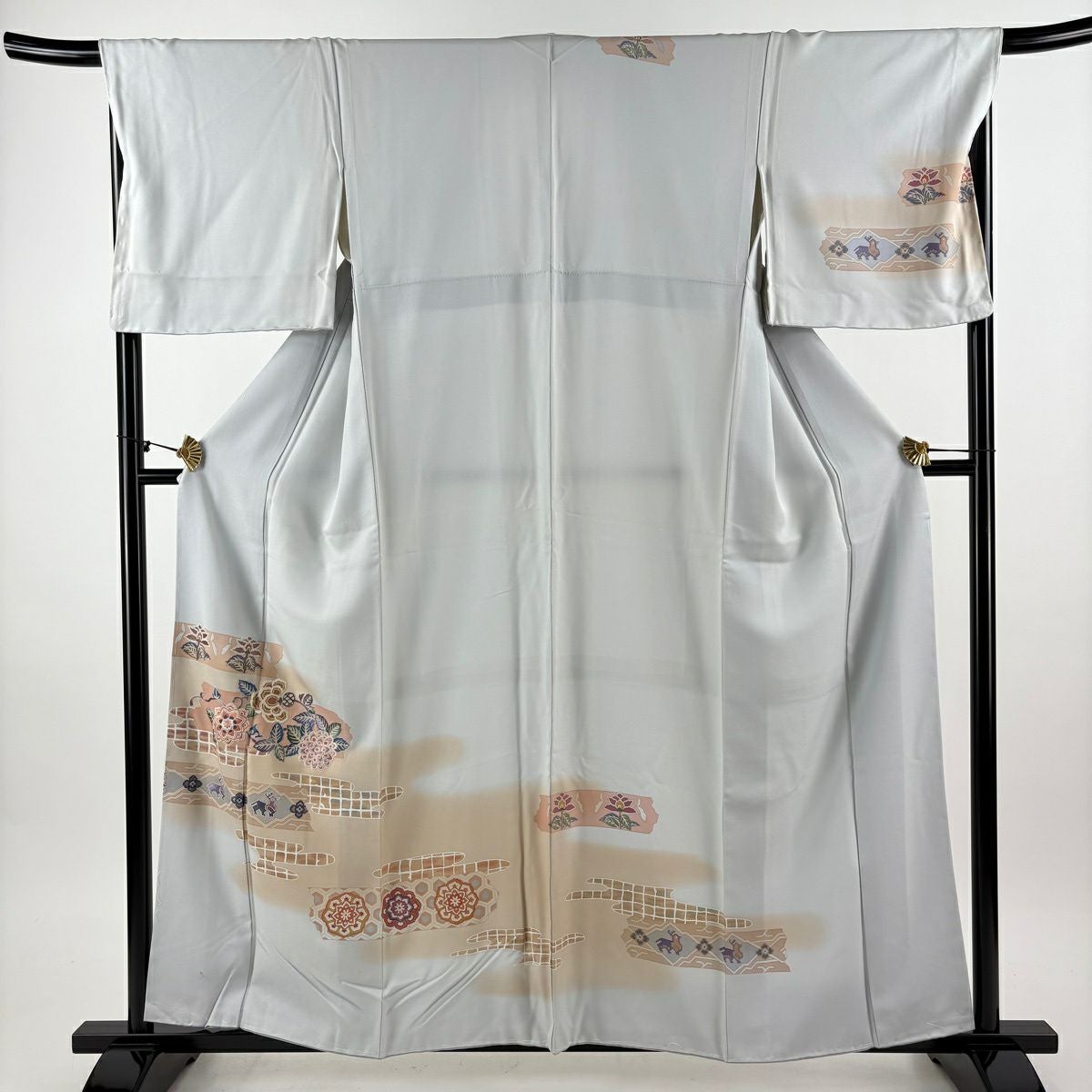 30%OFF 訪問着 身丈164.5cm 裄丈69cm L 袷 箔散らし シルエット 金銀糸 金銀彩 灰色 正絹 秀品 K30