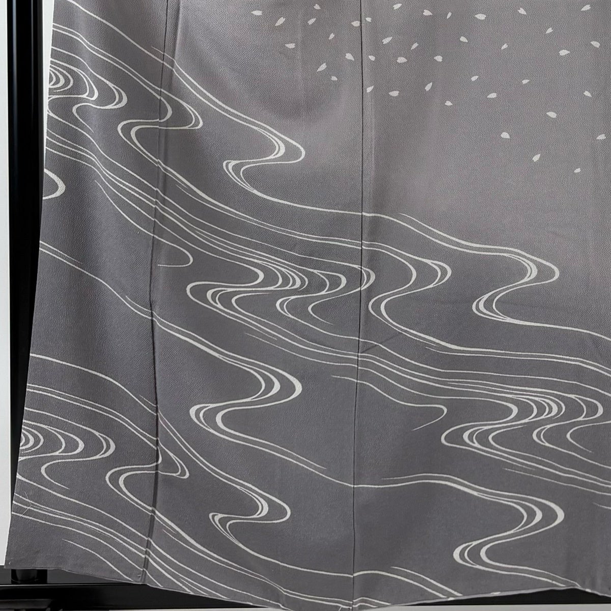 50%OFF 付下げ 身丈161cm 裄丈69cm L 袷 ますいわ屋 松竹梅 草花 金彩 絞り 黒灰 正絹 秀品 K50