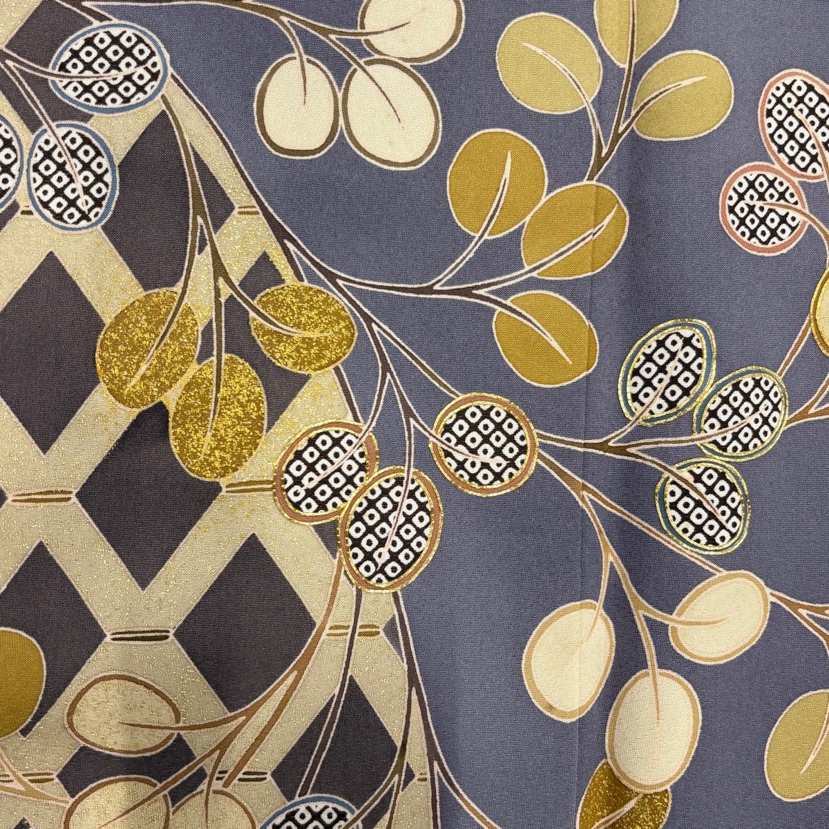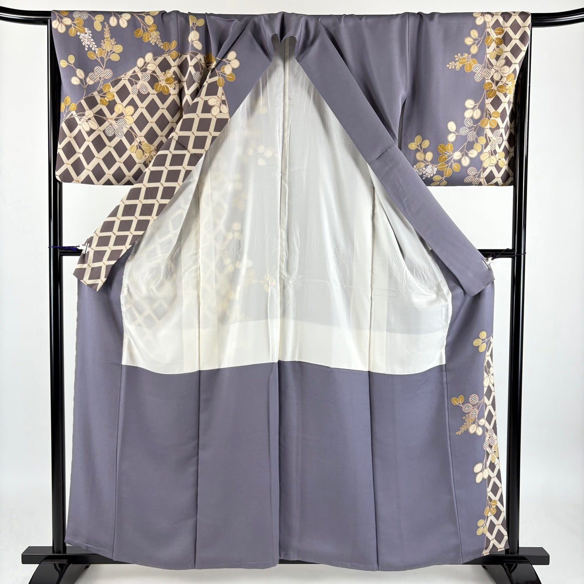 付下げ 身丈166cm 裄丈71cm L 袷 蔦 万筋 灰紫 正絹 名品