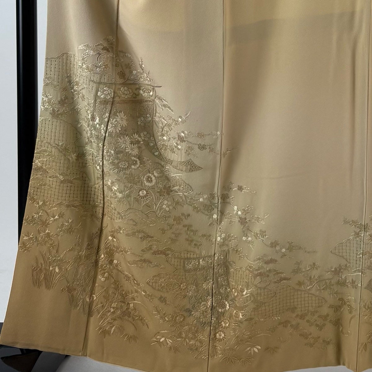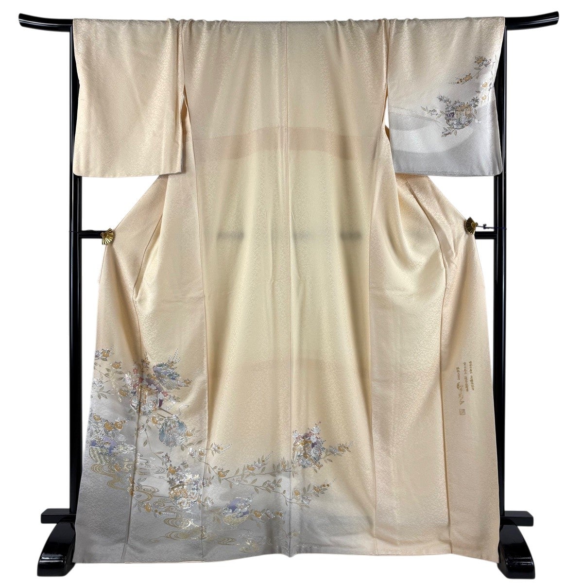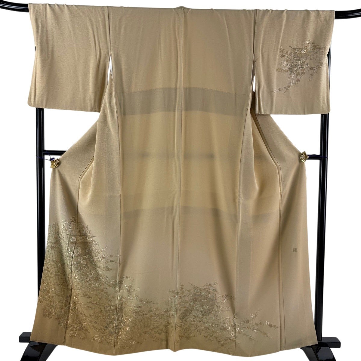 付下げ 身丈177.5cm 裄丈69.5cm 未仕立て 仮絵羽 花織 吹き寄せ 地紋 金彩 ベージュ 正絹 逸品