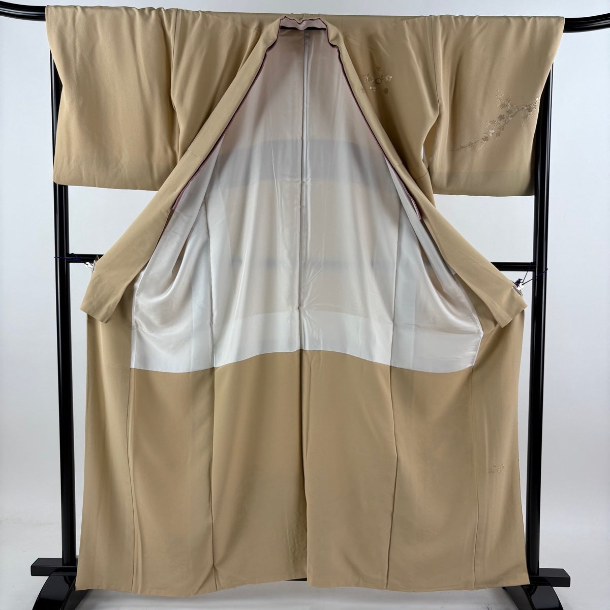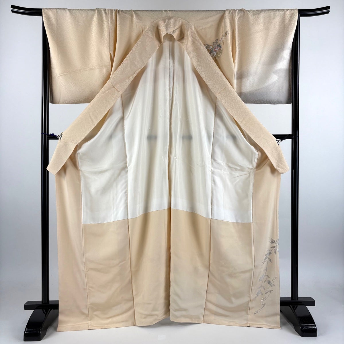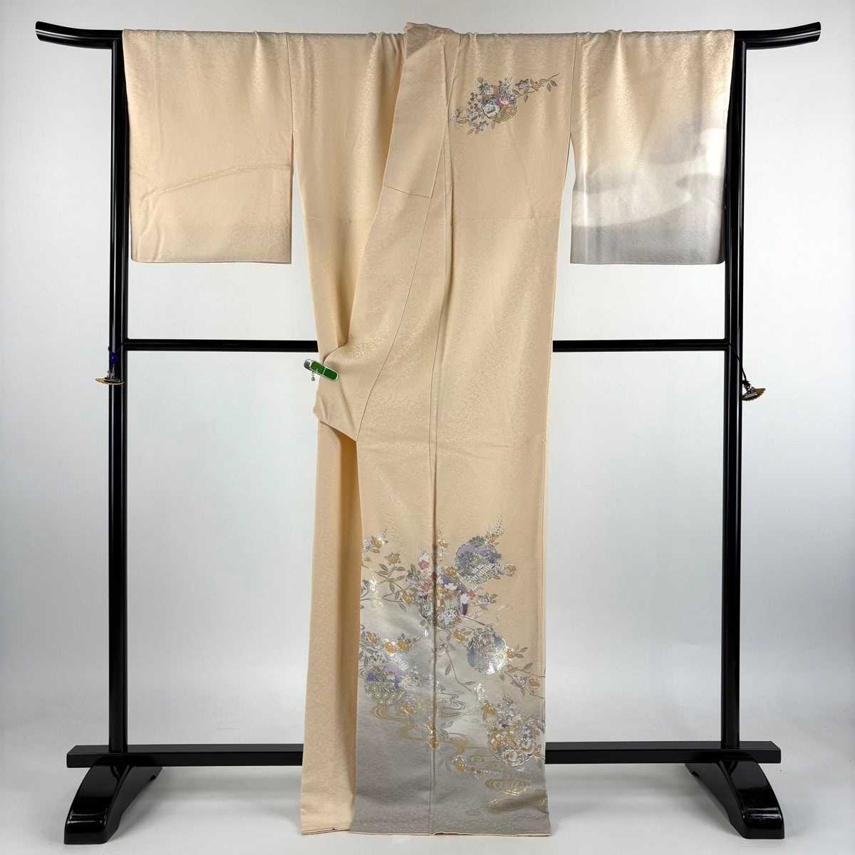 付下げ 身丈177.5cm 裄丈69.5cm 未仕立て 仮絵羽 花織 吹き寄せ 地紋 金彩 ベージュ 正絹 逸品
