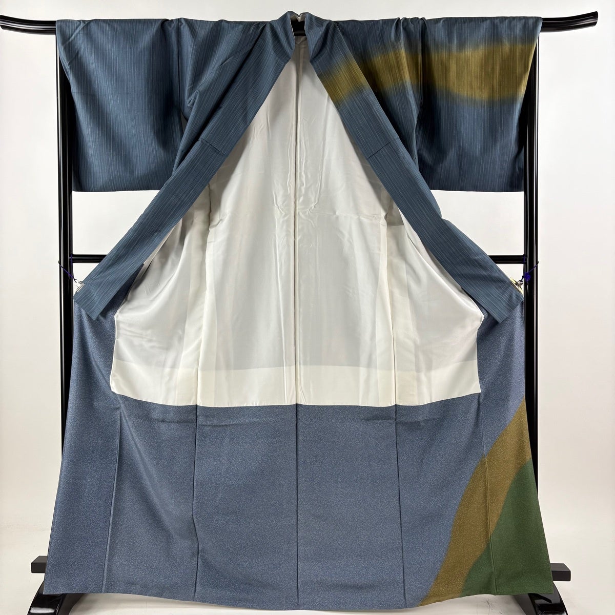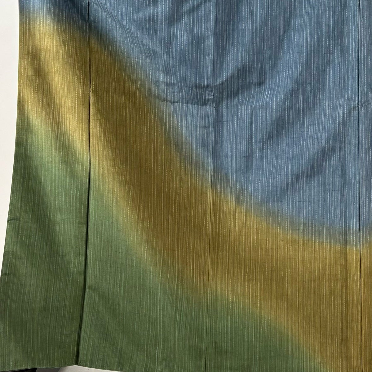 道中着 身丈100.5cm 裄丈69.5cm L 和装コート 着物衿 落款あり 縦縞 よろけ縞 ぼかし 灰緑 正絹 逸品