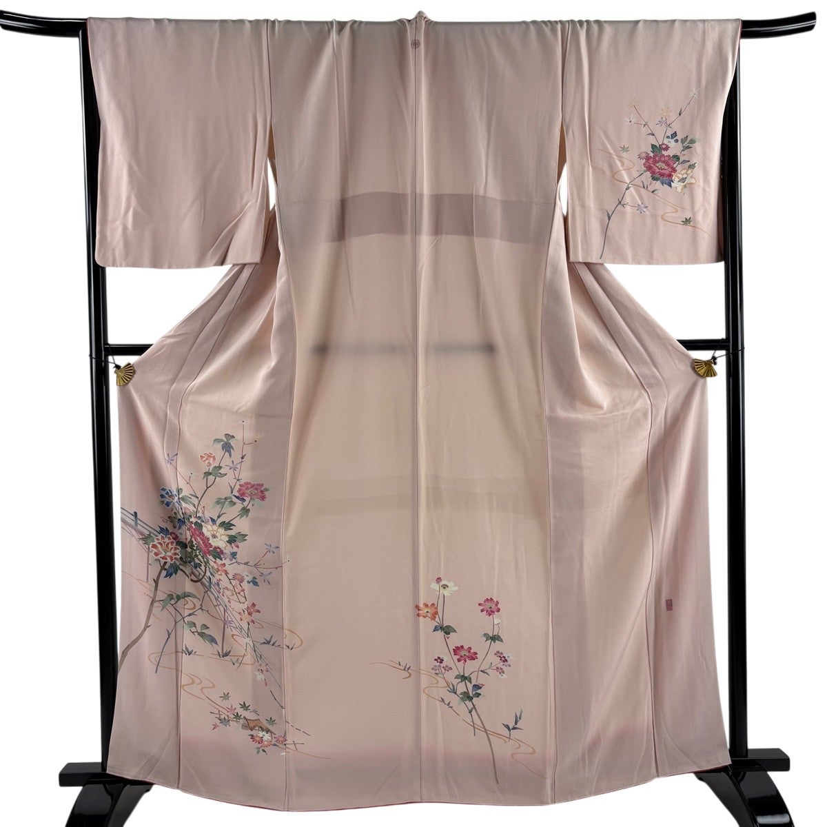 色留袖 身丈176cm 裄丈69.5cm L 袷 落款あり 桜 文字文 金彩 螺鈿 薄ピンク 正絹 名品 一つ紋