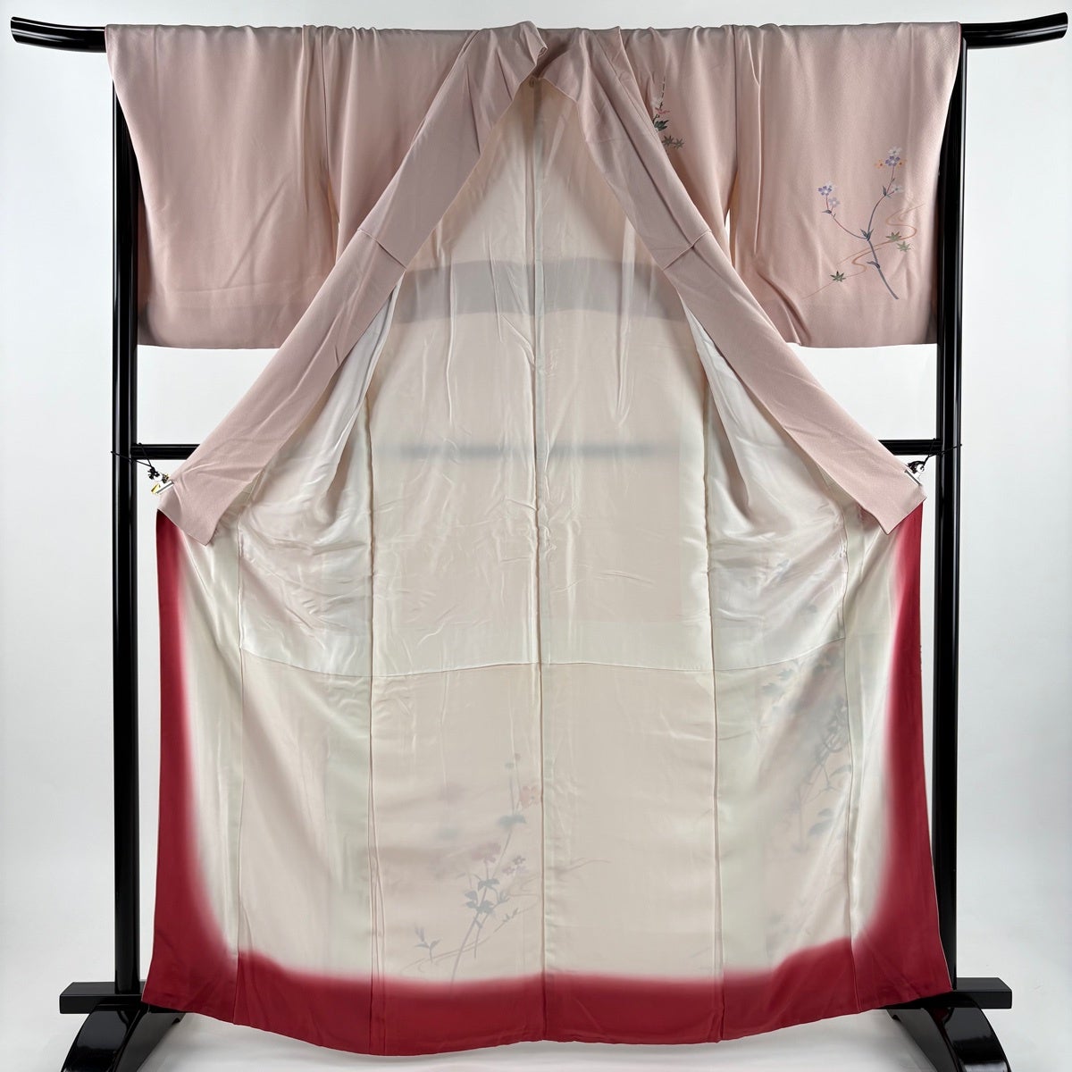 振袖 身丈166cm 裄丈70cm L 袷 草花 金彩 茜色 正絹 秀品