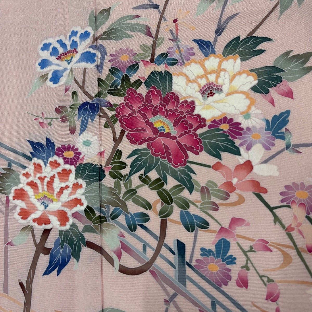 【美品】振袖 身丈179cm 裄丈71.5cm 未仕立て 仮絵羽 桜 手鞠 金彩 染め分け ピンク 正絹 名品