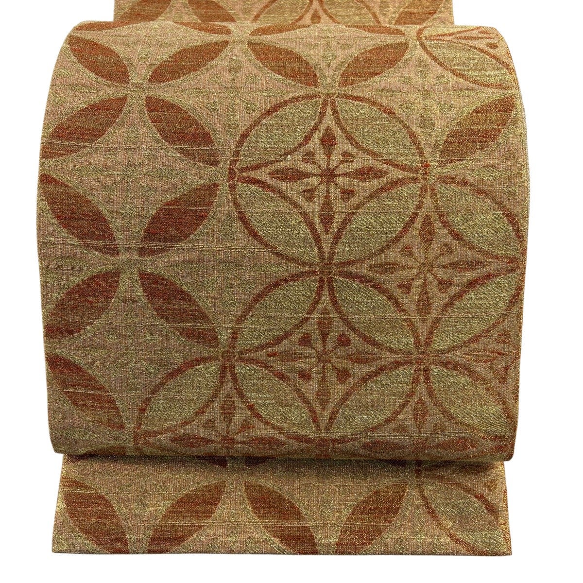 袋帯 秀品 桝屋高尾 落款あり 関西仕立て 雪輪 花 箔 クリーム 六通 正絹