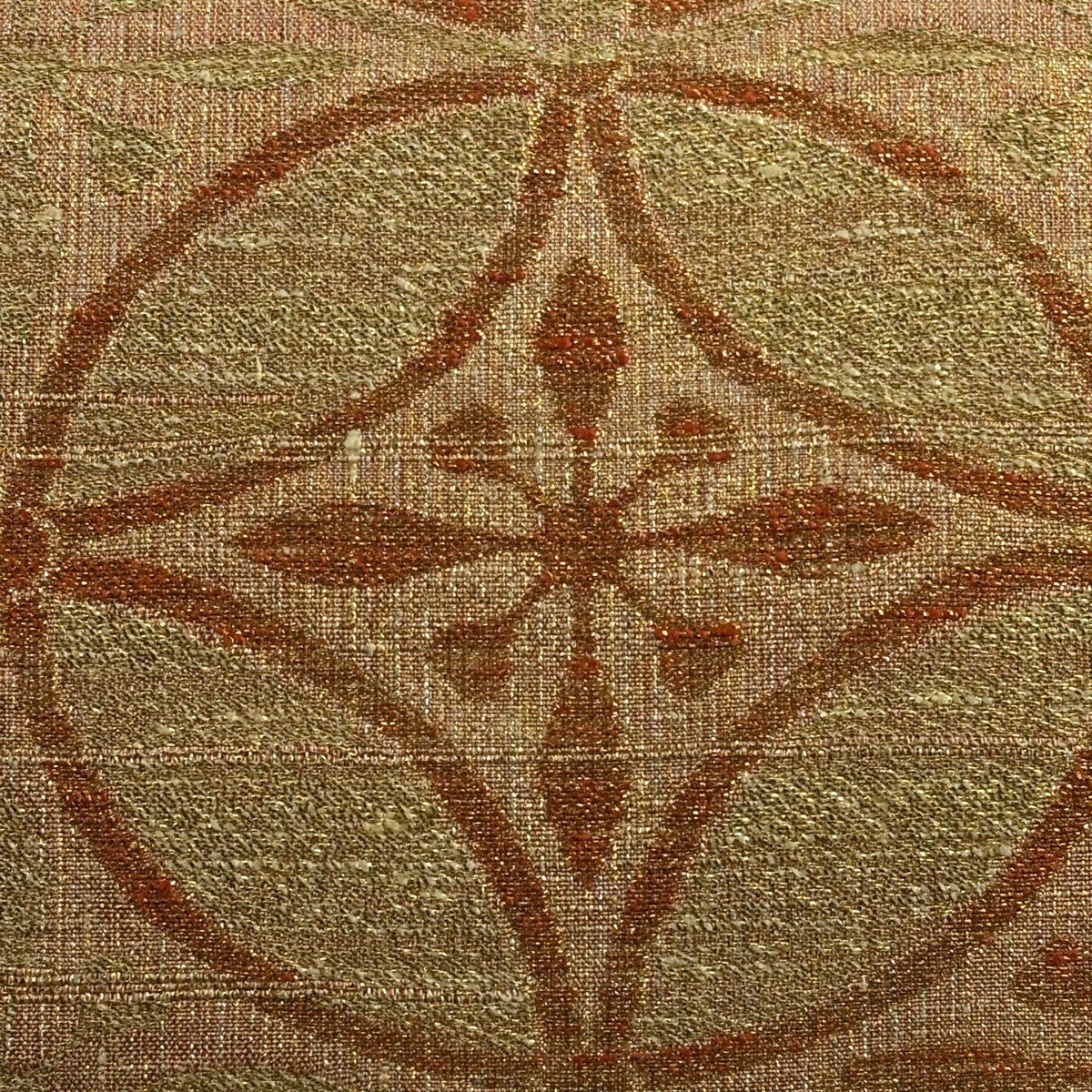 袋帯 名品 桝屋高尾 落款あり 渡来錦 縞 幾何学模様 茶色 六通 正絹
