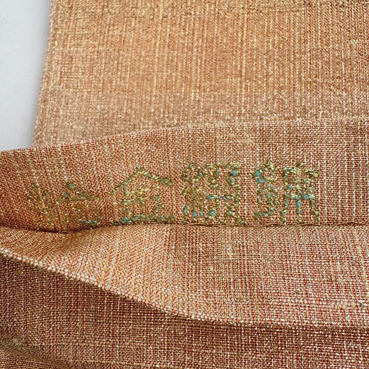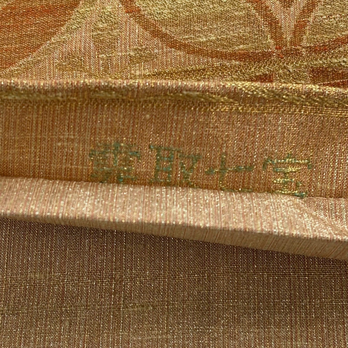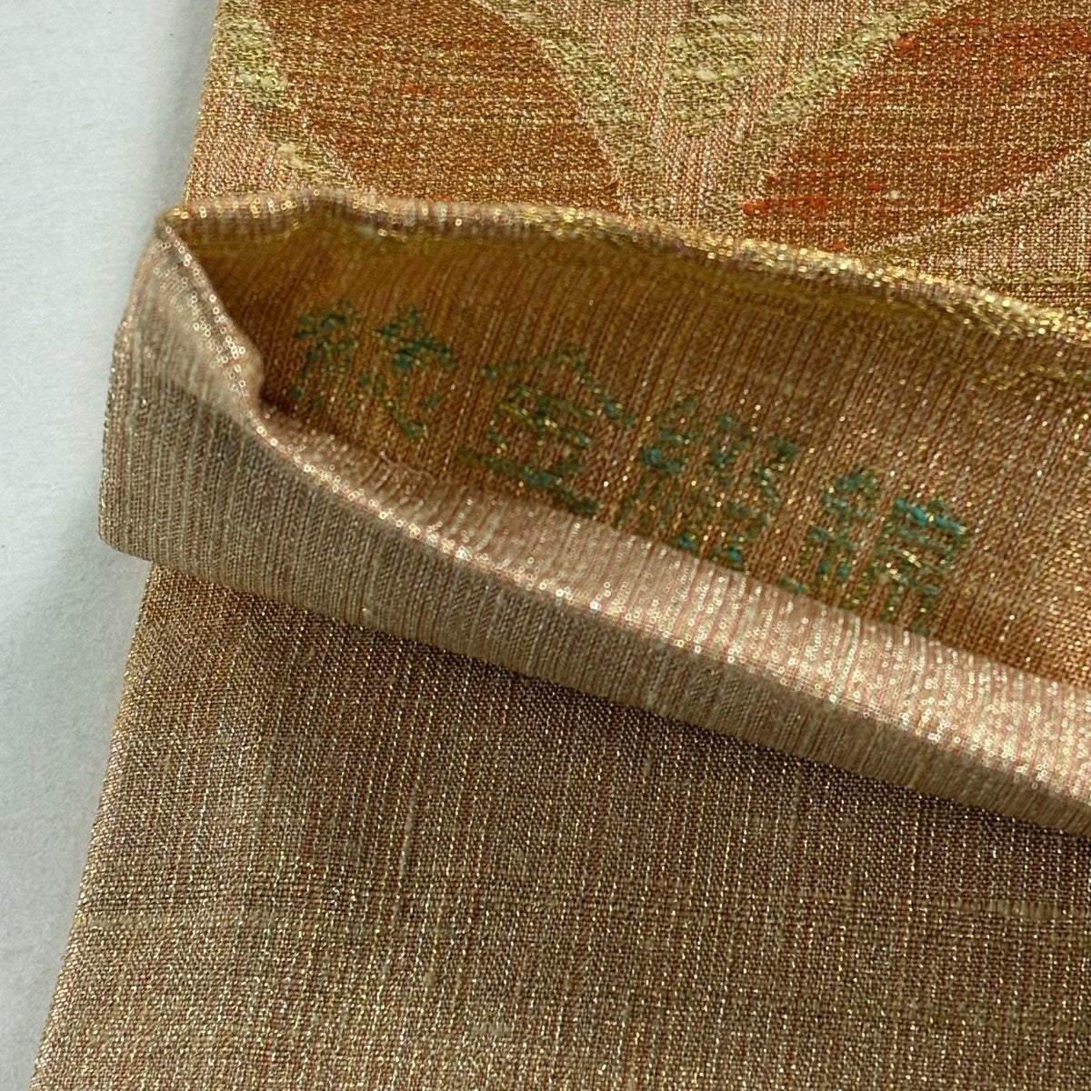 袋帯 秀品 織悦 落款あり 花唐草 箔 サーモンピンク 全通 正絹