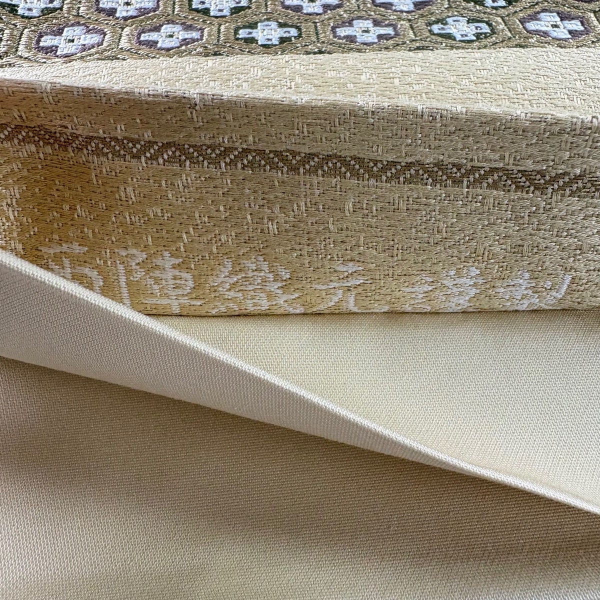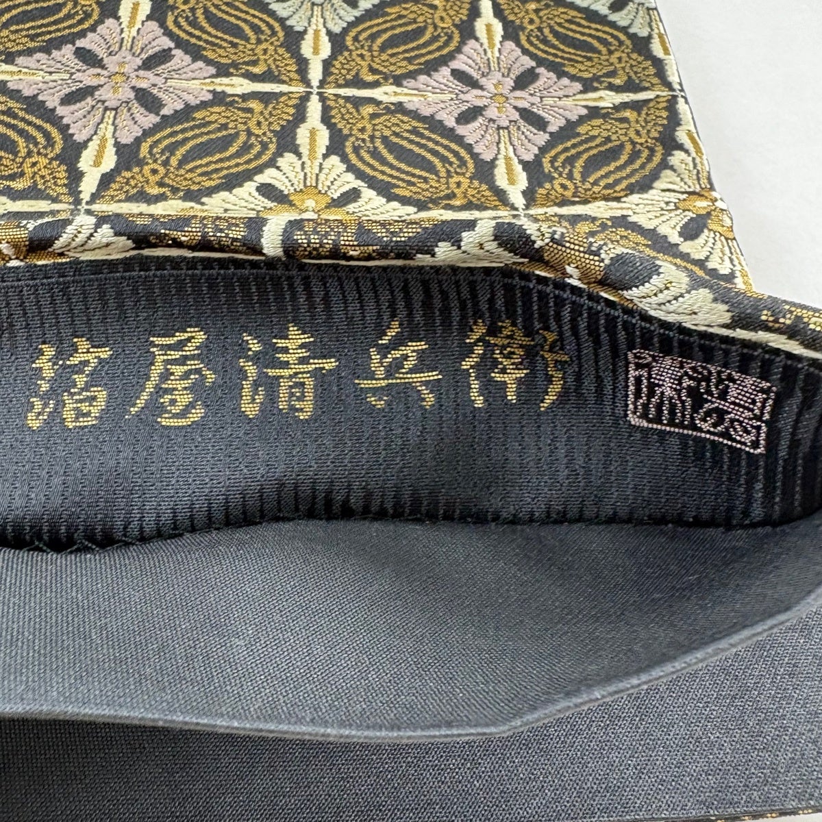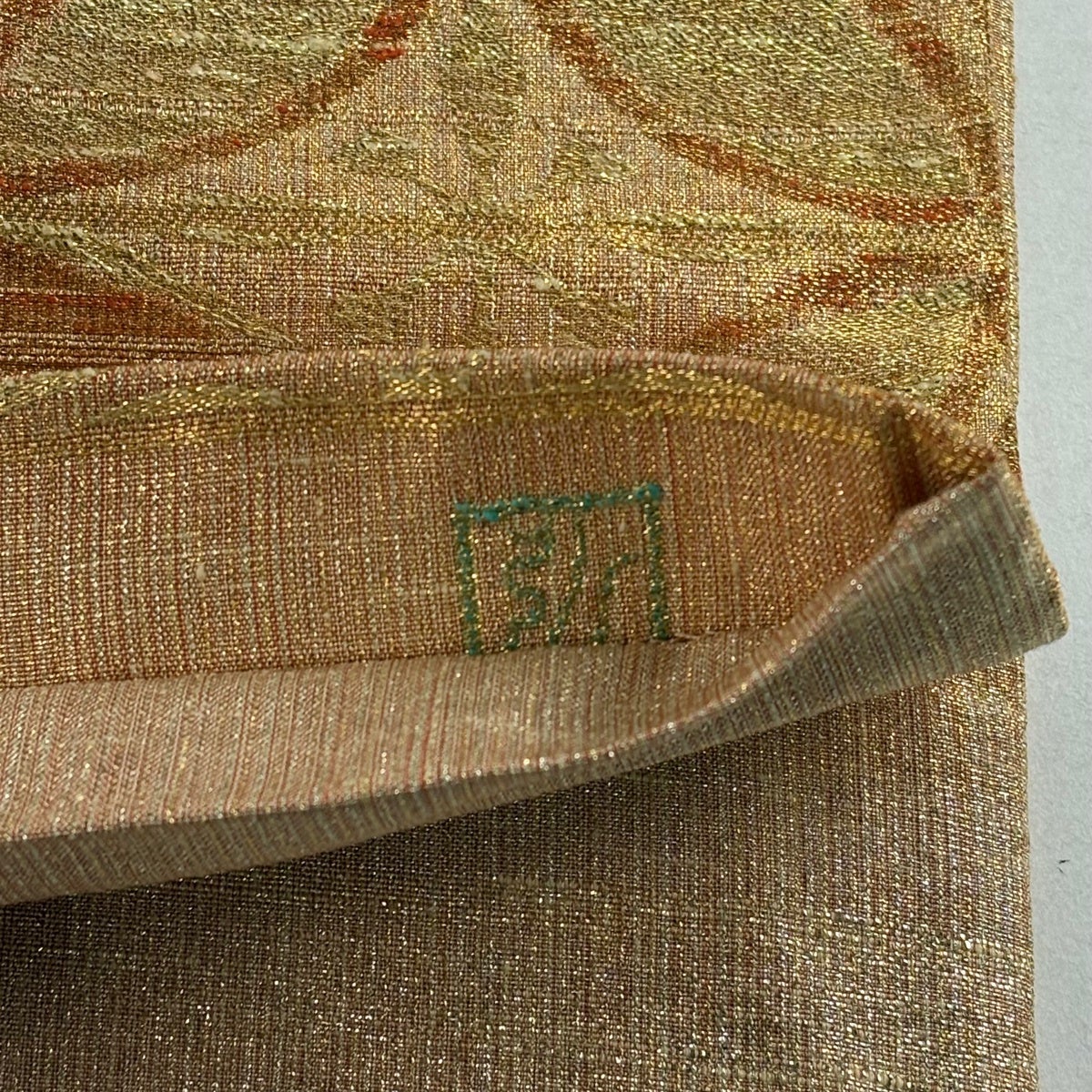 【美品】 袋帯 逸品 桝屋高尾 落款あり ねん金綴錦 名物裂文松皮菱 箔 金糸 金茶 六通 正絹