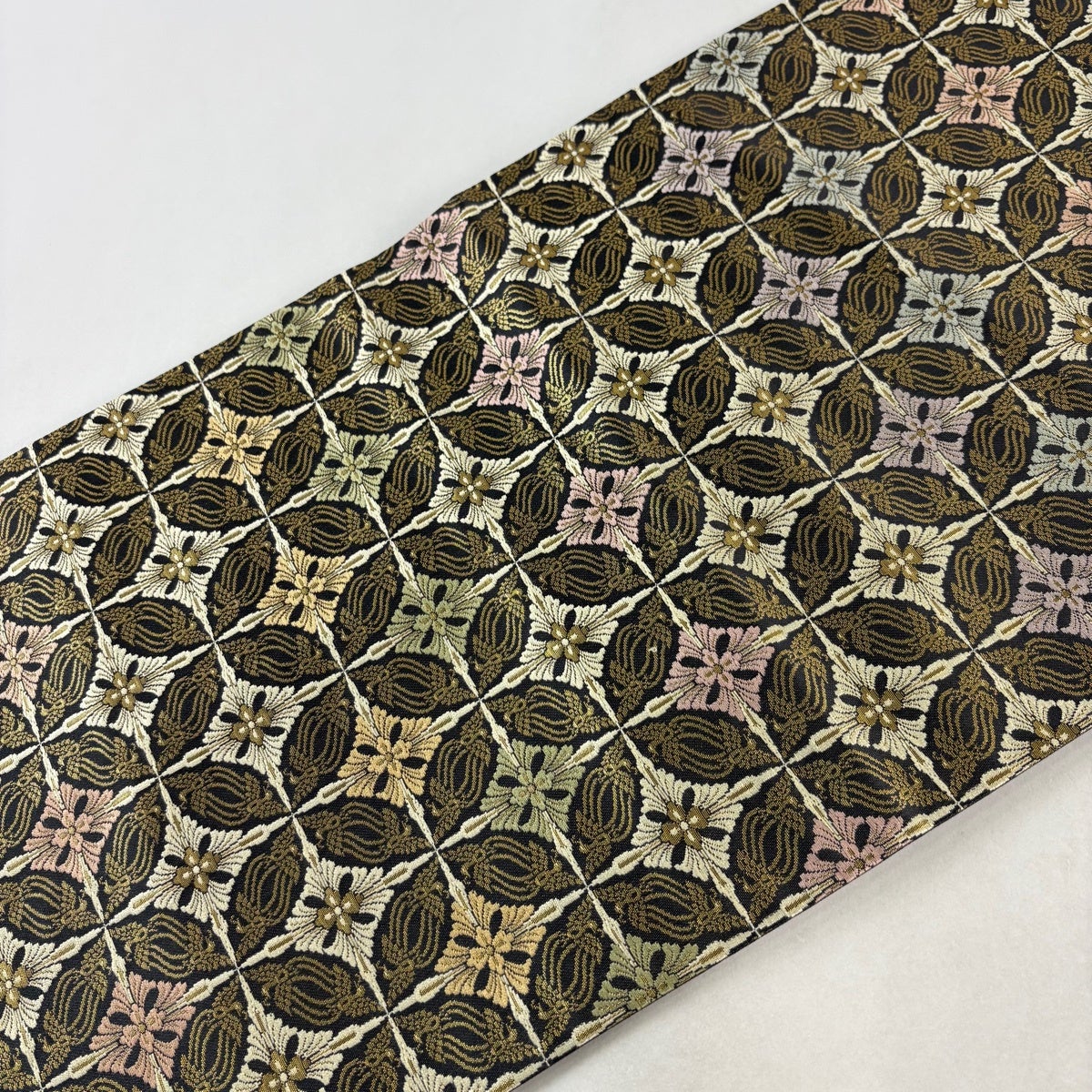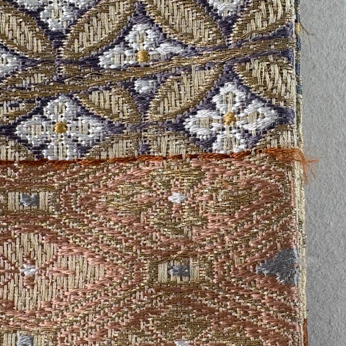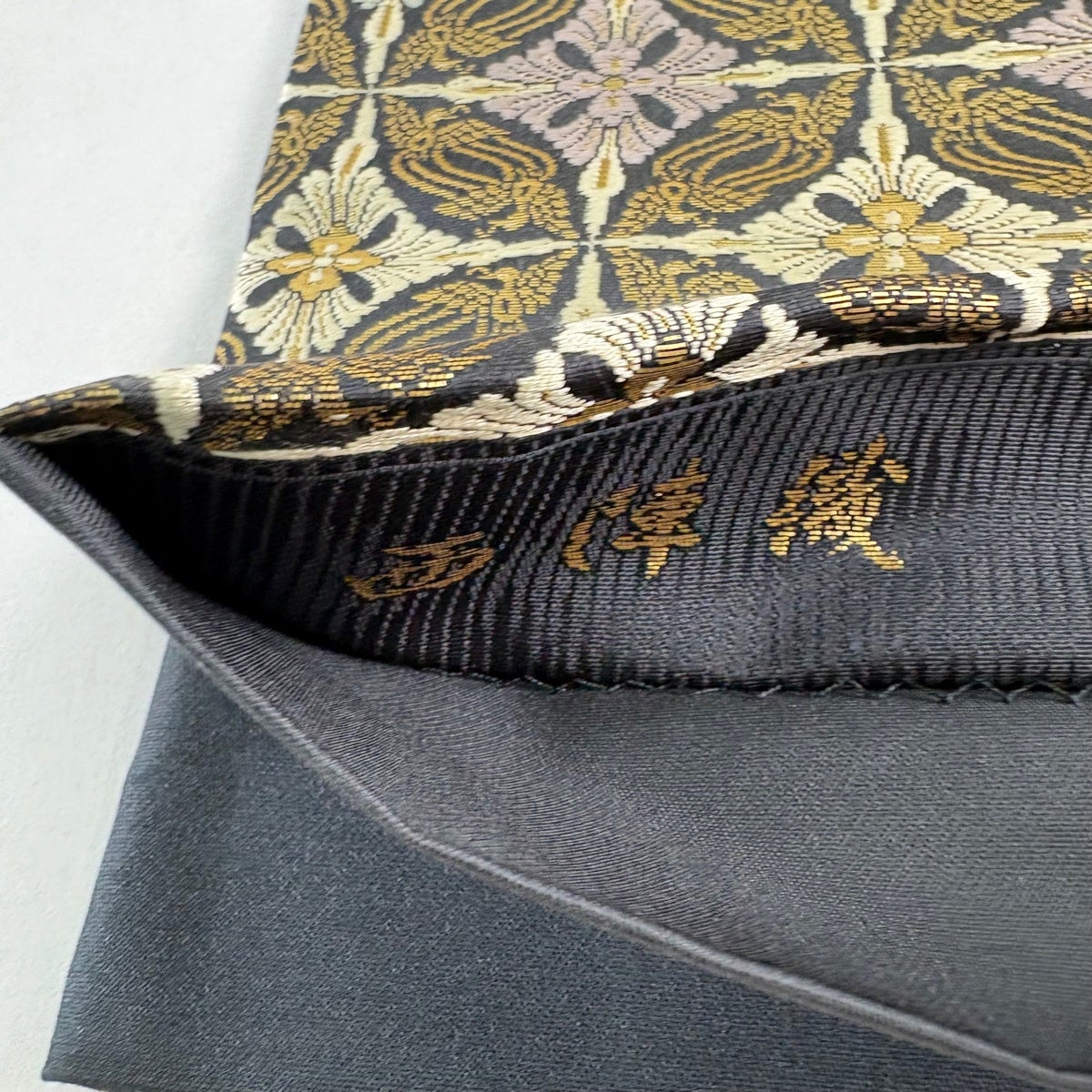 【美品】 袋帯 逸品 桝屋高尾 落款あり ねん金綴錦 名物裂文松皮菱 箔 金糸 金茶 六通 正絹