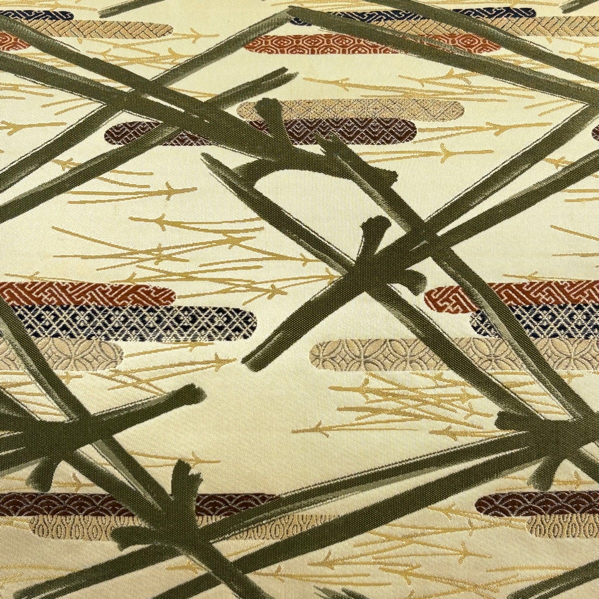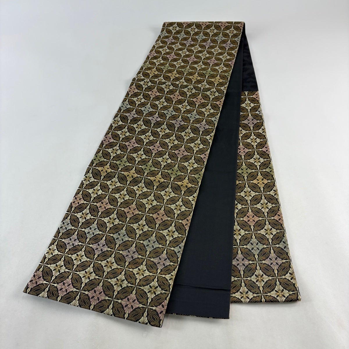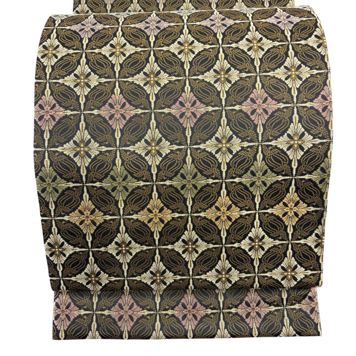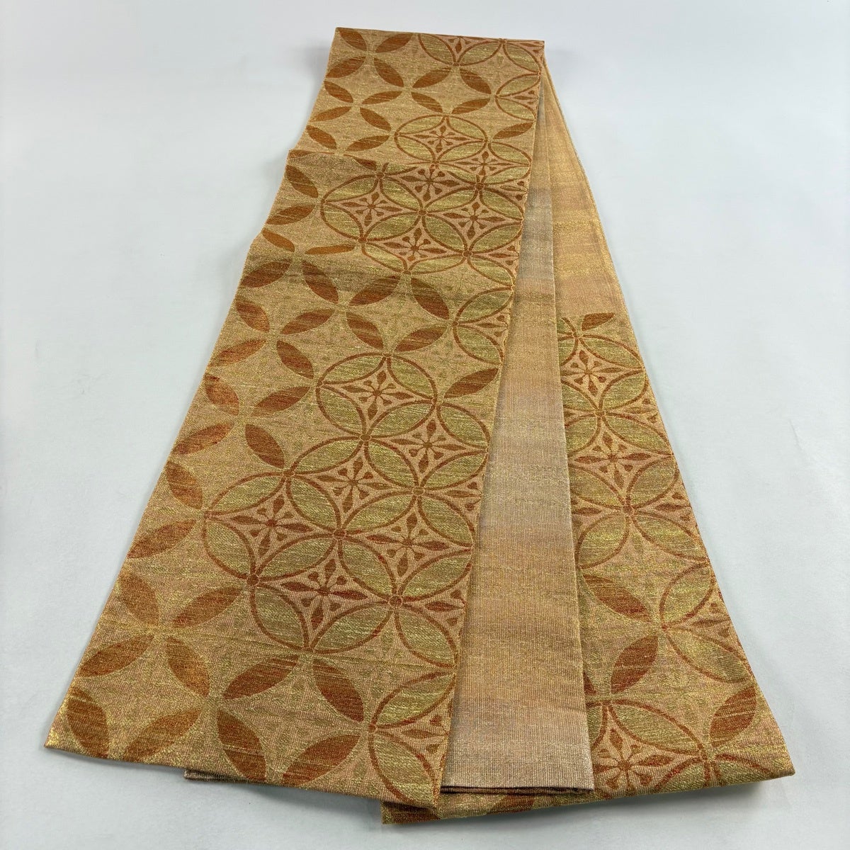 【美品】 袋帯 秀品 織悦 落款あり 夏帯 関西仕立て 墨流し 幾何学 箔 茶色 全通 正絹