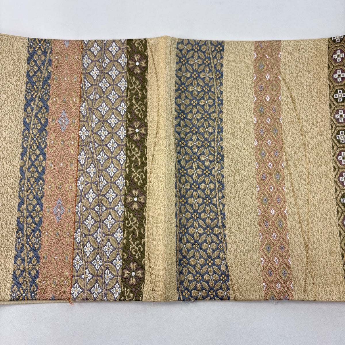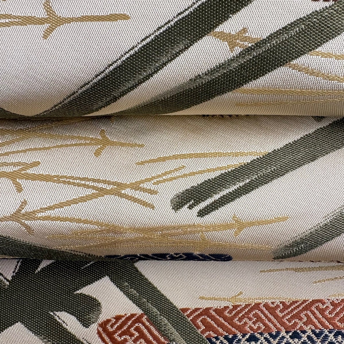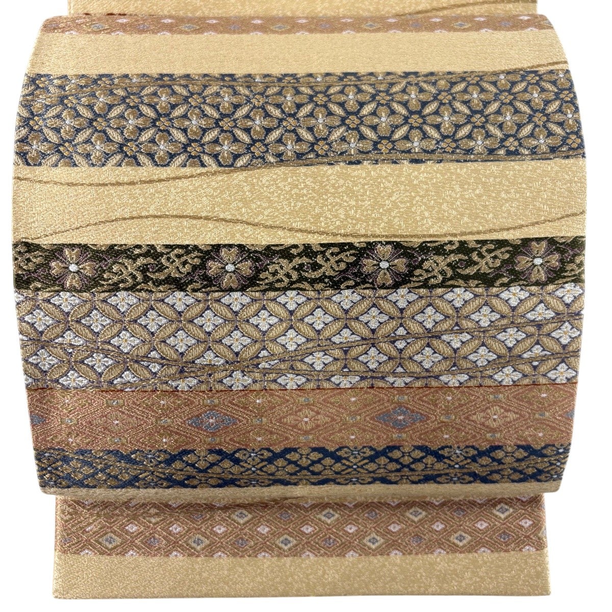 袋帯 名品 白綾苑大庭 落款あり 波 金糸 箔 クリーム 六通 正絹