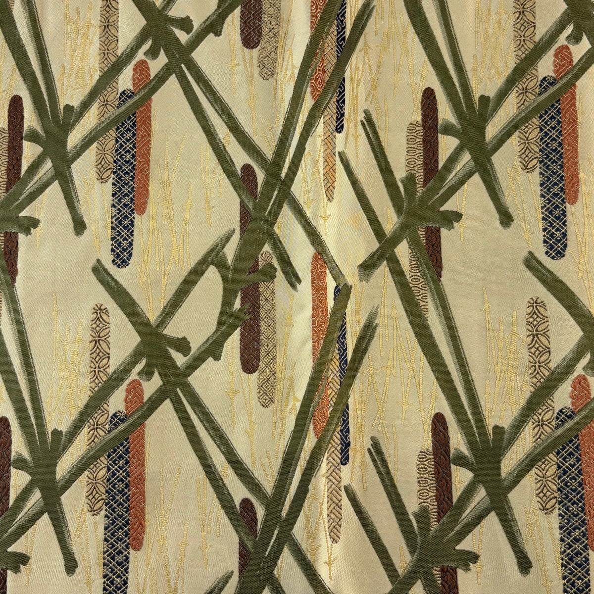 【美品】 袋帯 逸品 とみや織物 証紙あり 引箔袋 秋草華影文 器物 金糸 刺繍 緑 六通 正絹