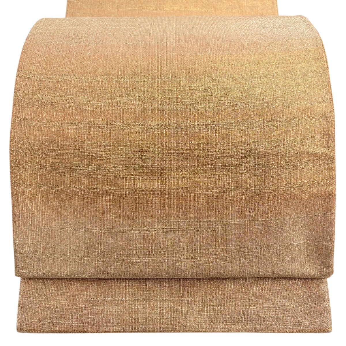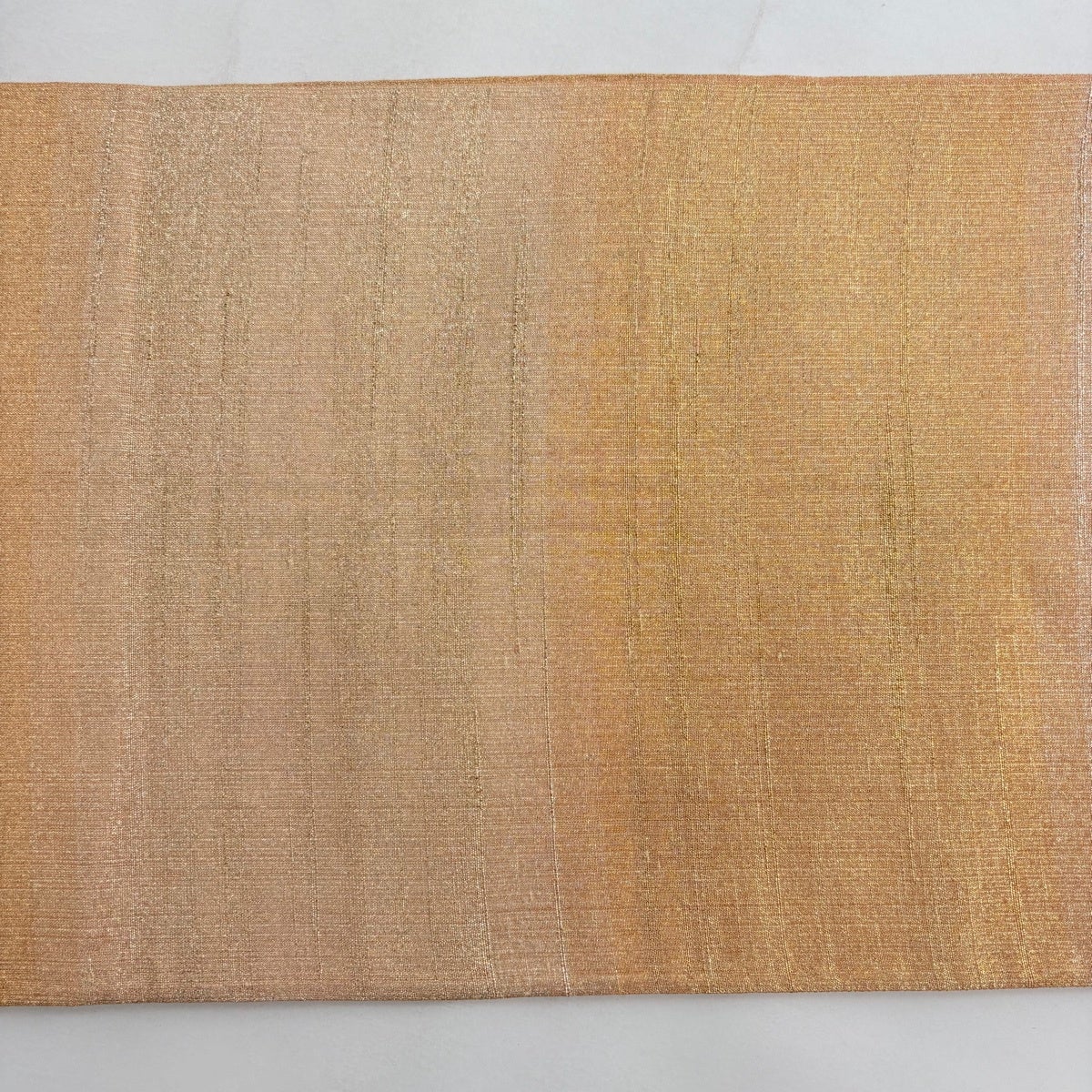 【美品】 袋帯 秀品 織悦 落款あり 夏帯 紗 葉柄 箔 薄オレンジ 全通 正絹