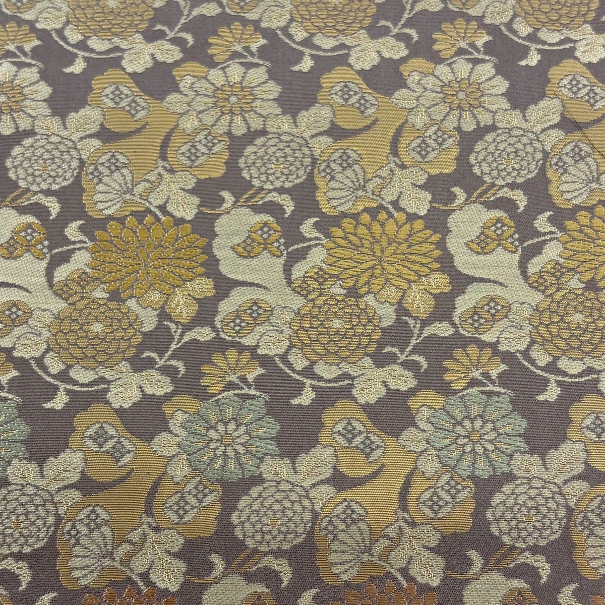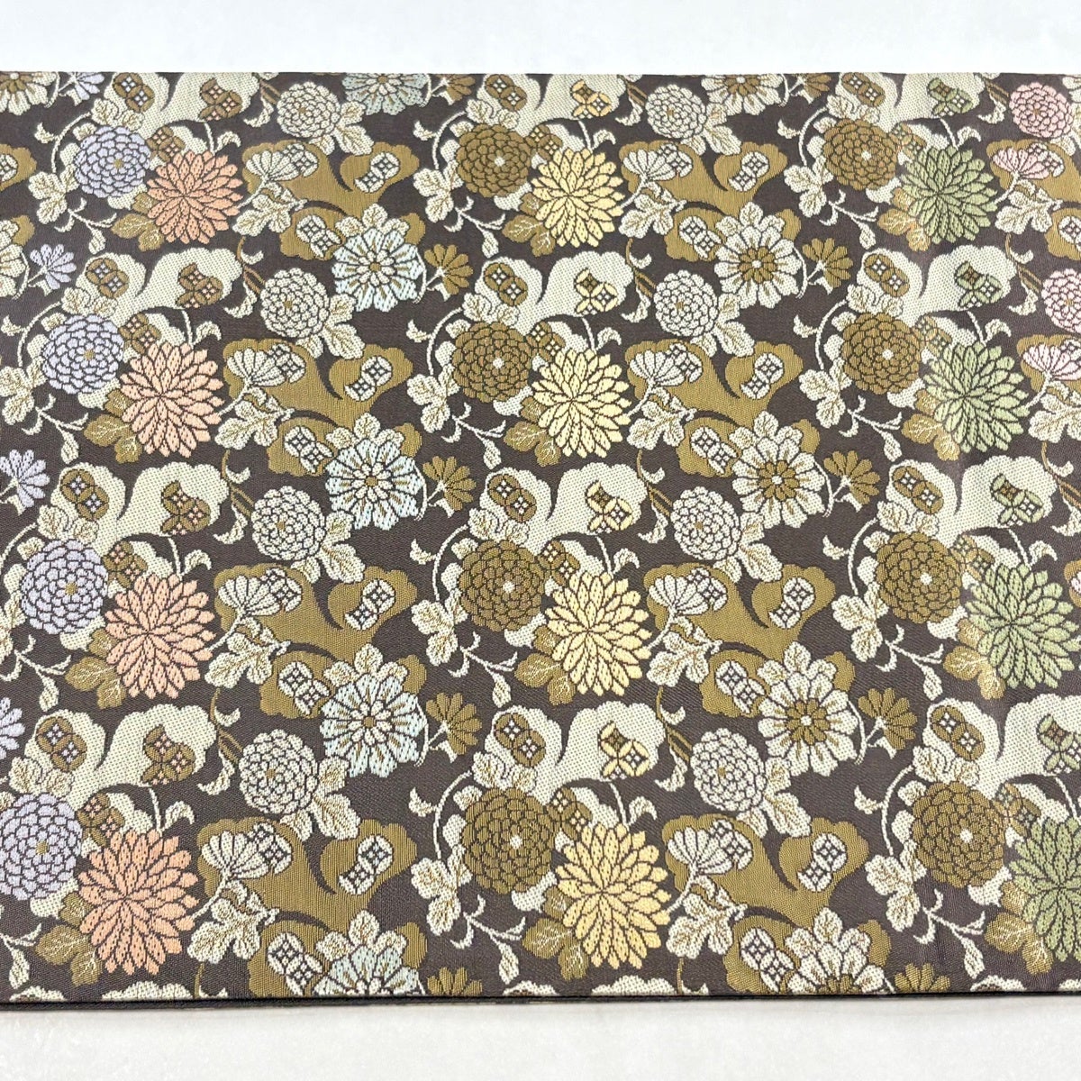 袋帯 秀品 織悦 落款あり 夏帯 花唐草 灰茶 全通 正絹