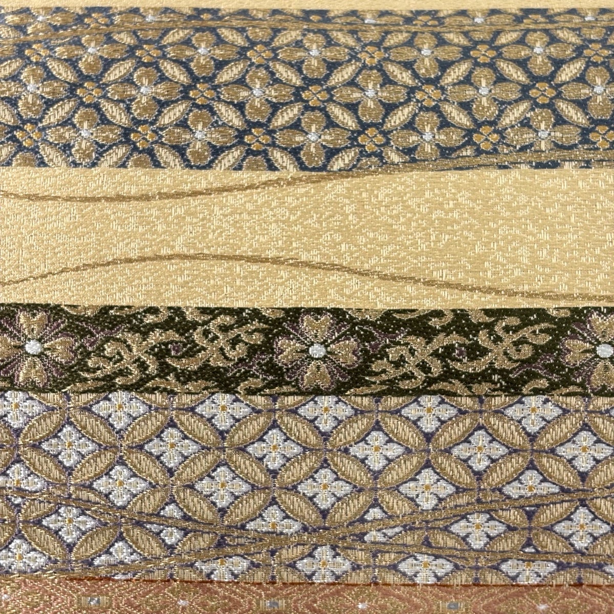 袋帯 逸品 桝屋高尾 落款あり 段霞文 金糸 ねん金綴錦 金色 六通 正絹