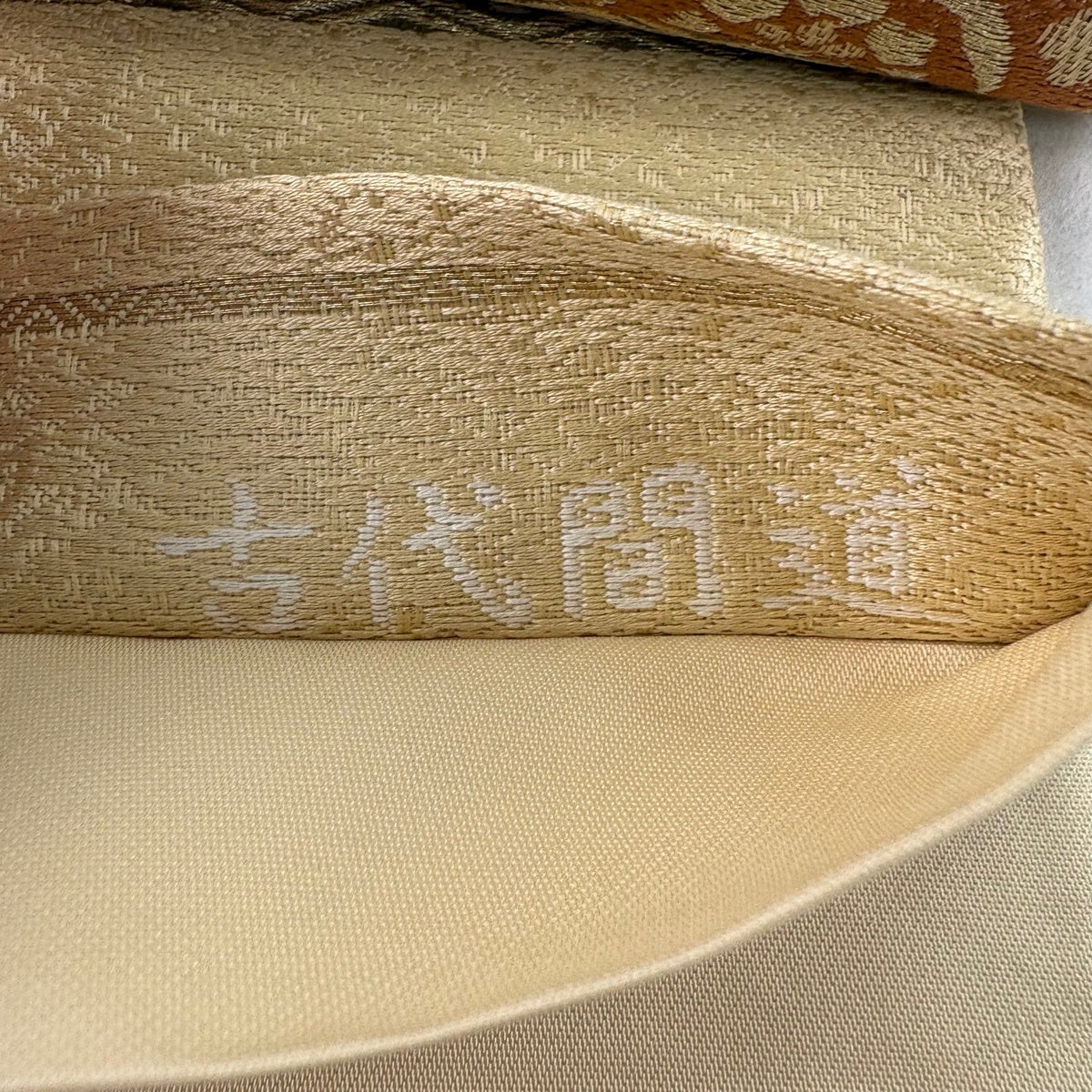 名古屋帯 秀品 桝屋高尾 落款あり 貝 菊 箔 金糸 オレンジ 正絹