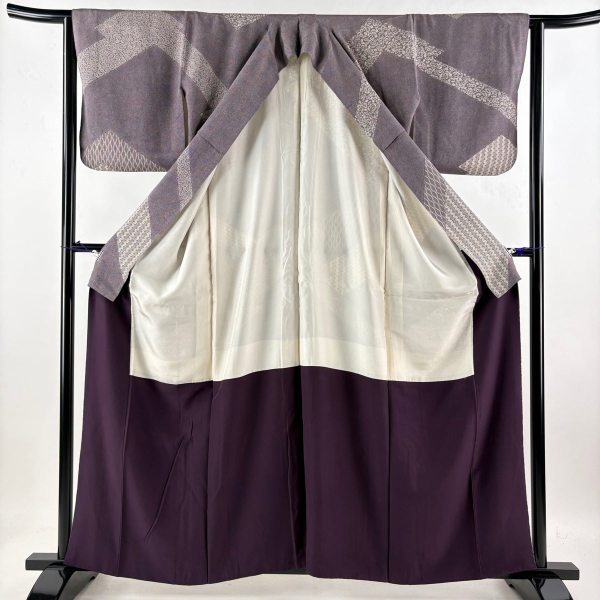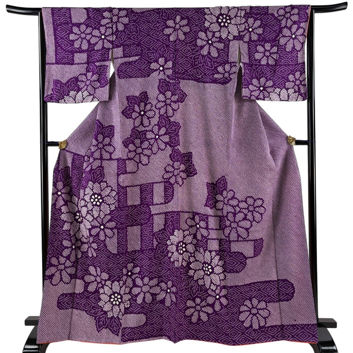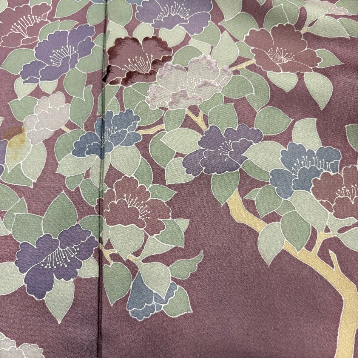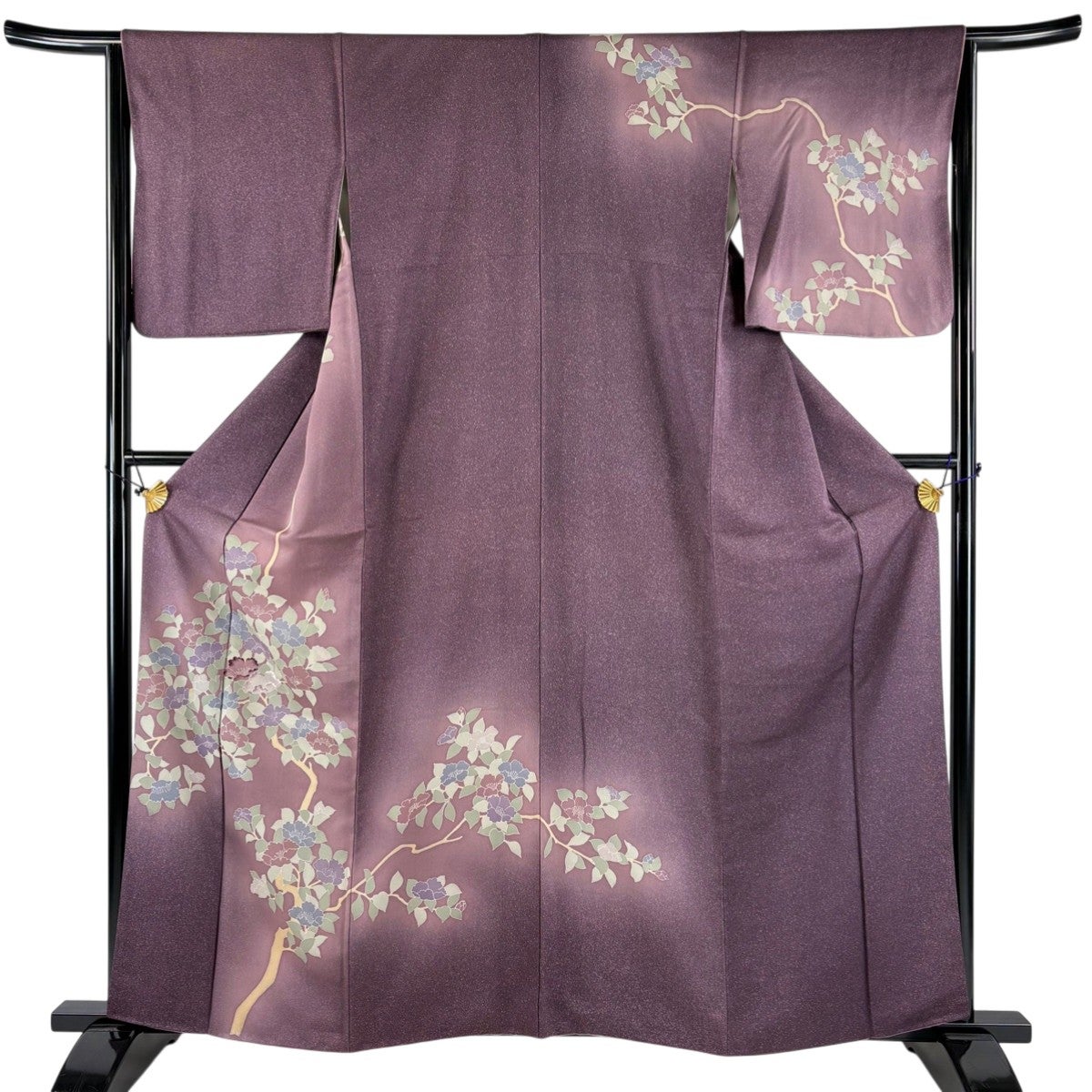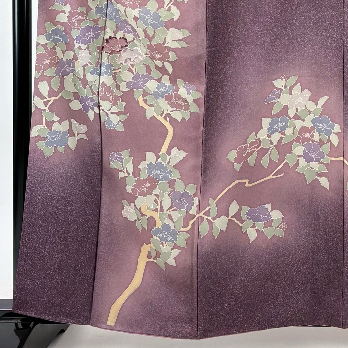訪問着 身丈155.5cm 裄丈64cm M 袷 霞 草花 金彩 濃紫 正絹 秀品