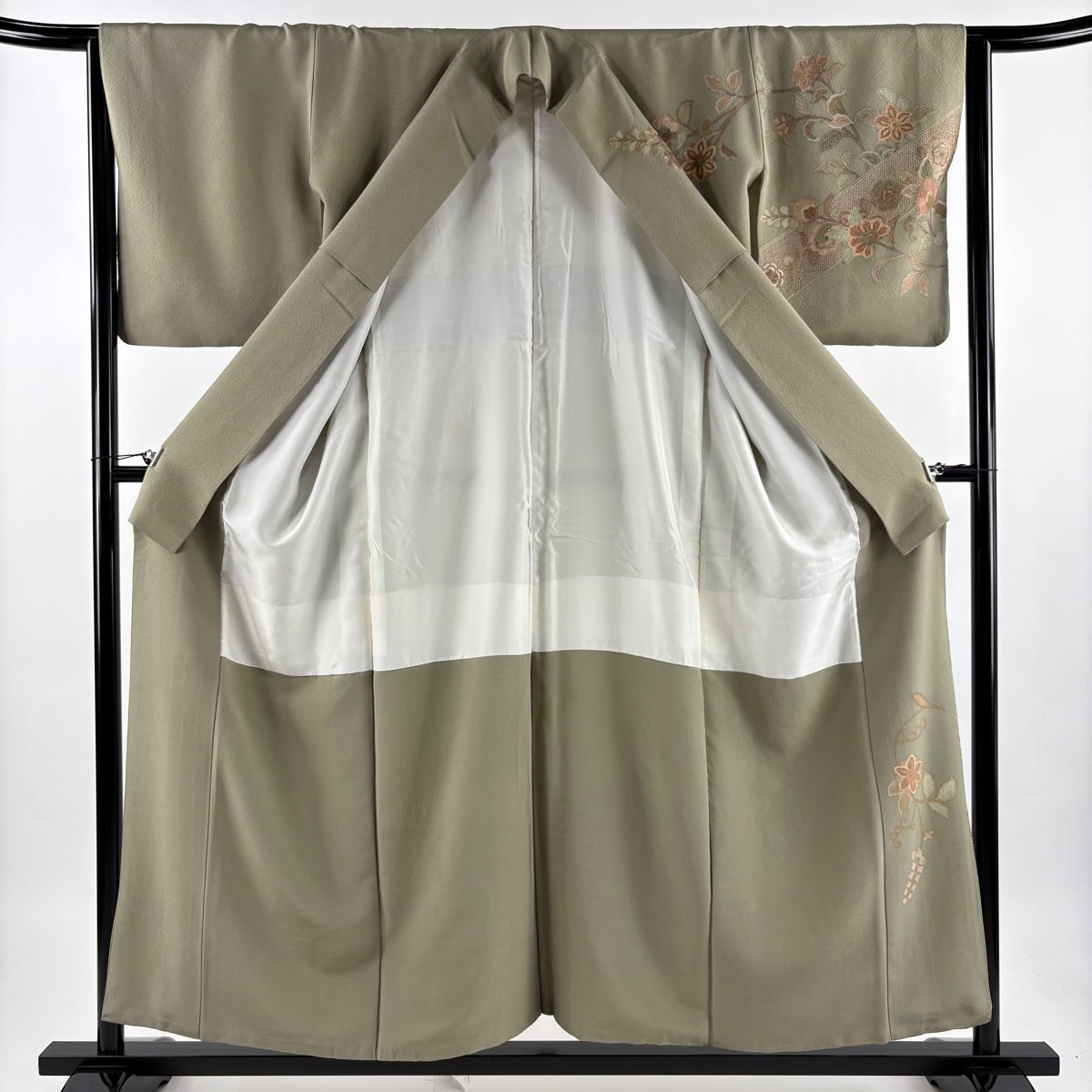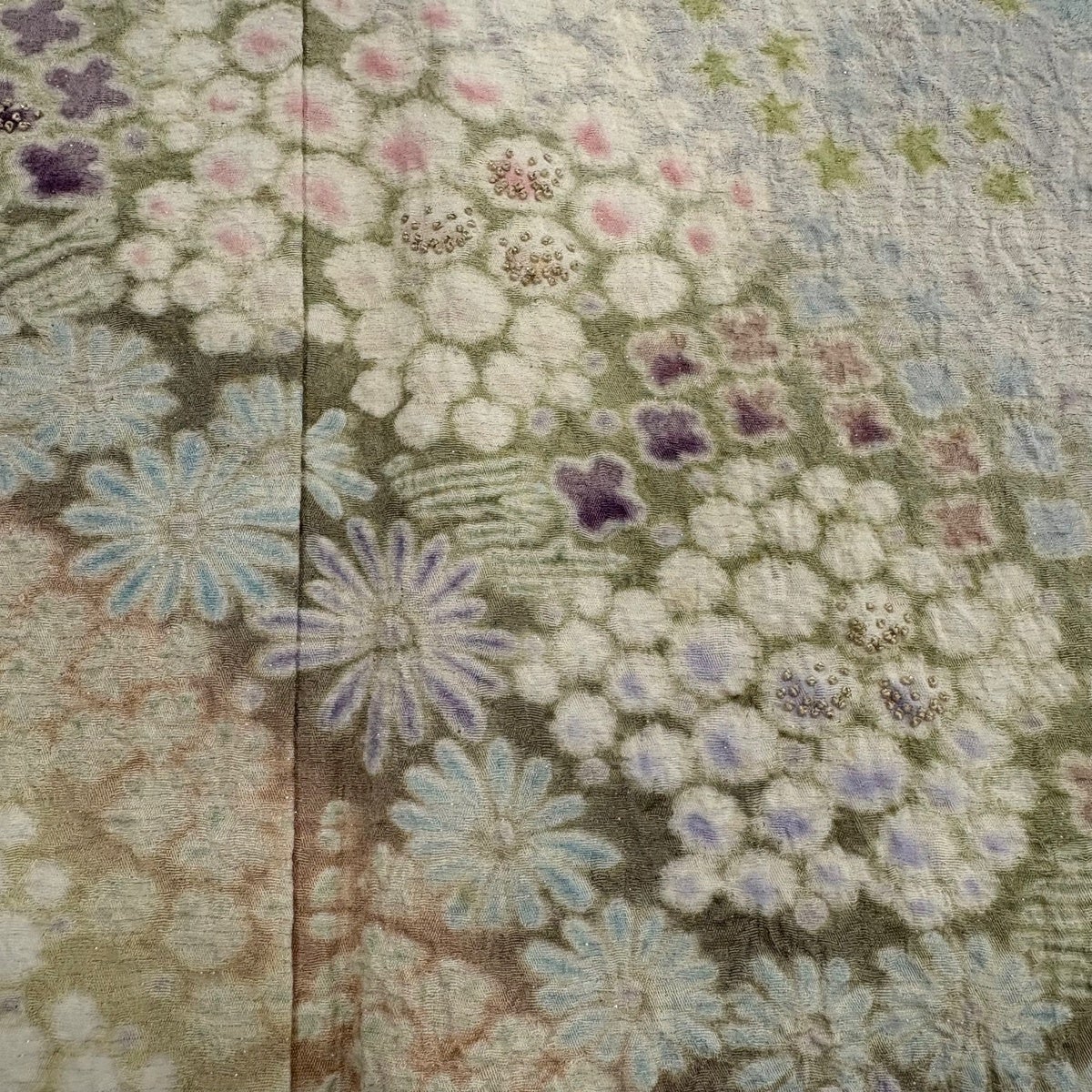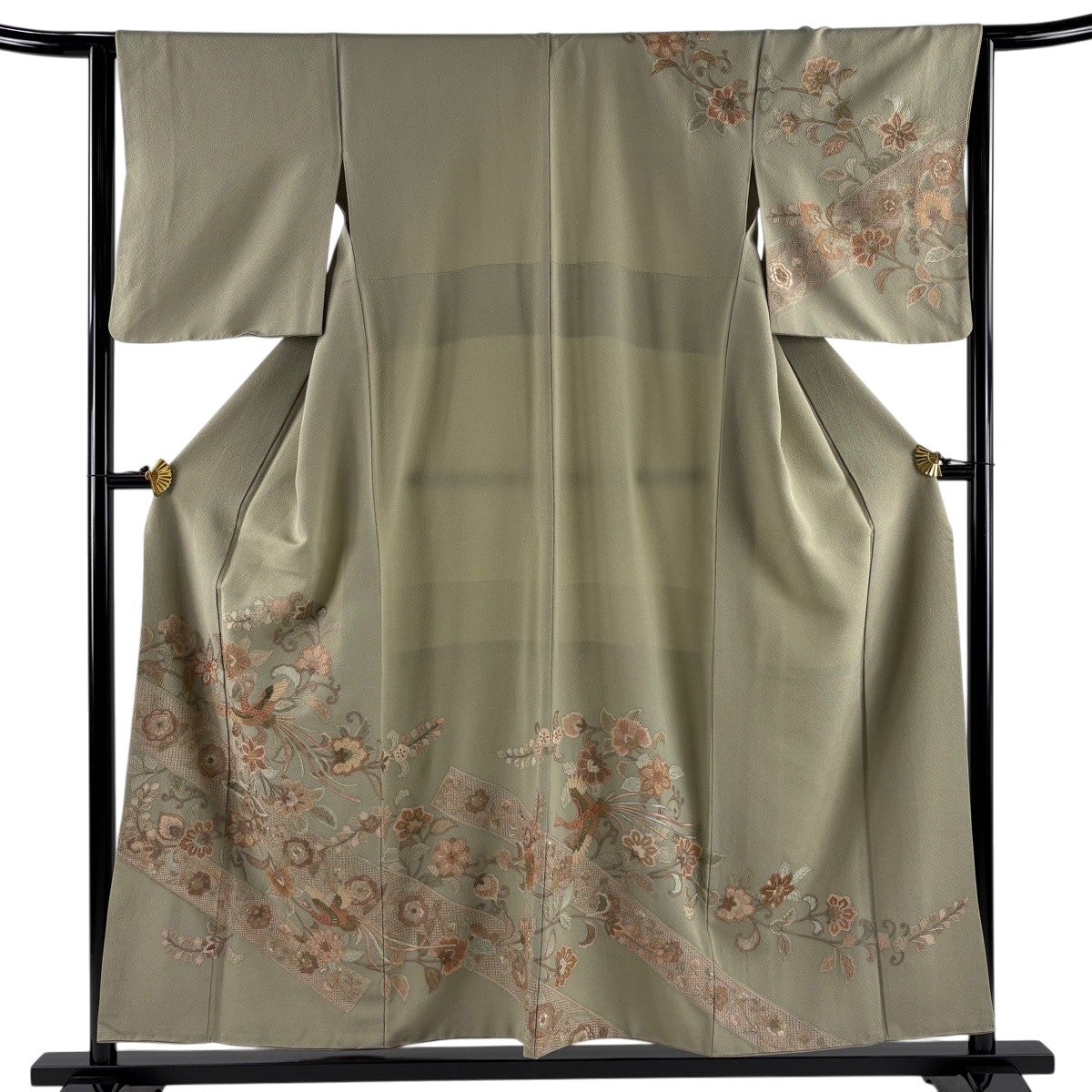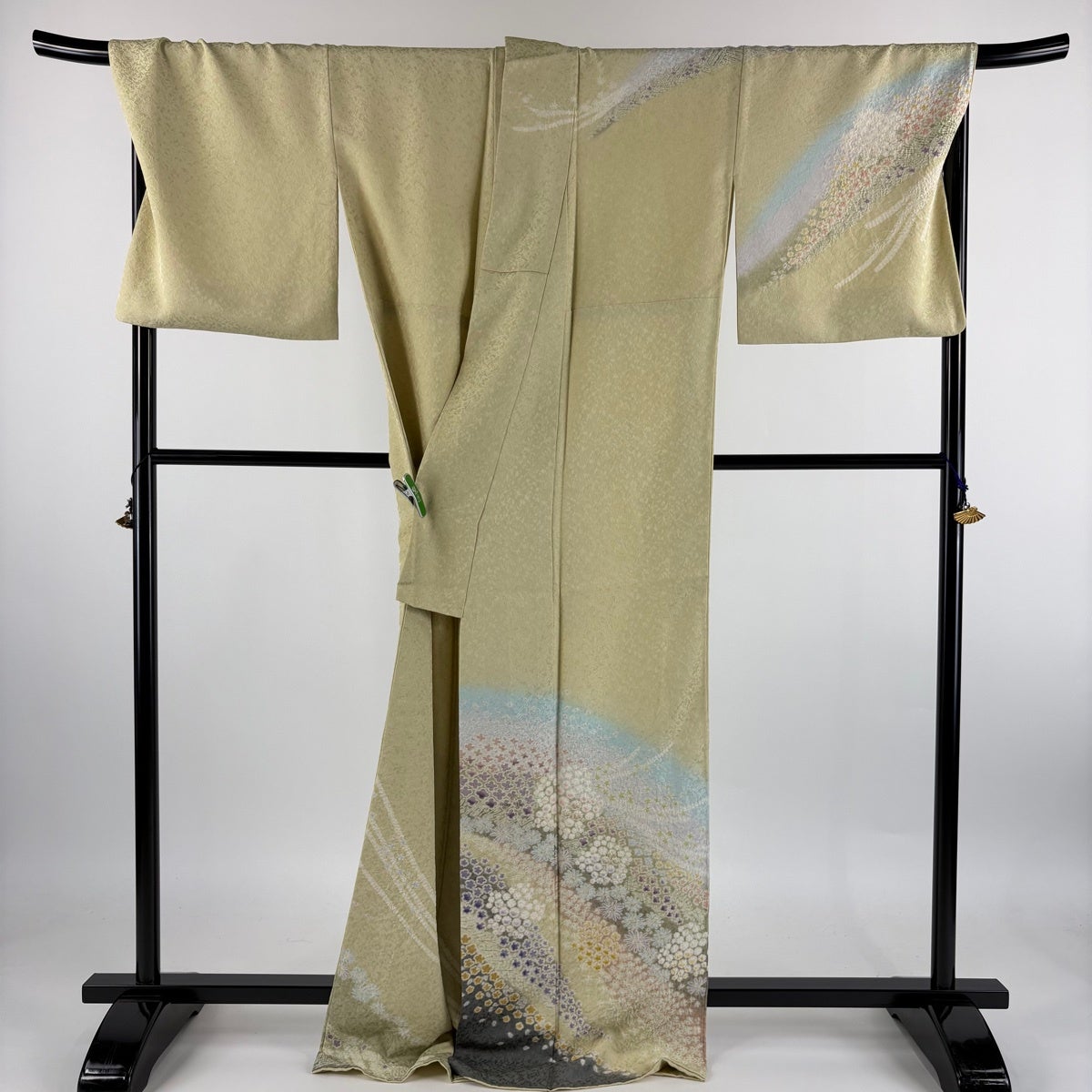 訪問着 身丈168cm 裄丈70cm L 袷 菊 霞 金糸 金彩 抹茶色 正絹 秀品