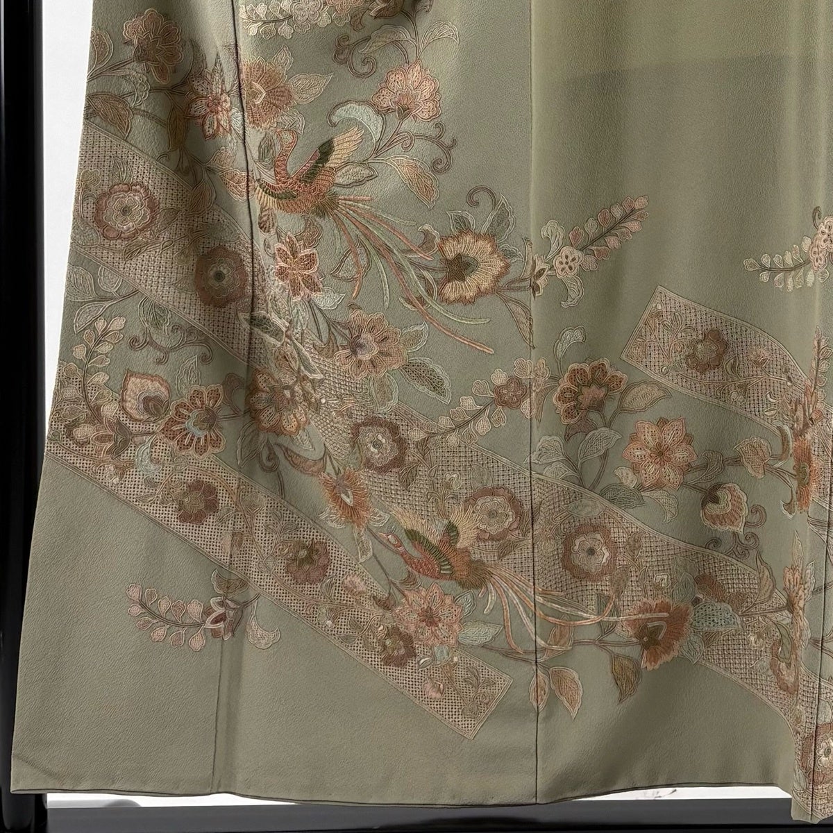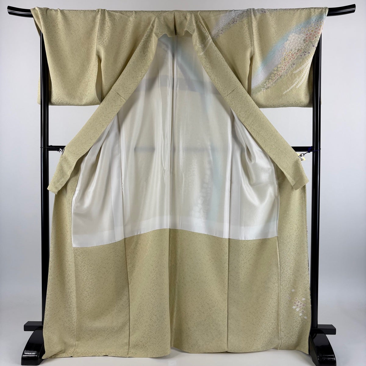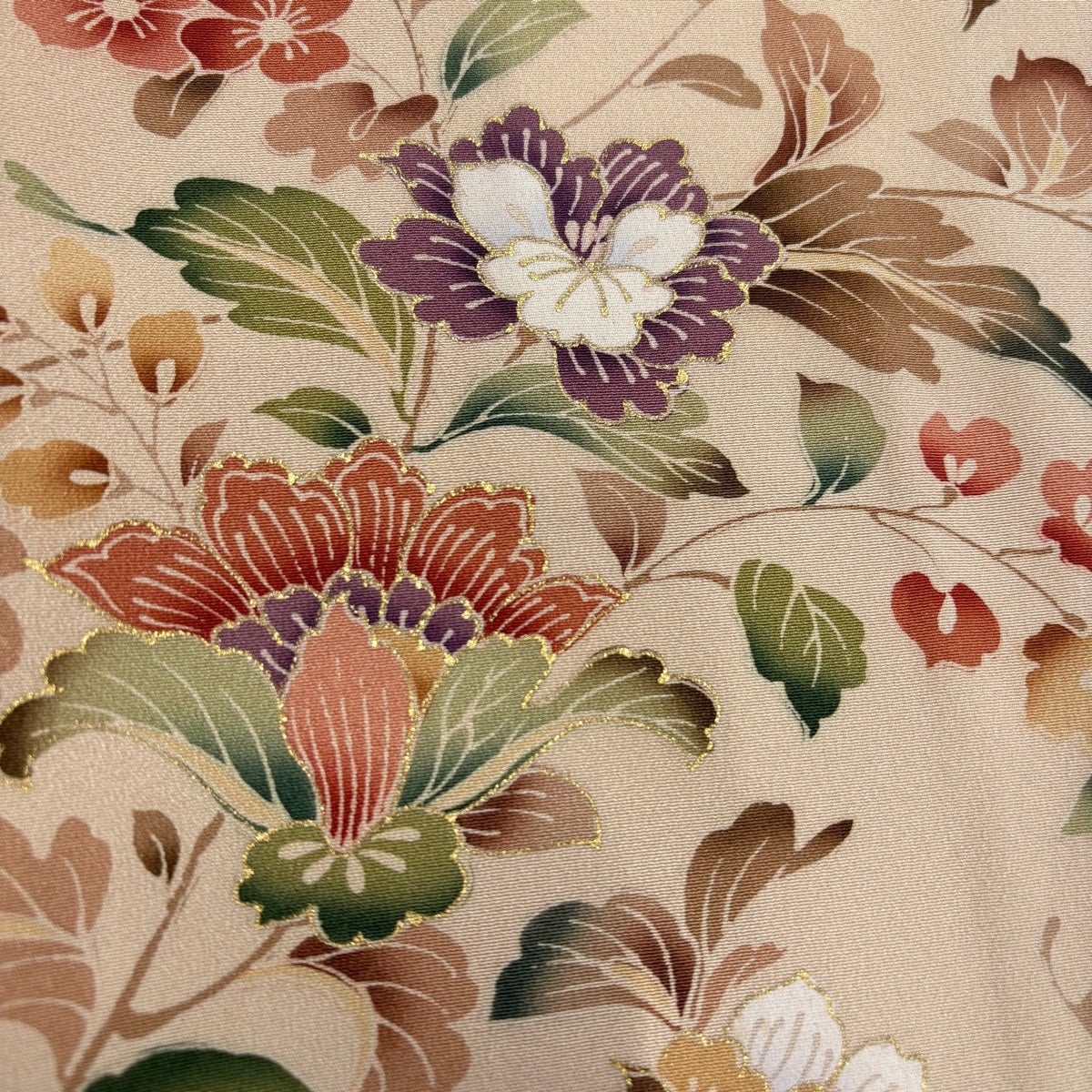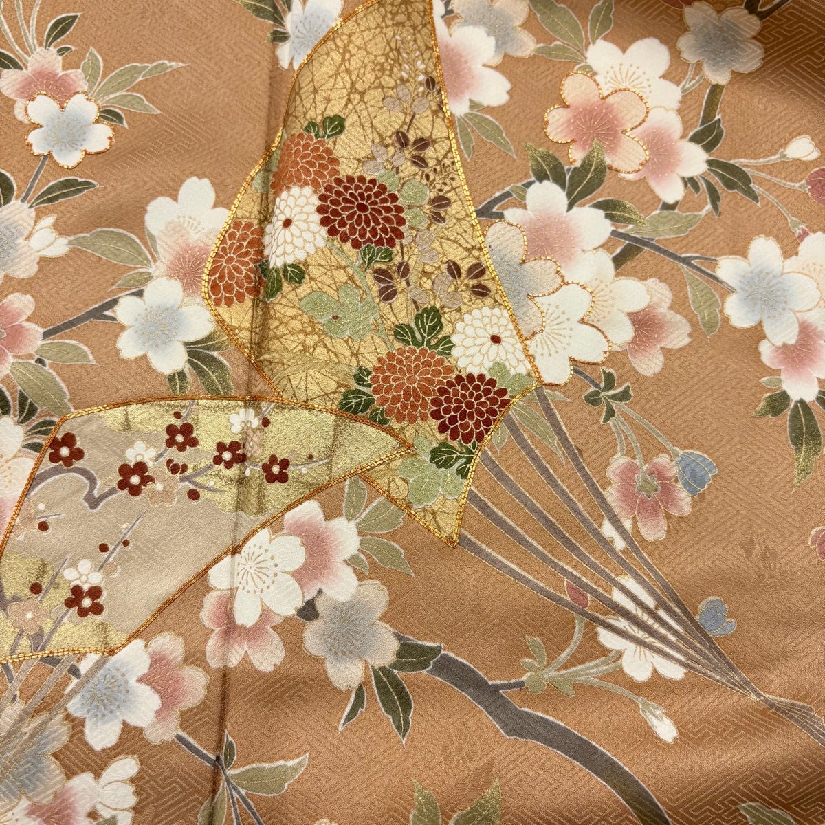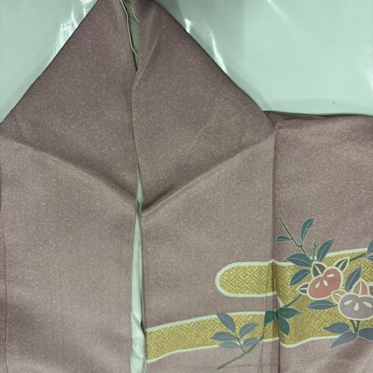 訪問着 身丈168cm 裄丈70cm L 袷 菊 霞 金糸 金彩 抹茶色 正絹 秀品