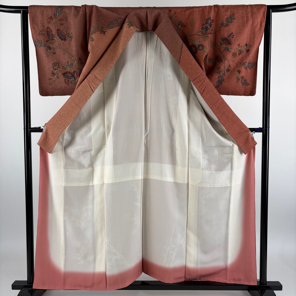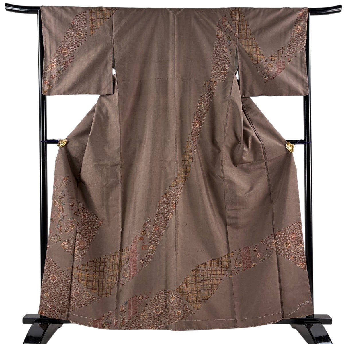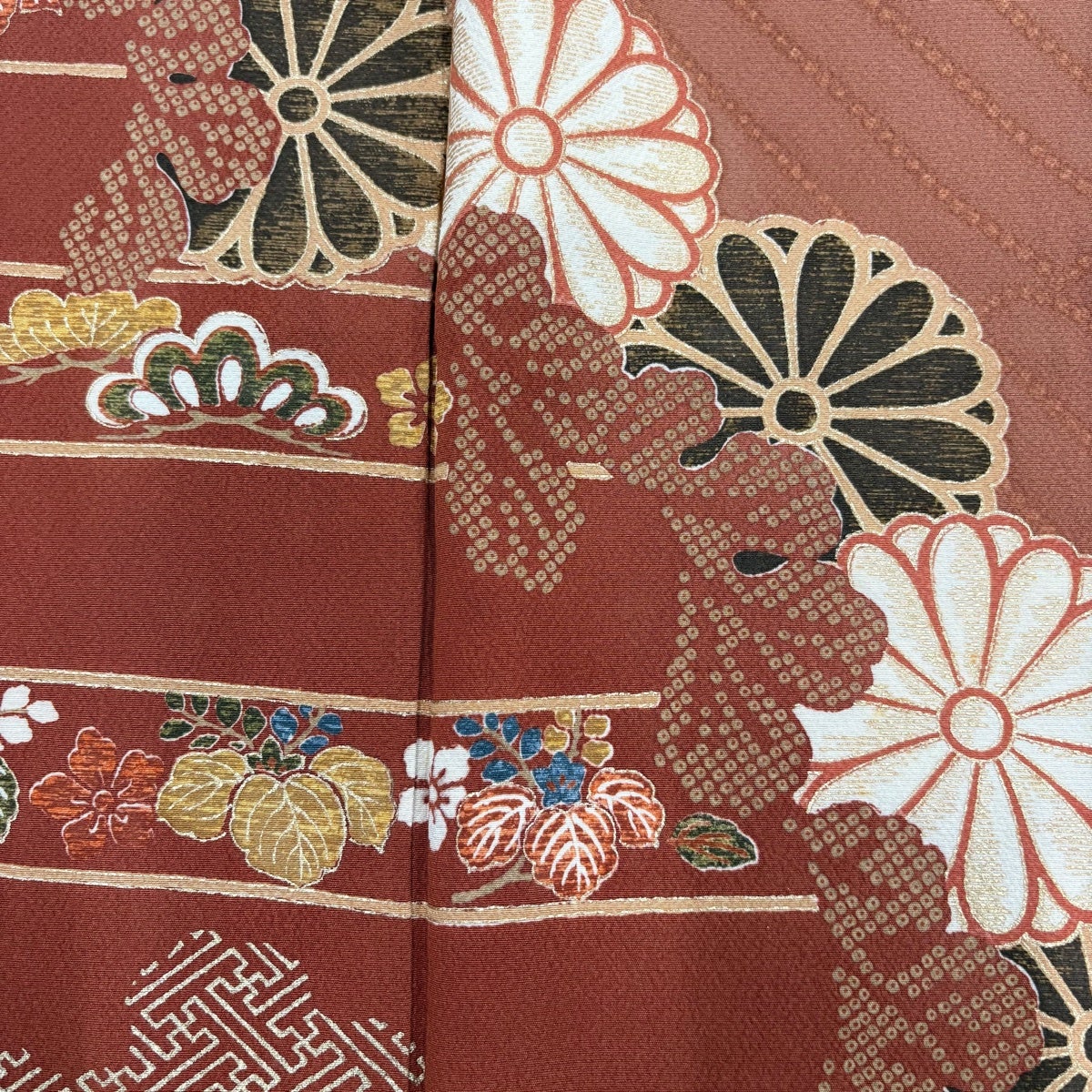 訪問着 身丈163cm 裄丈67cm M 袷 笠松 草花 金彩 薄小豆 正絹 秀品