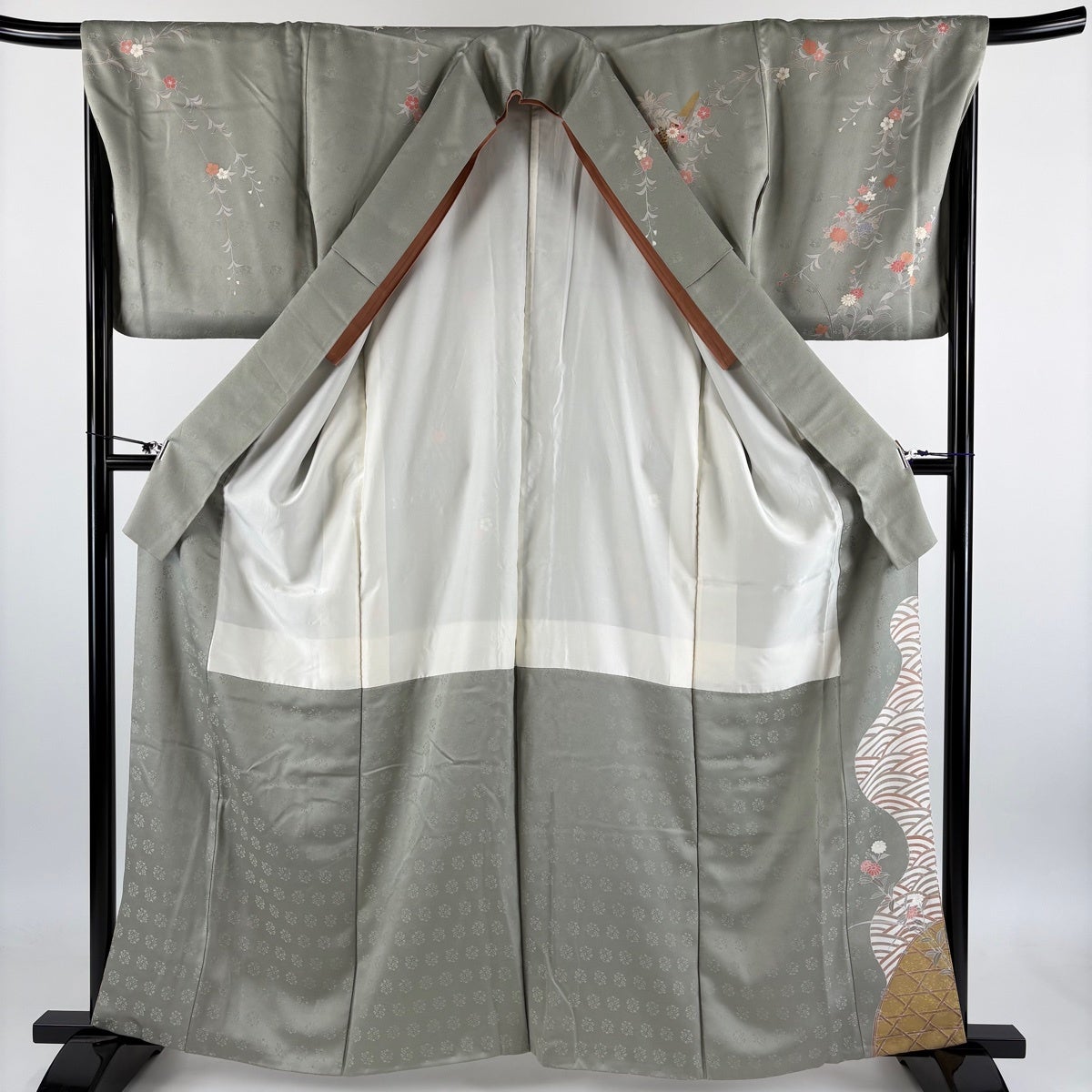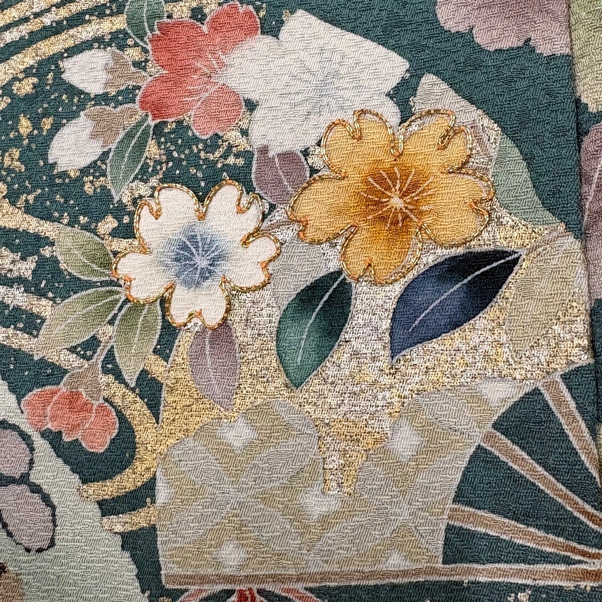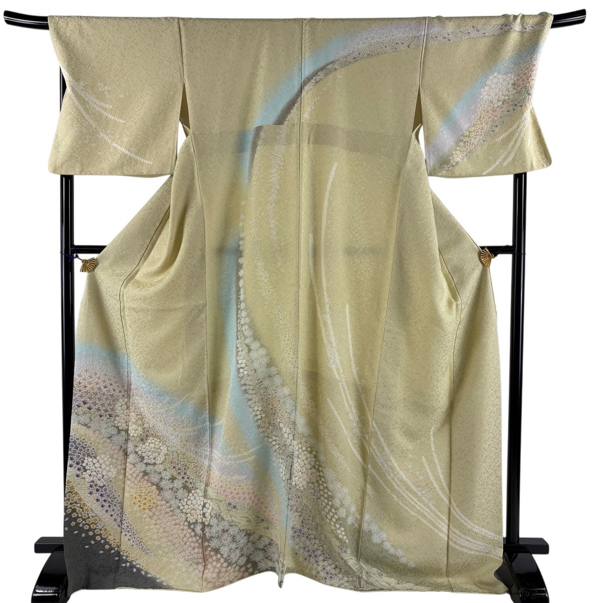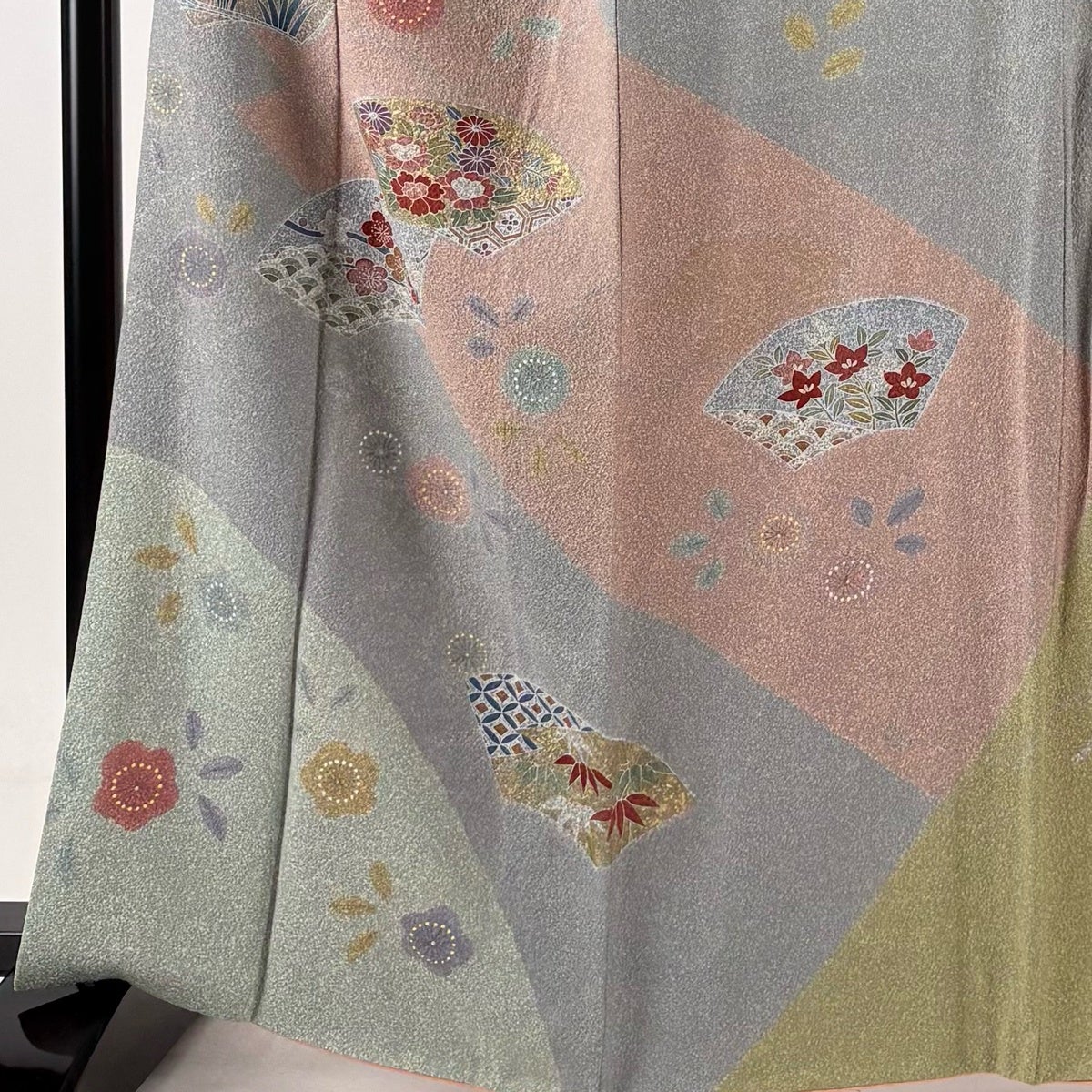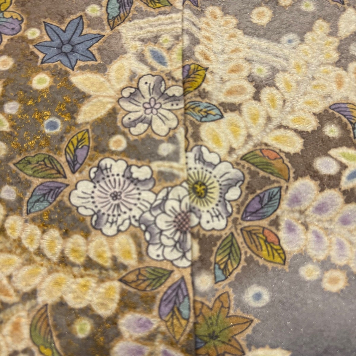 訪問着 身丈164cm 裄丈68cm L 袷 扇面 草花 金彩 青灰色 正絹 名品