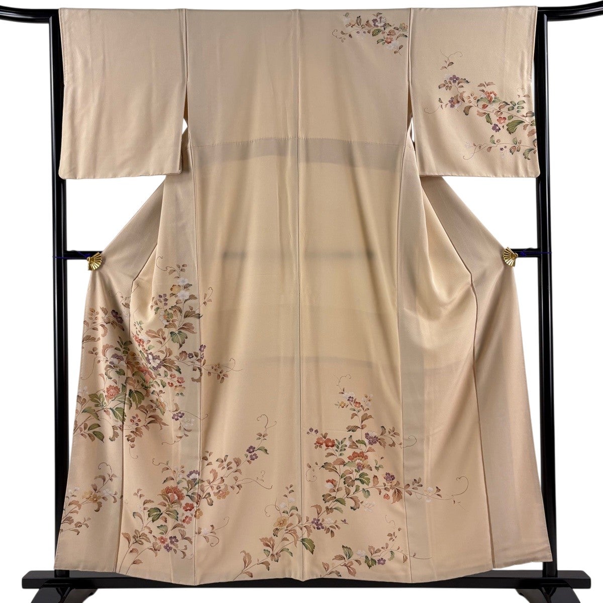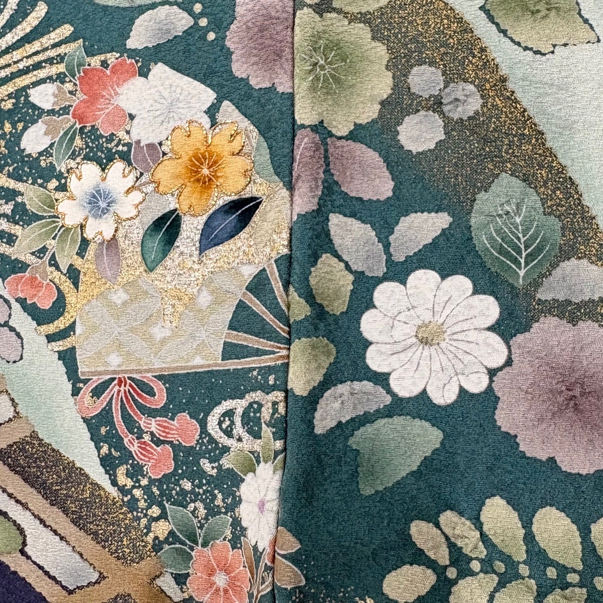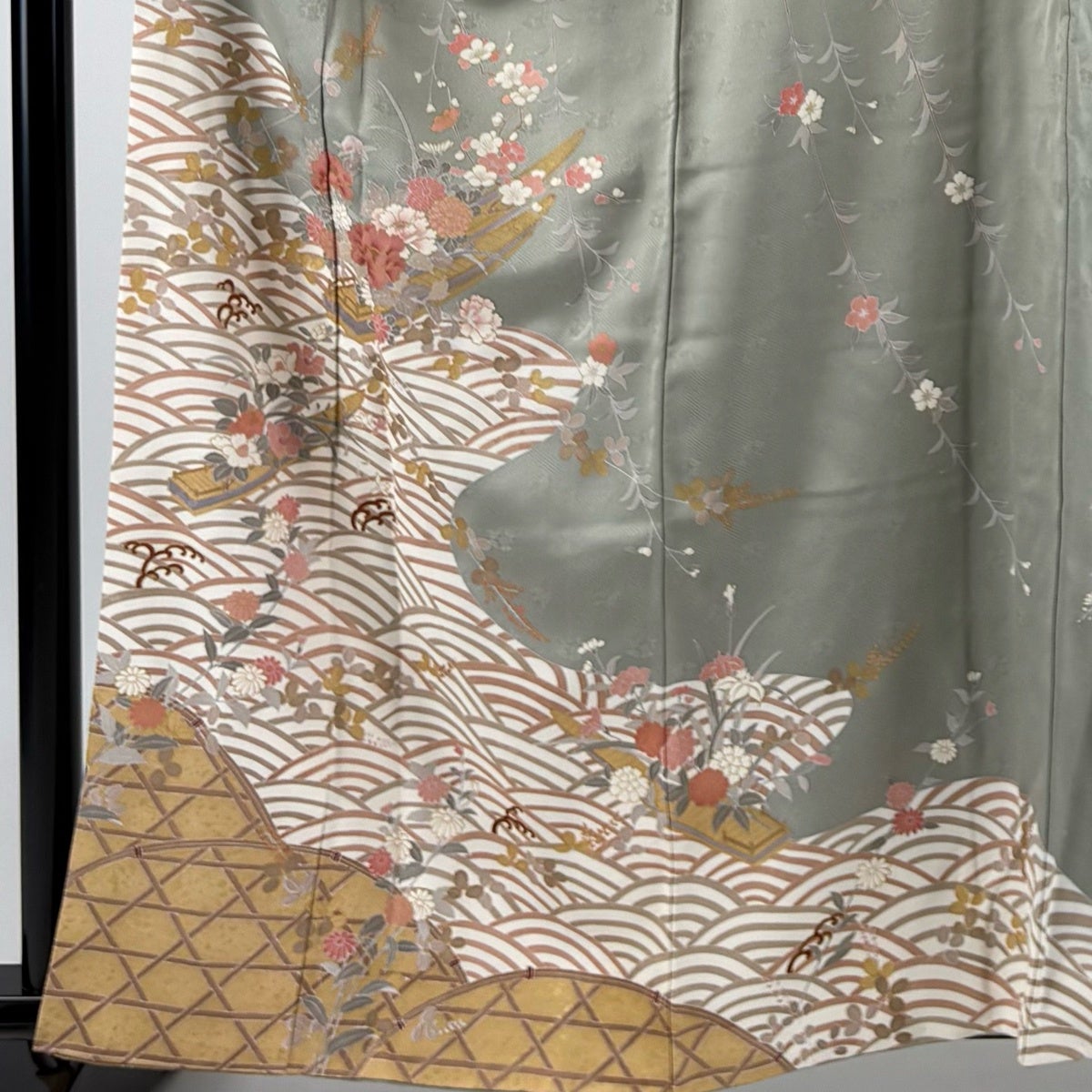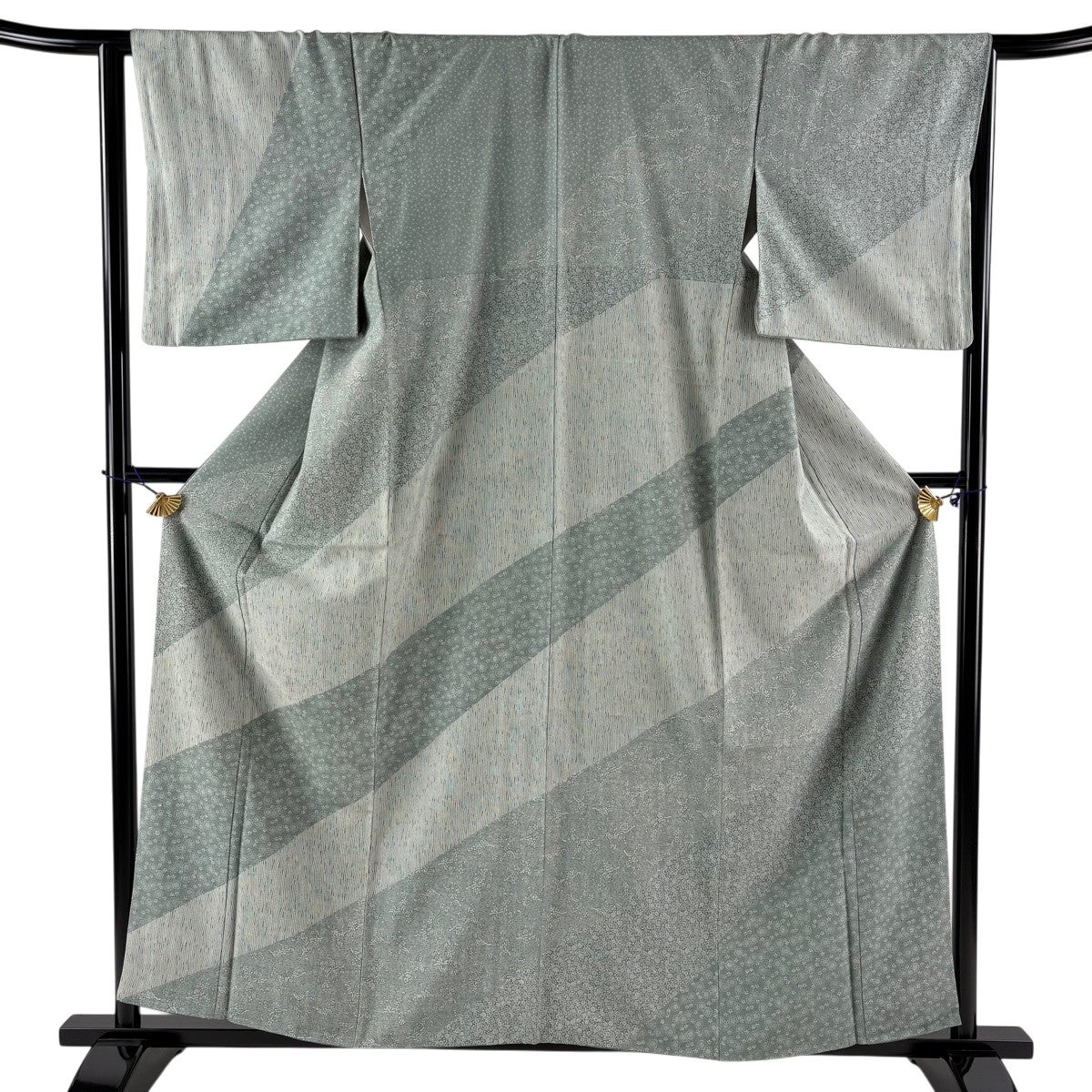 訪問着 身丈164cm 裄丈68cm L 袷 扇面 草花 金彩 青灰色 正絹 名品