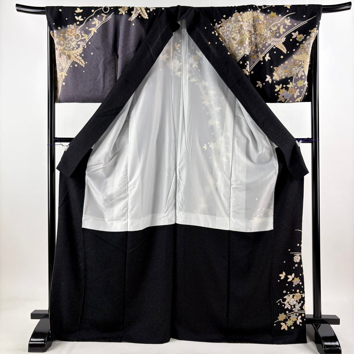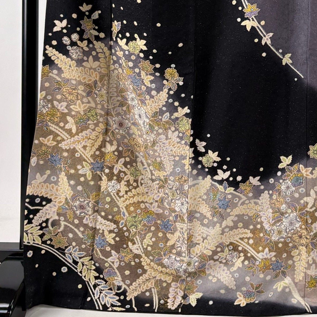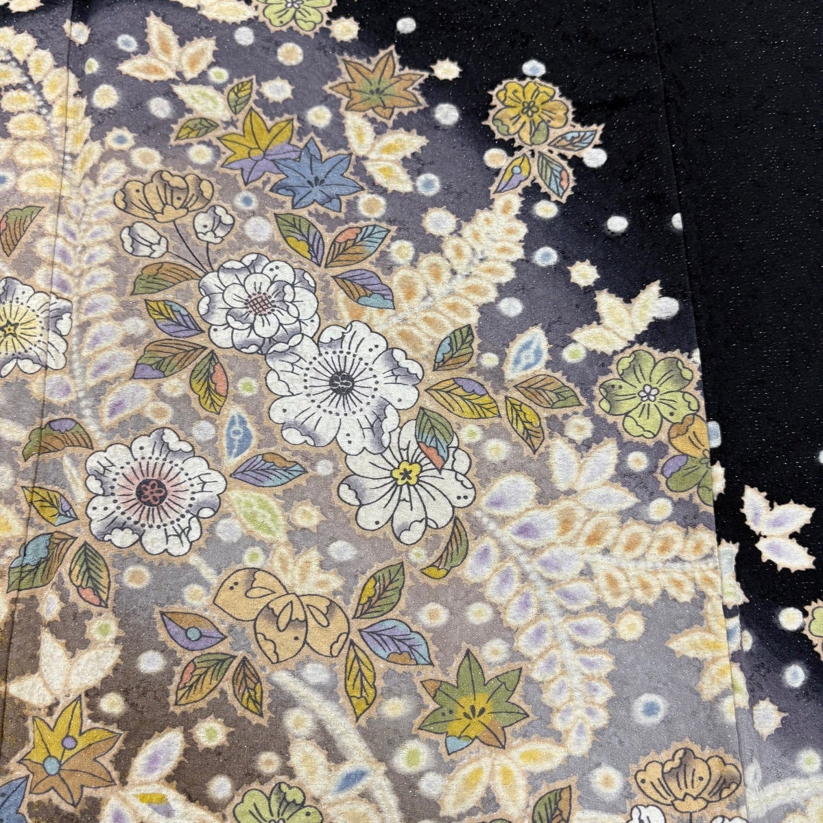 訪問着 身丈169cm 裄丈68cm L 袷 草花 銀通し 金彩 黒 正絹 名品