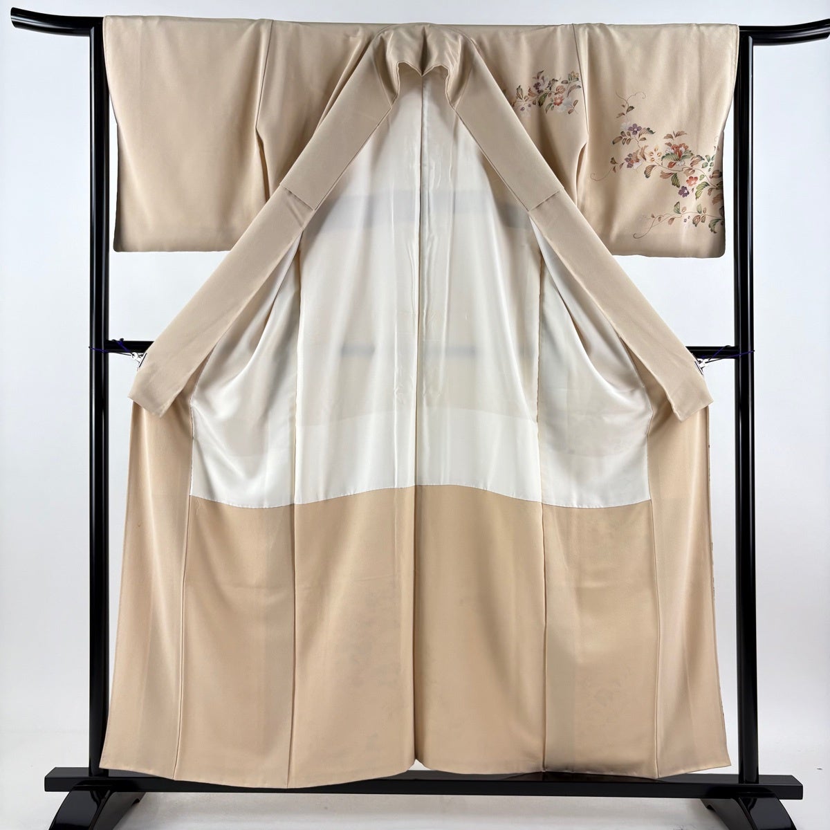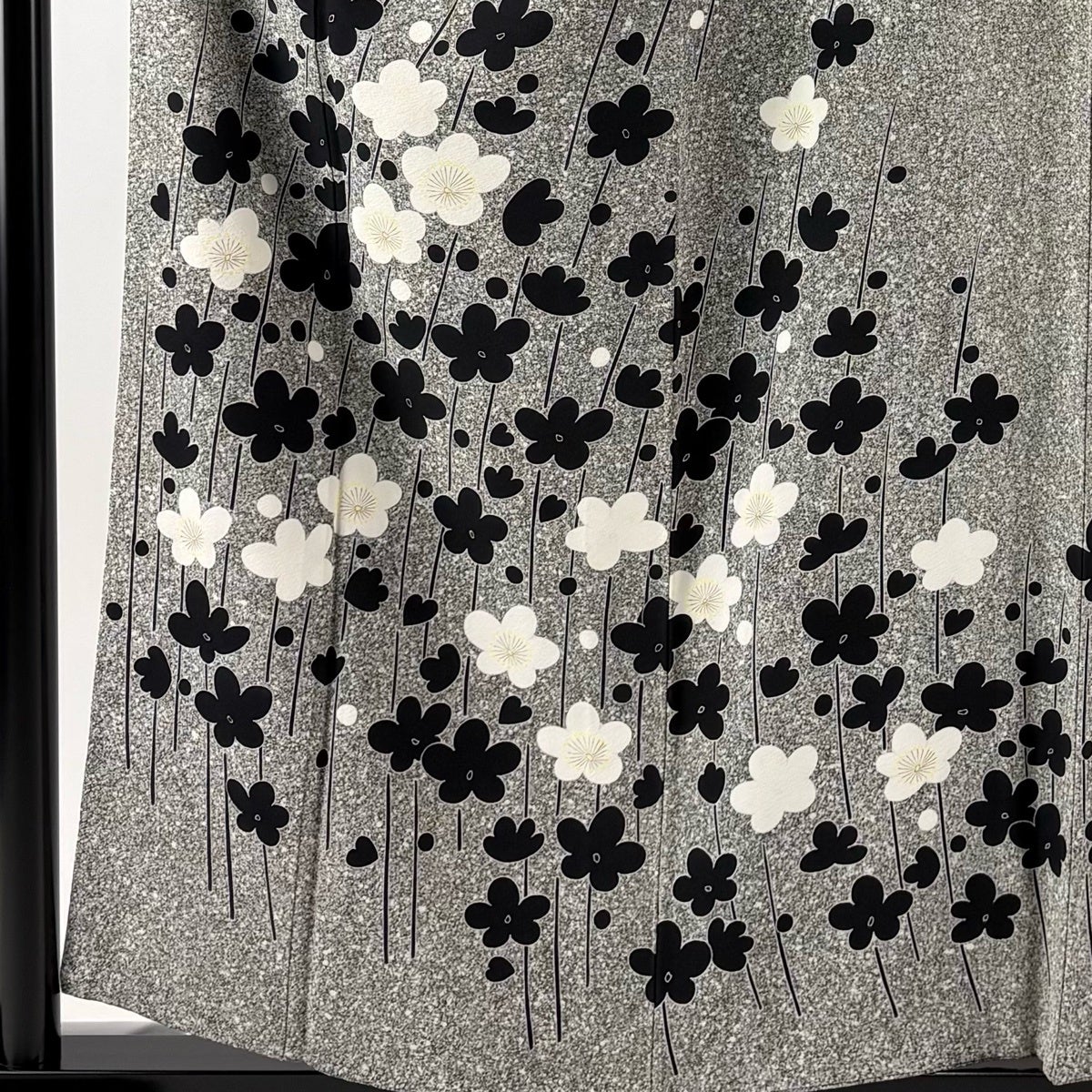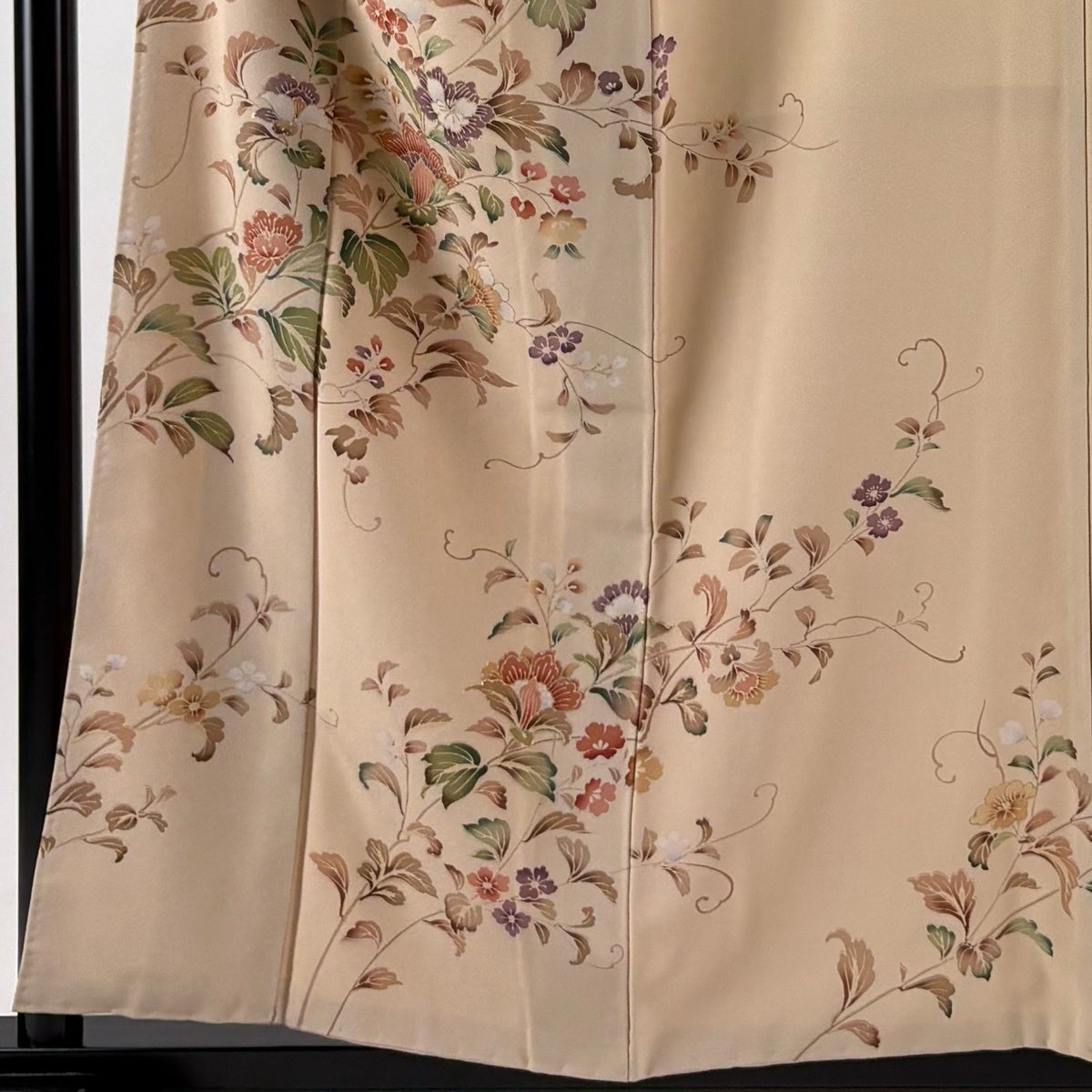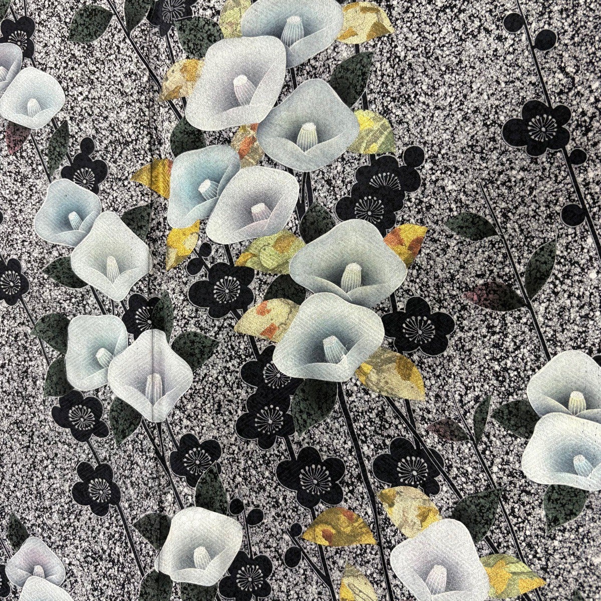 訪問着 身丈169cm 裄丈68cm L 袷 草花 銀通し 金彩 黒 正絹 名品