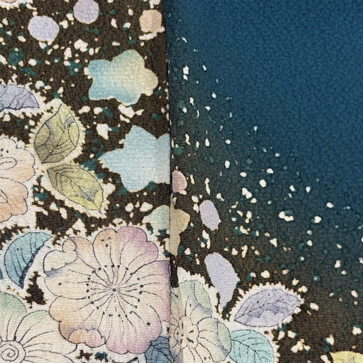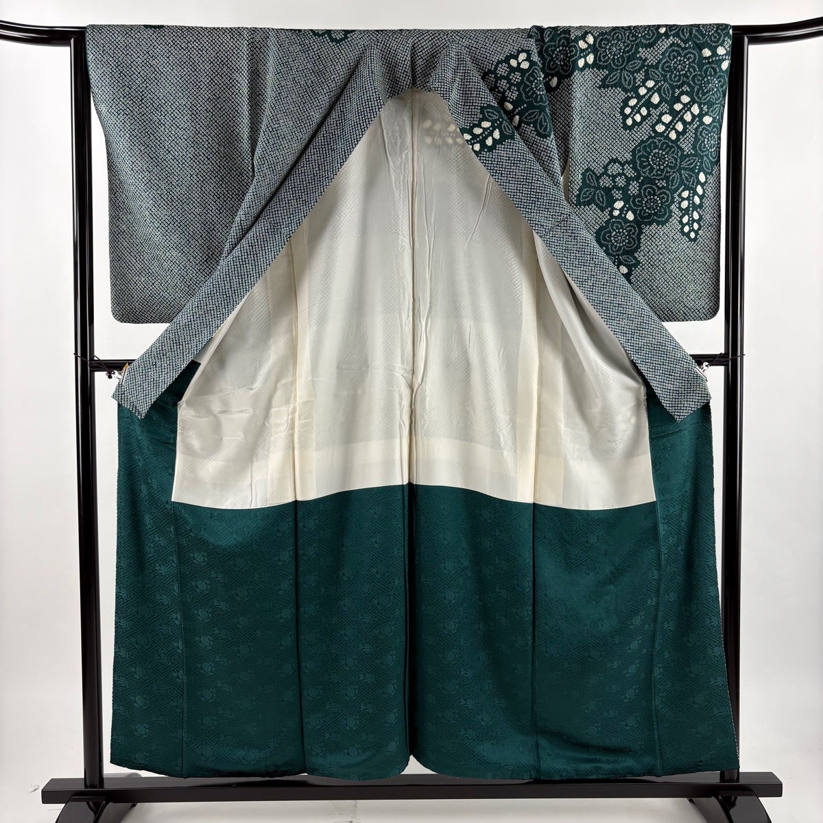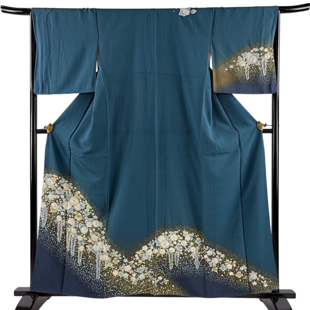 訪問着 身丈159.5cm 裄丈65.5cm M 袷 辻が花 ぼかし 青緑 正絹 秀品