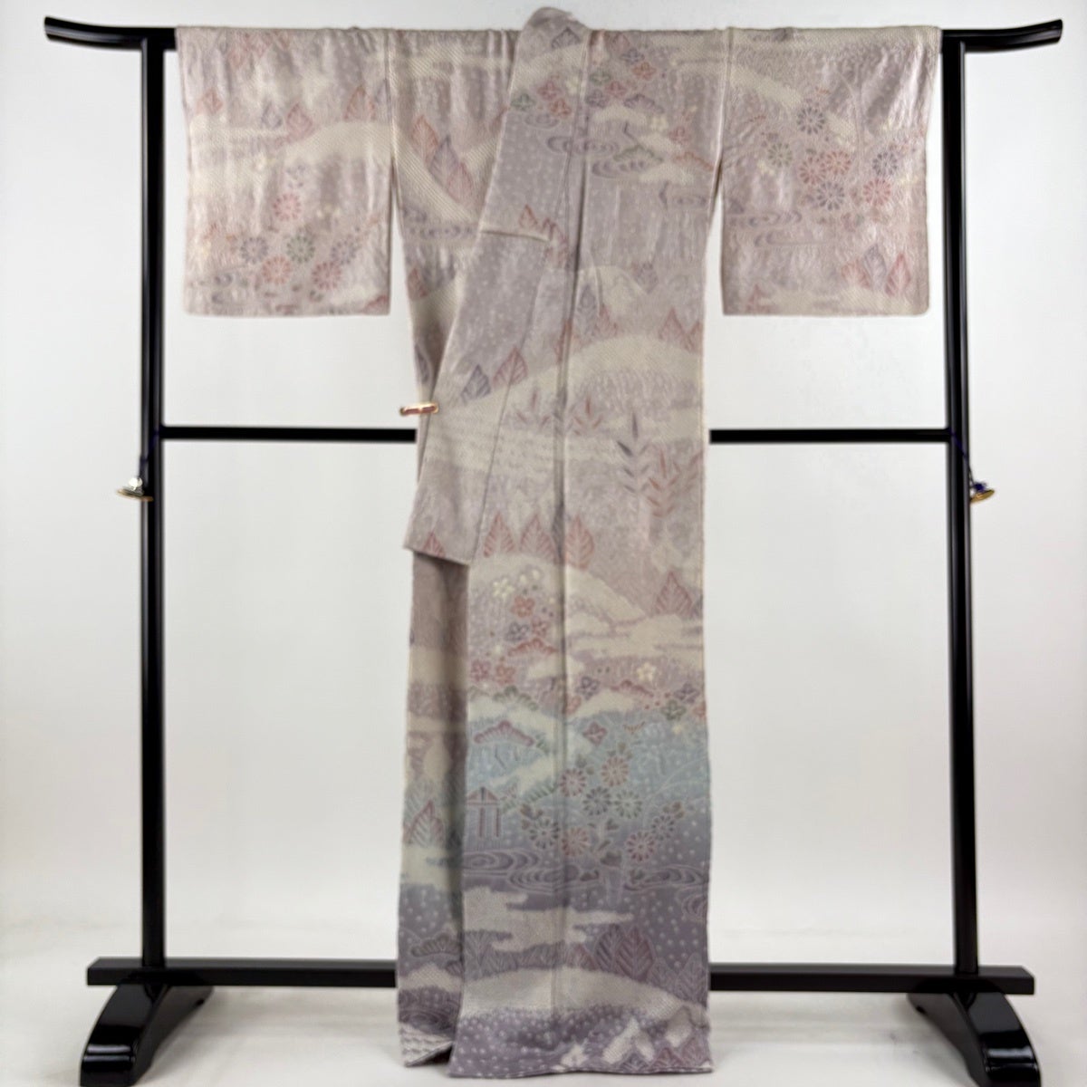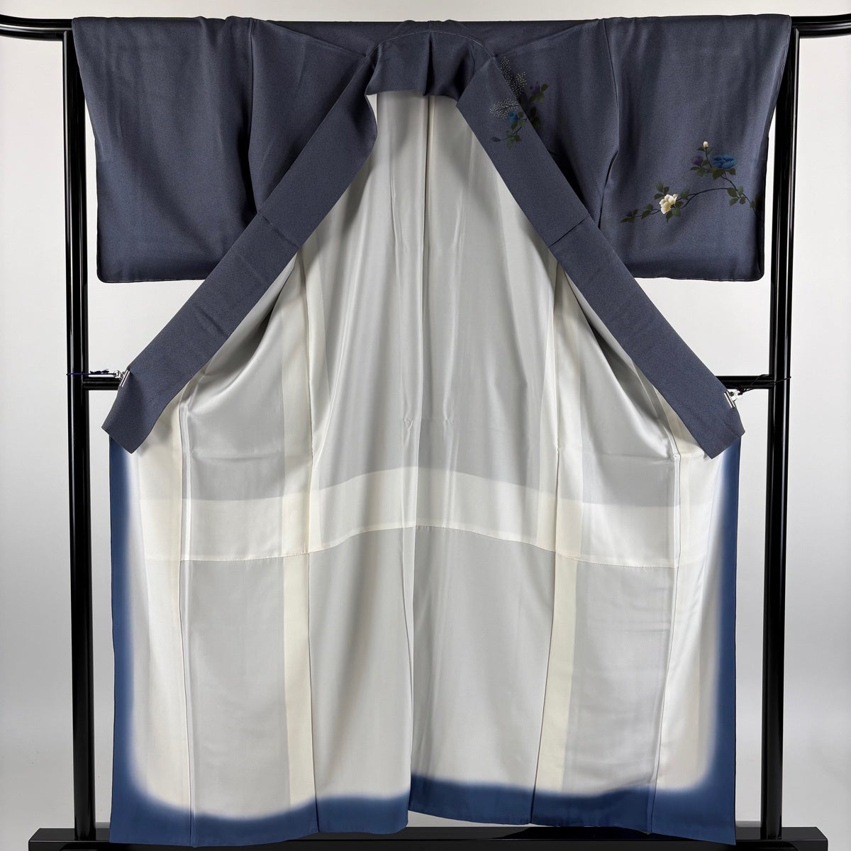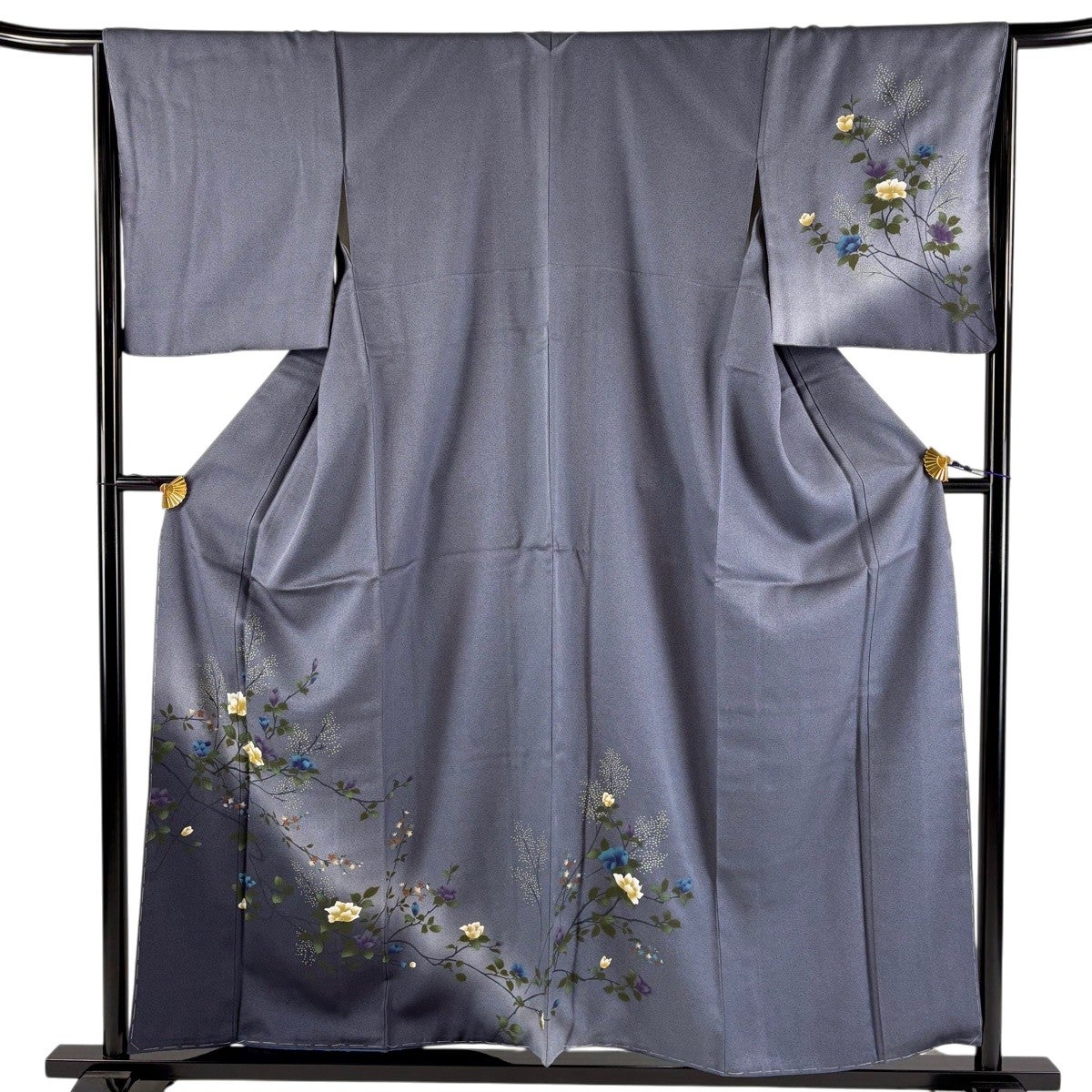 訪問着 身丈157.5cm 裄丈65.5cm M 袷 枝花 ぼかし 青灰色 正絹 秀品