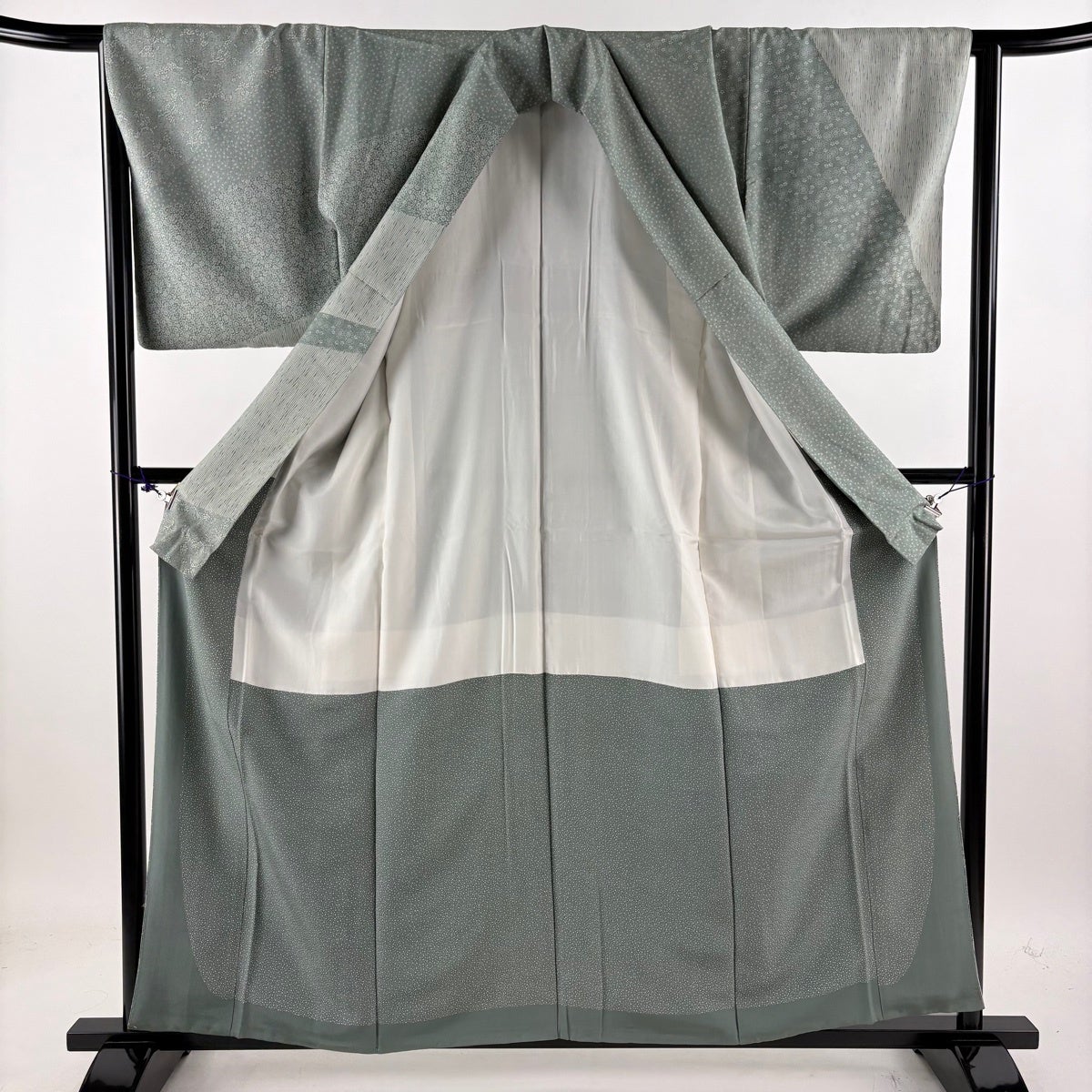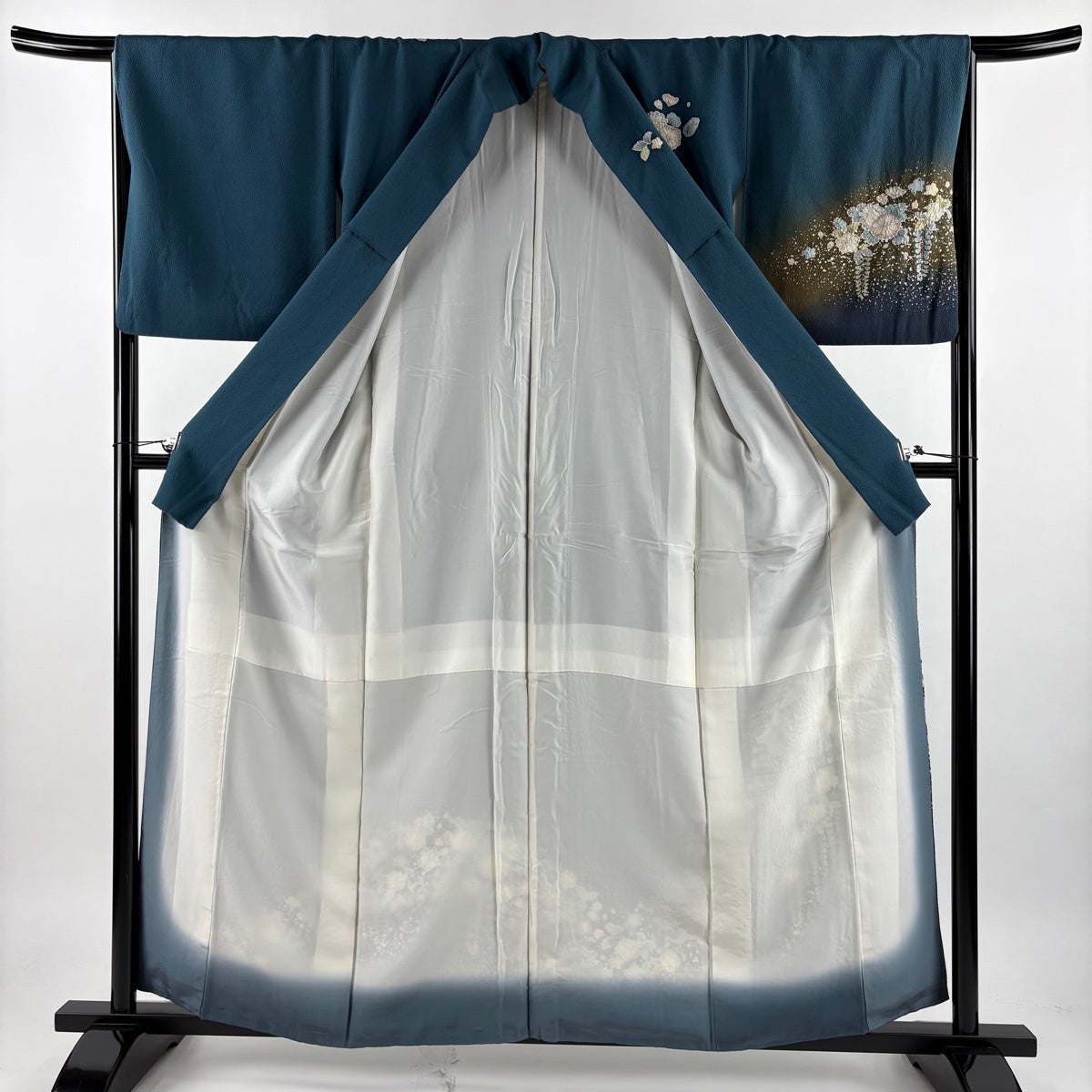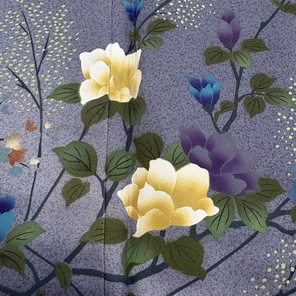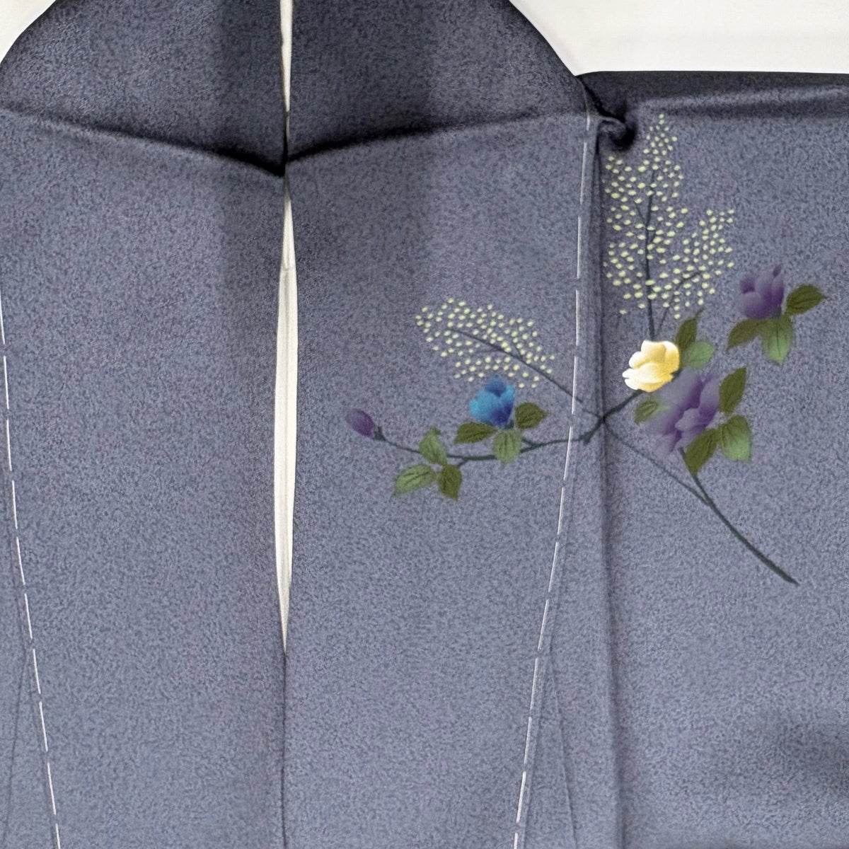 訪問着 身丈157.5cm 裄丈65.5cm M 袷 枝花 ぼかし 青灰色 正絹 秀品