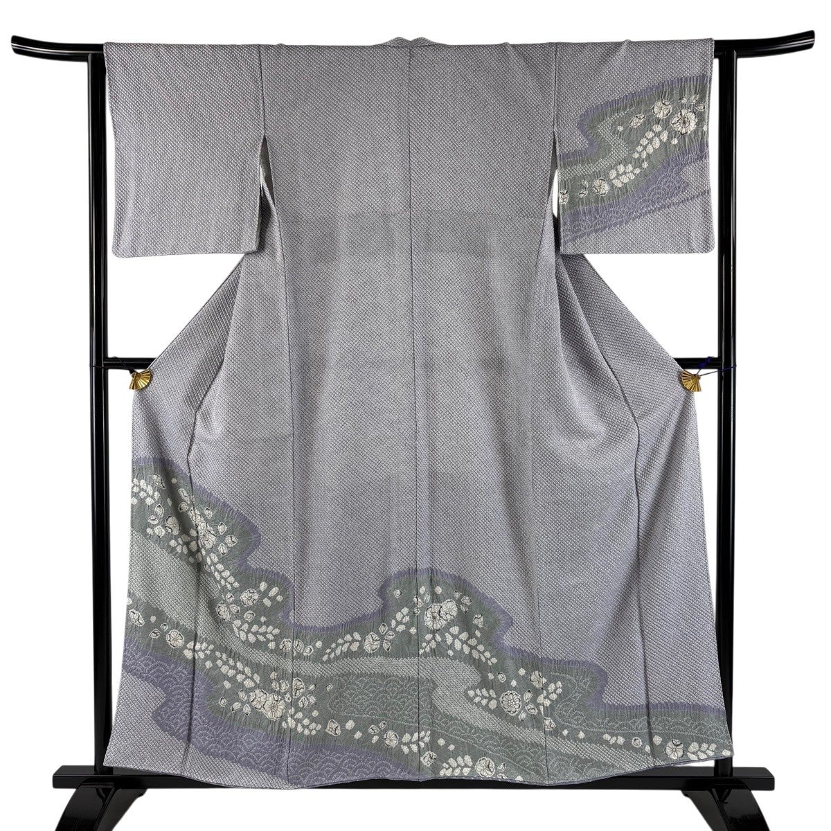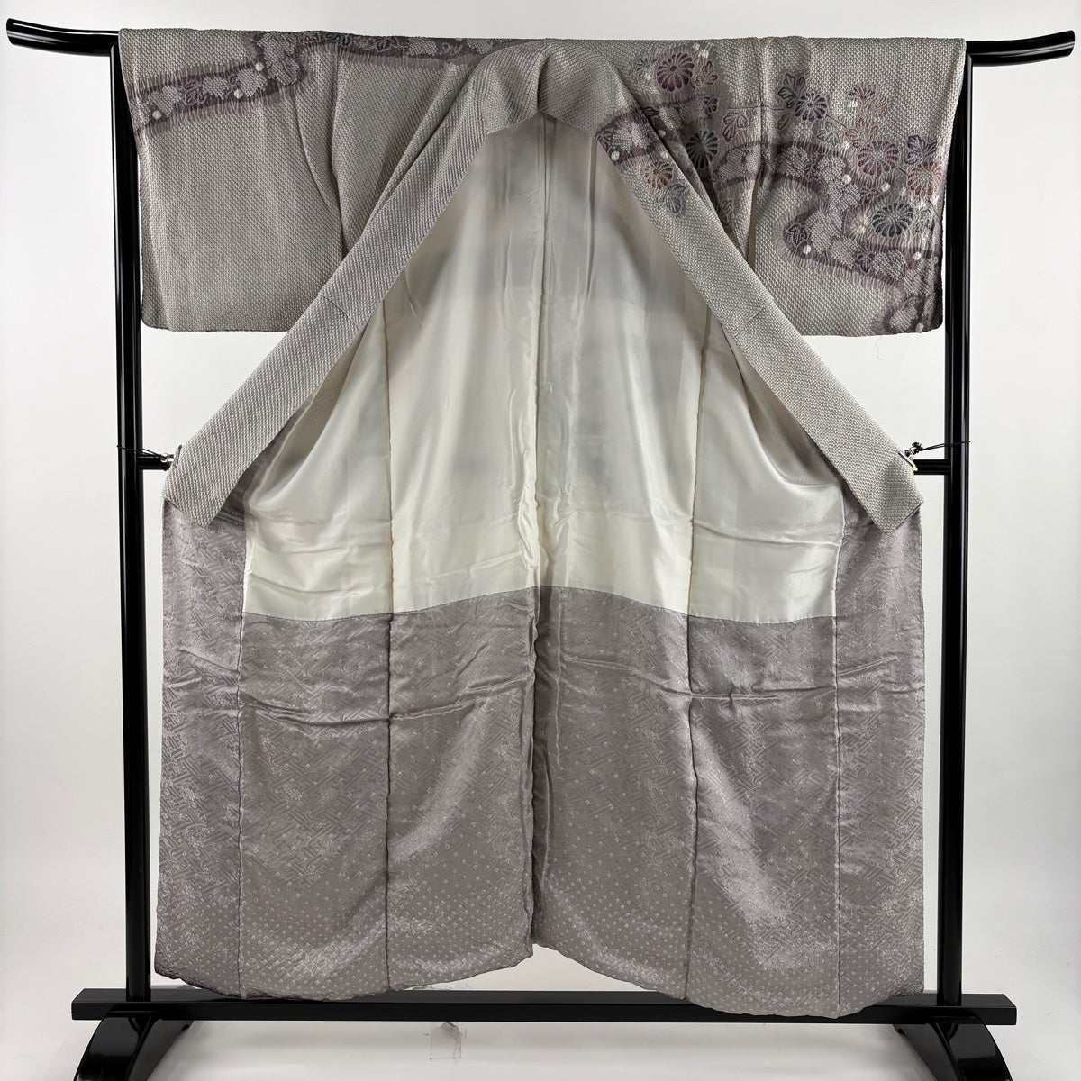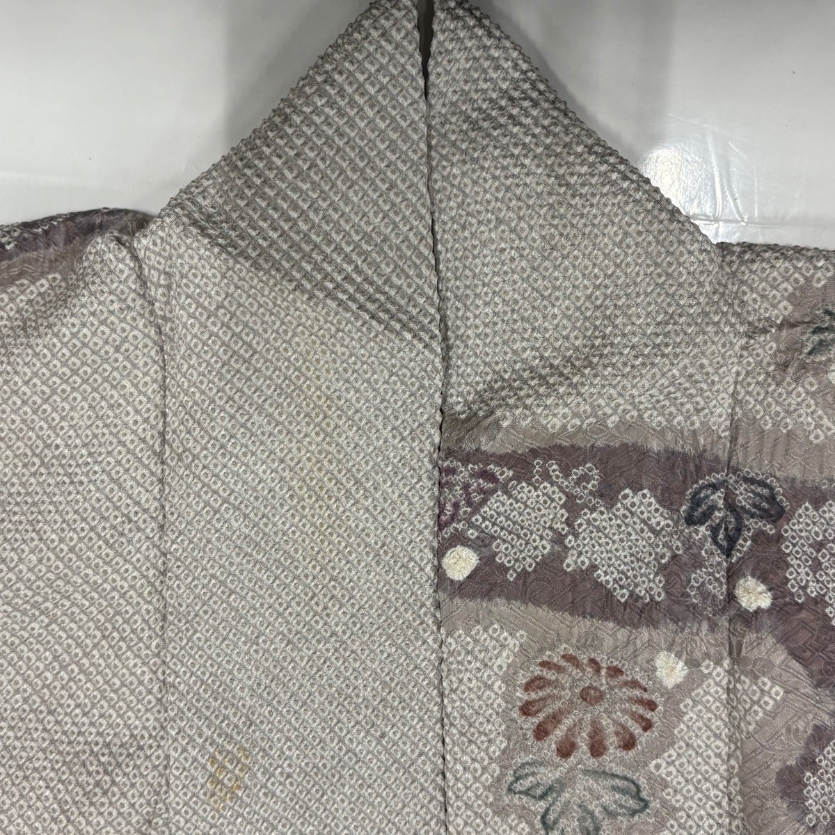 訪問着 身丈156cm 裄丈63cm S 袷 草花 幾何学 絞り 灰色 正絹 秀品