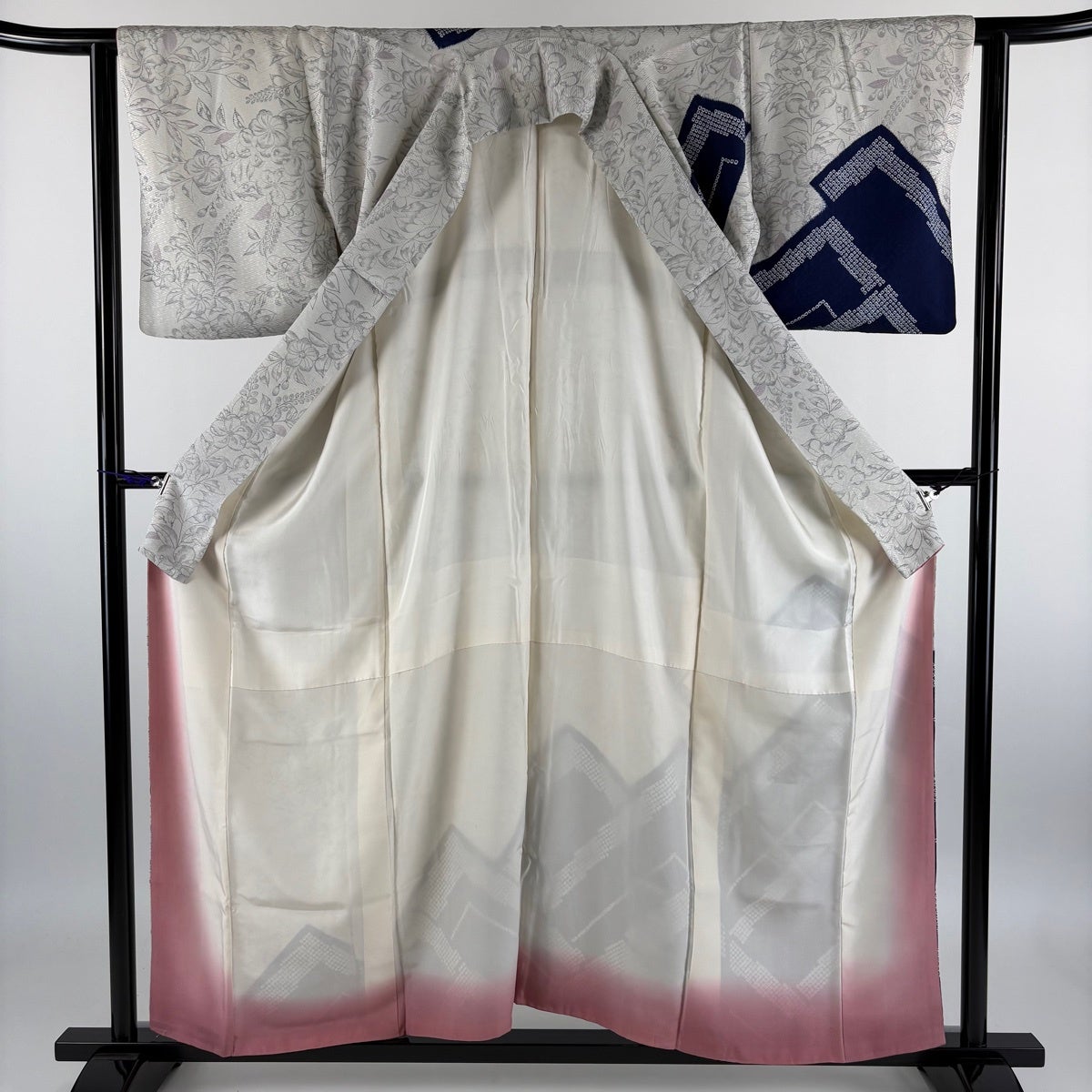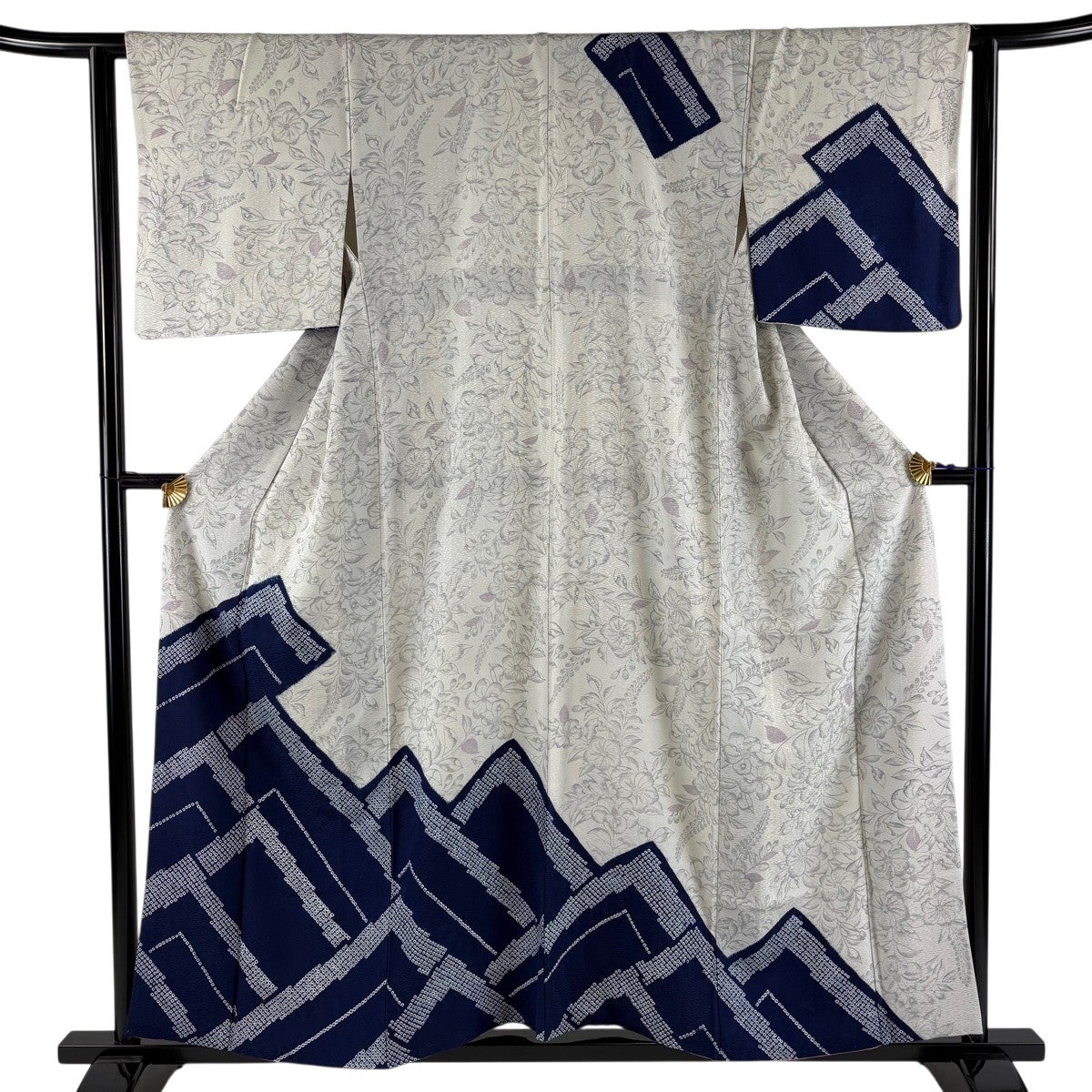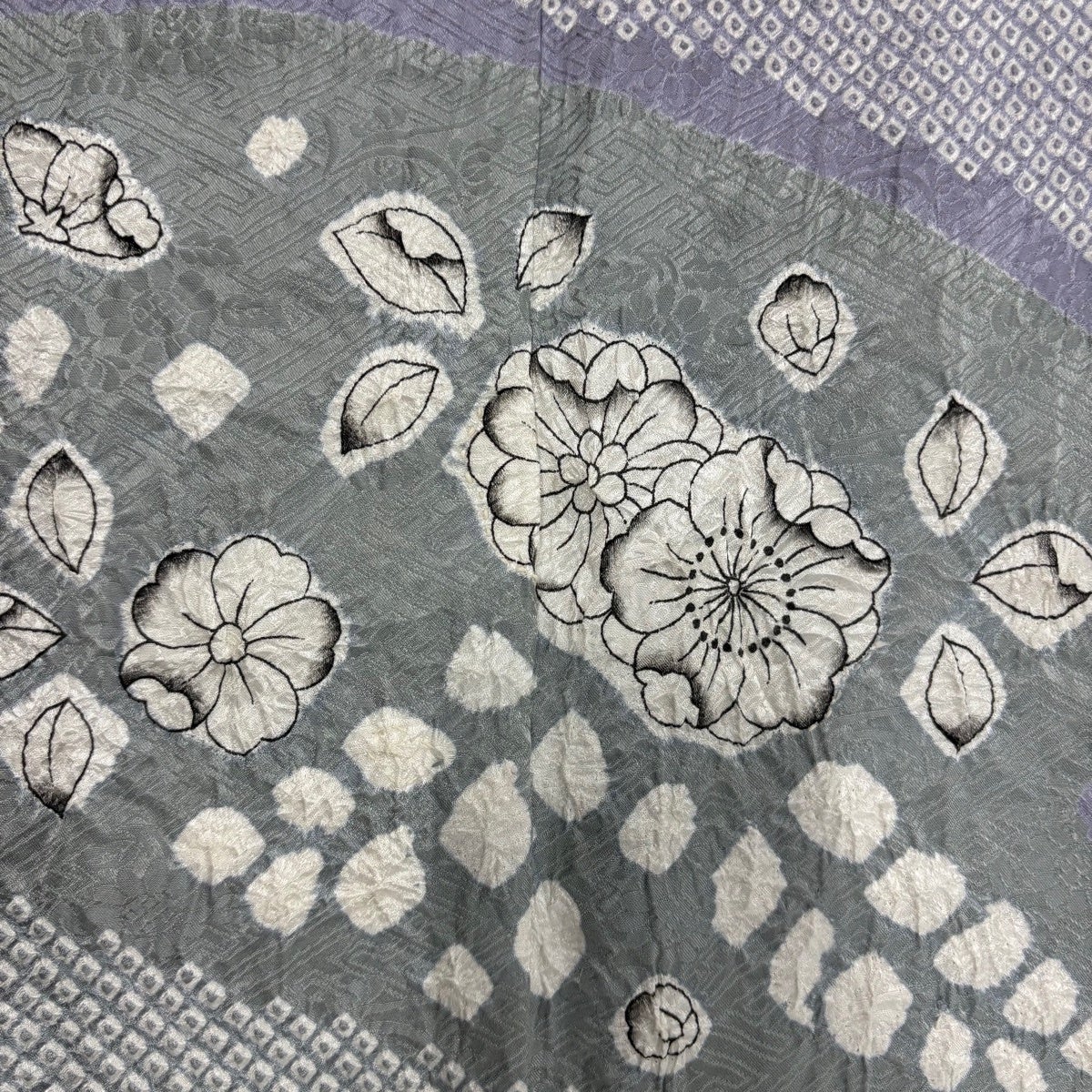 訪問着 身丈156cm 裄丈63cm S 袷 草花 幾何学 絞り 灰色 正絹 秀品