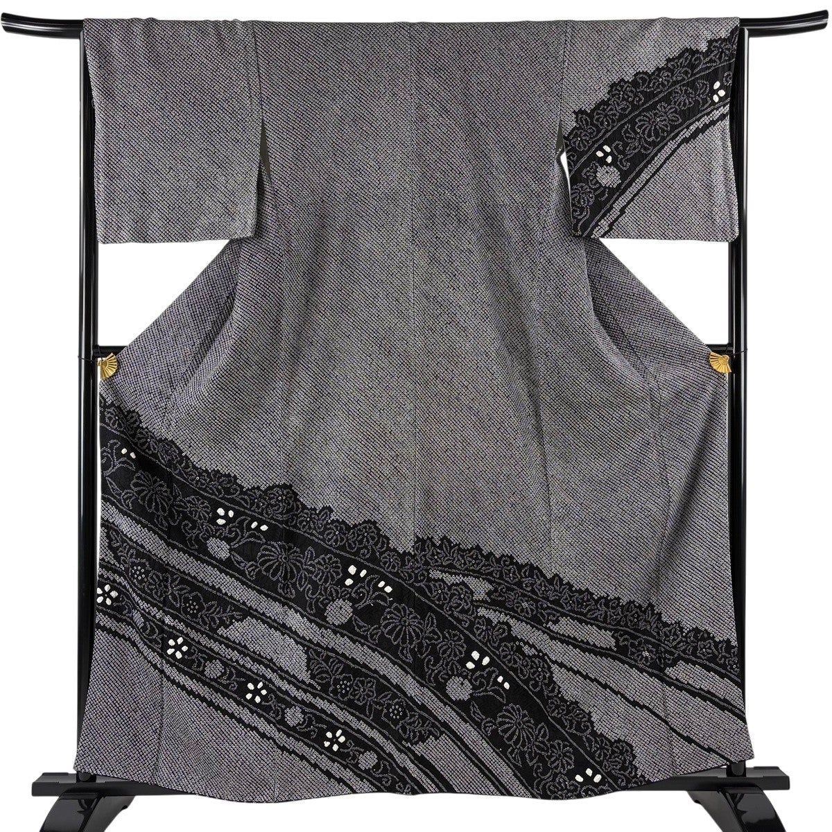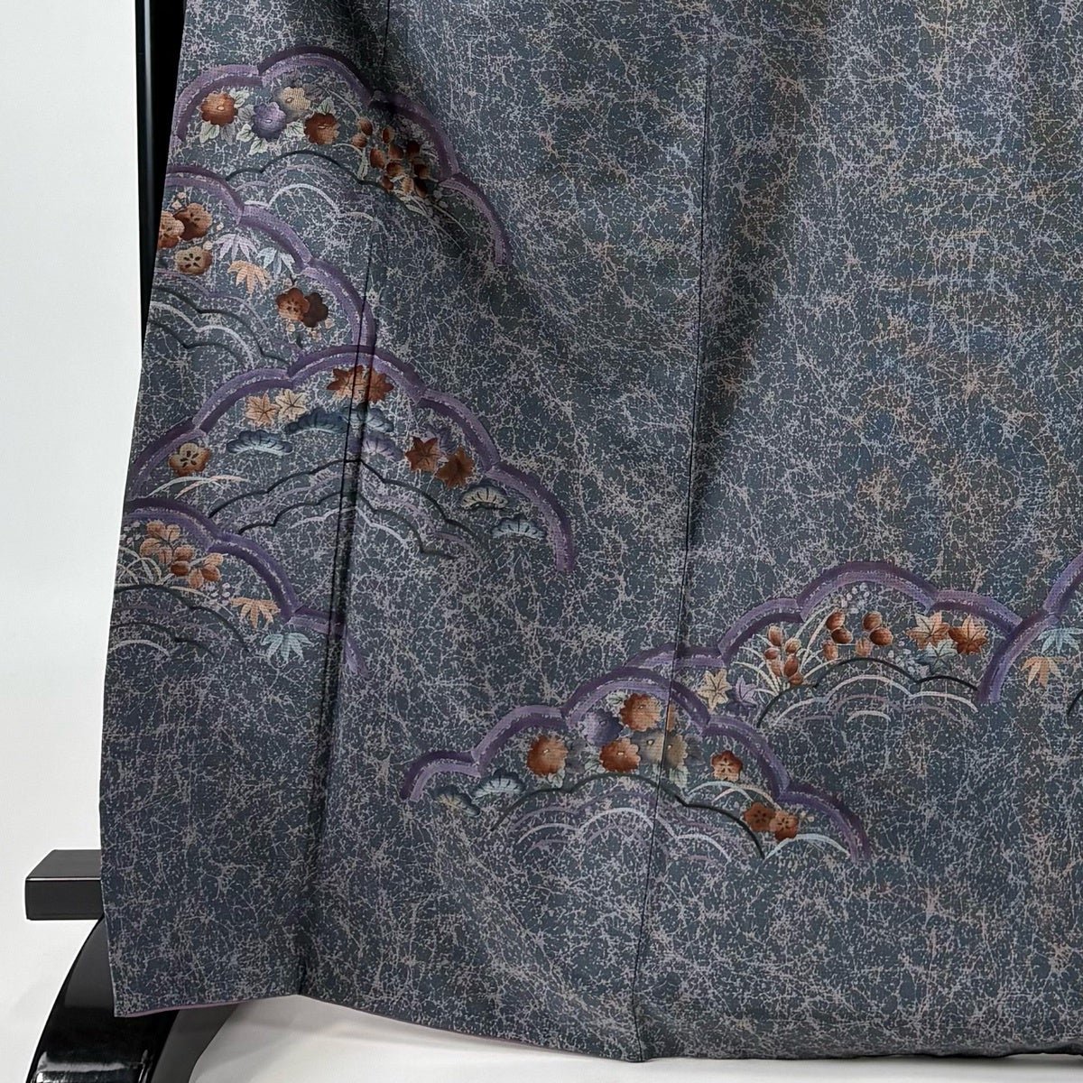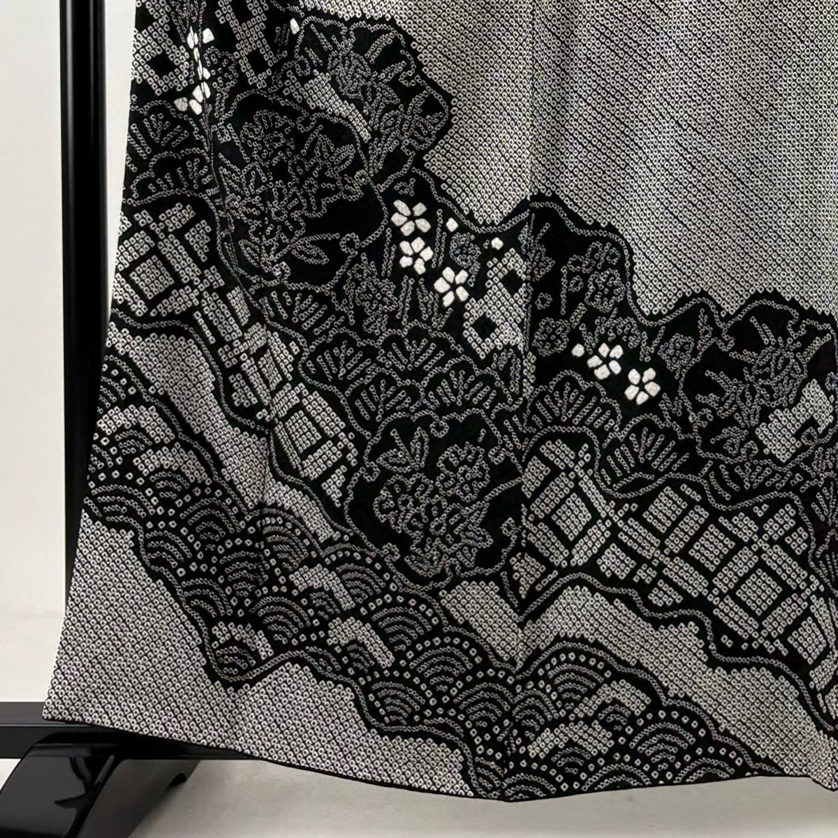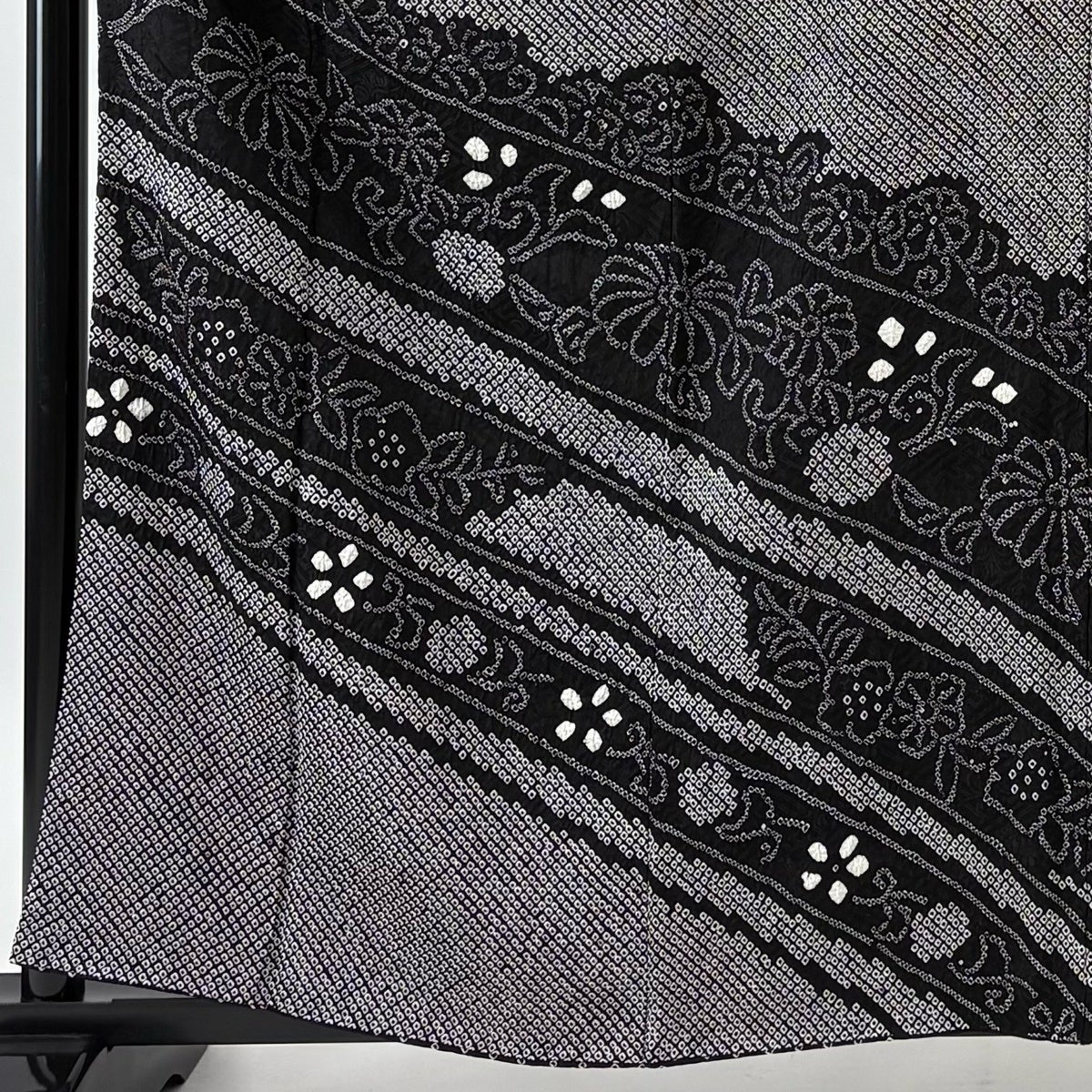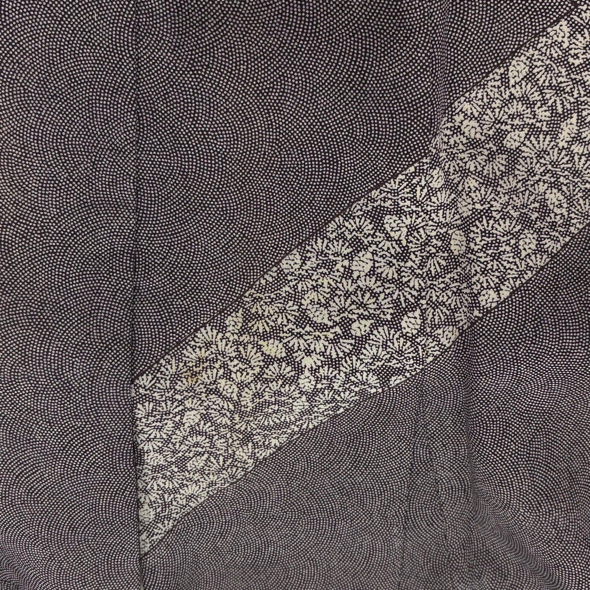 訪問着 身丈162cm 裄丈65cm M 袷 草花 青海波 絞り 黒灰 正絹 秀品