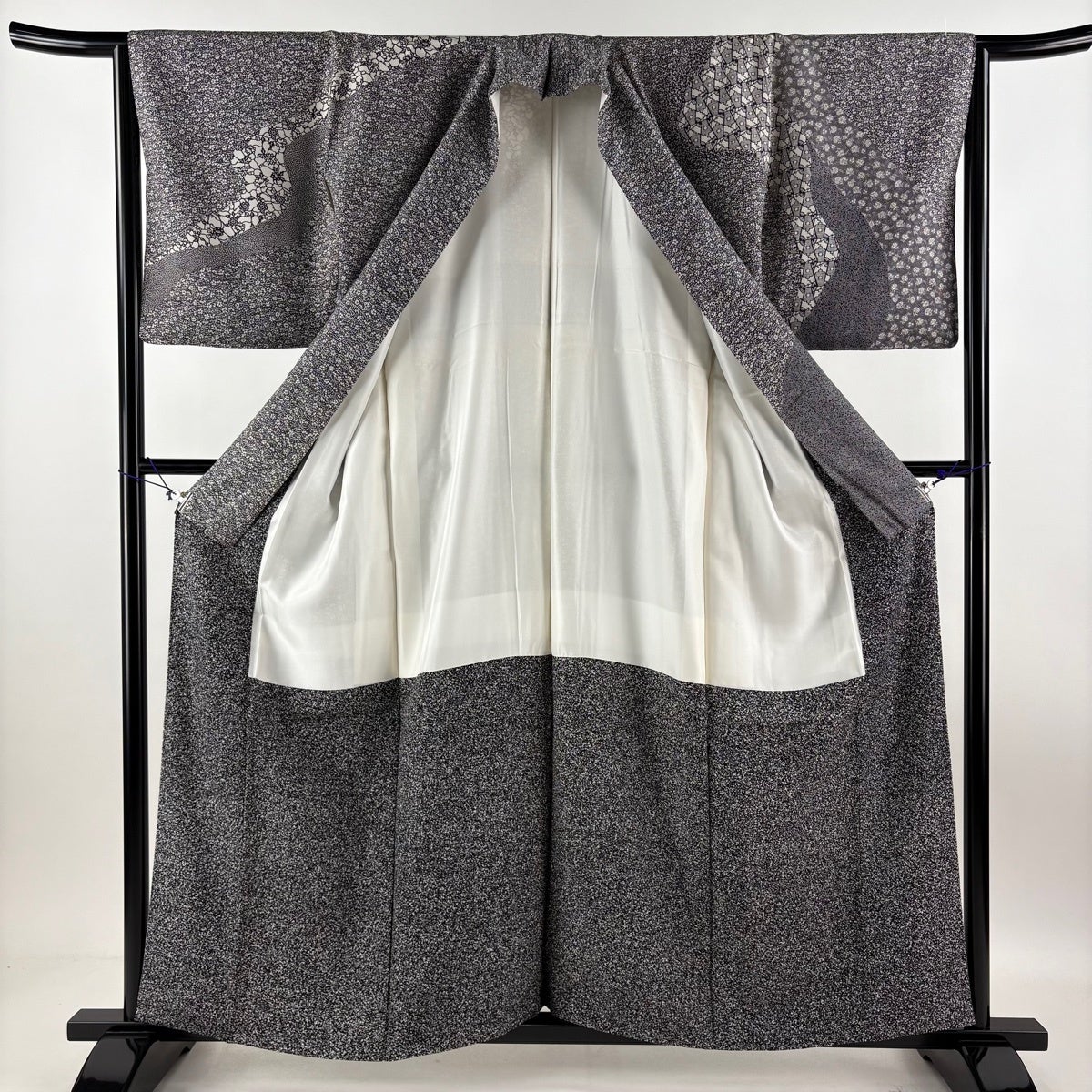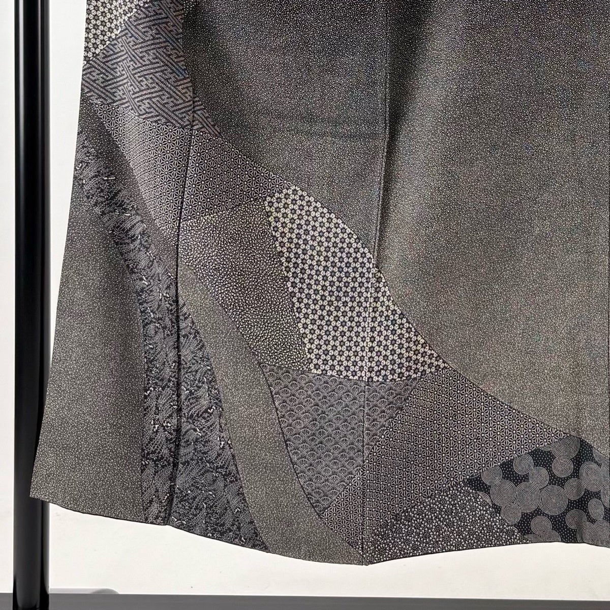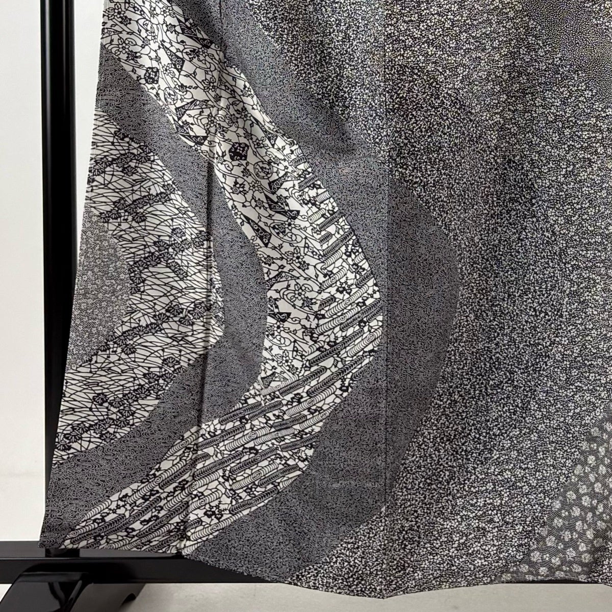 訪問着 身丈150cm 裄丈63cm S 袷 江戸小紋柄 寄せ柄 黒灰 正絹 秀品