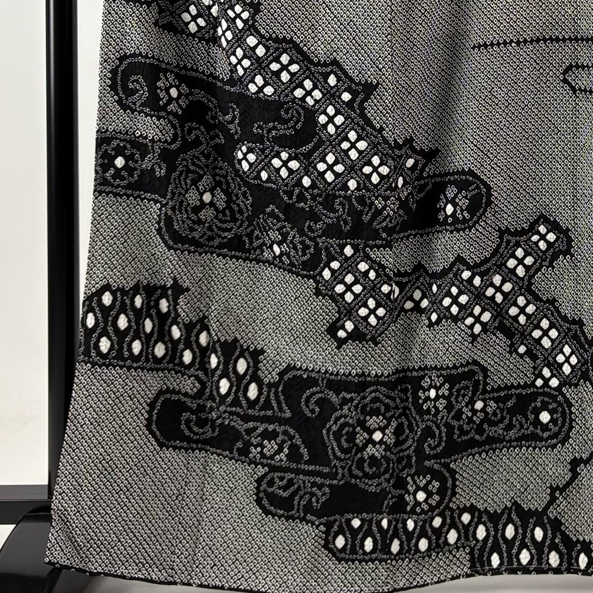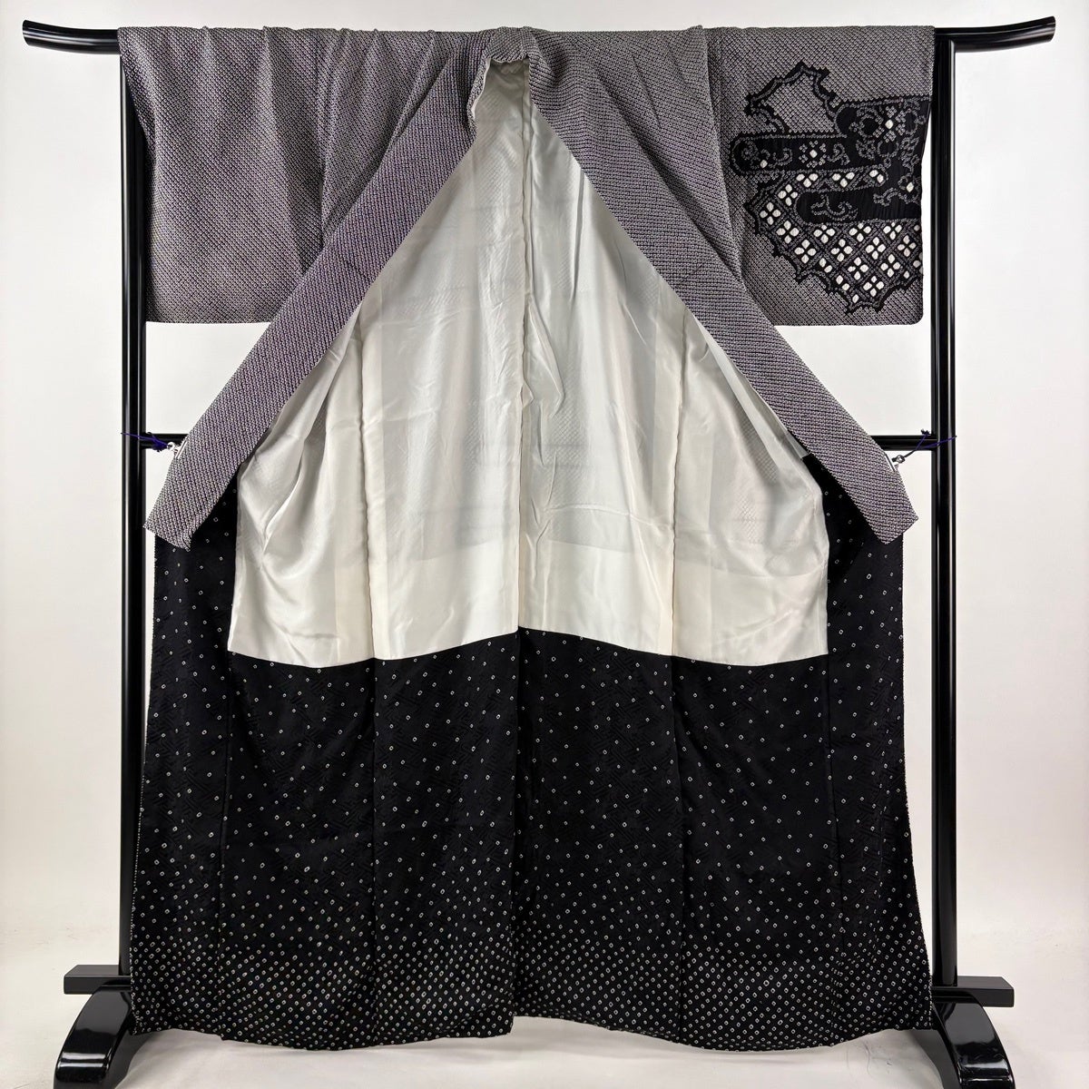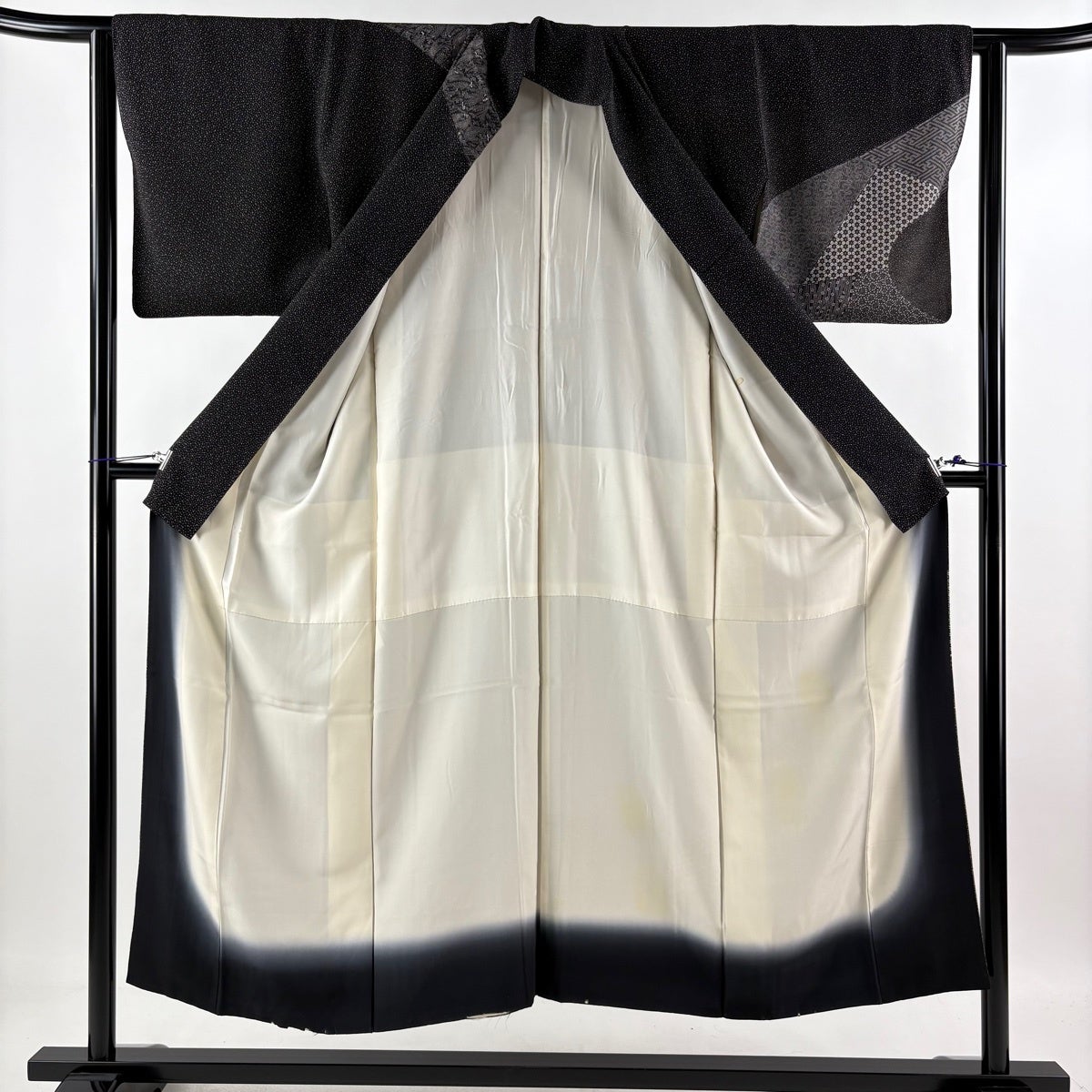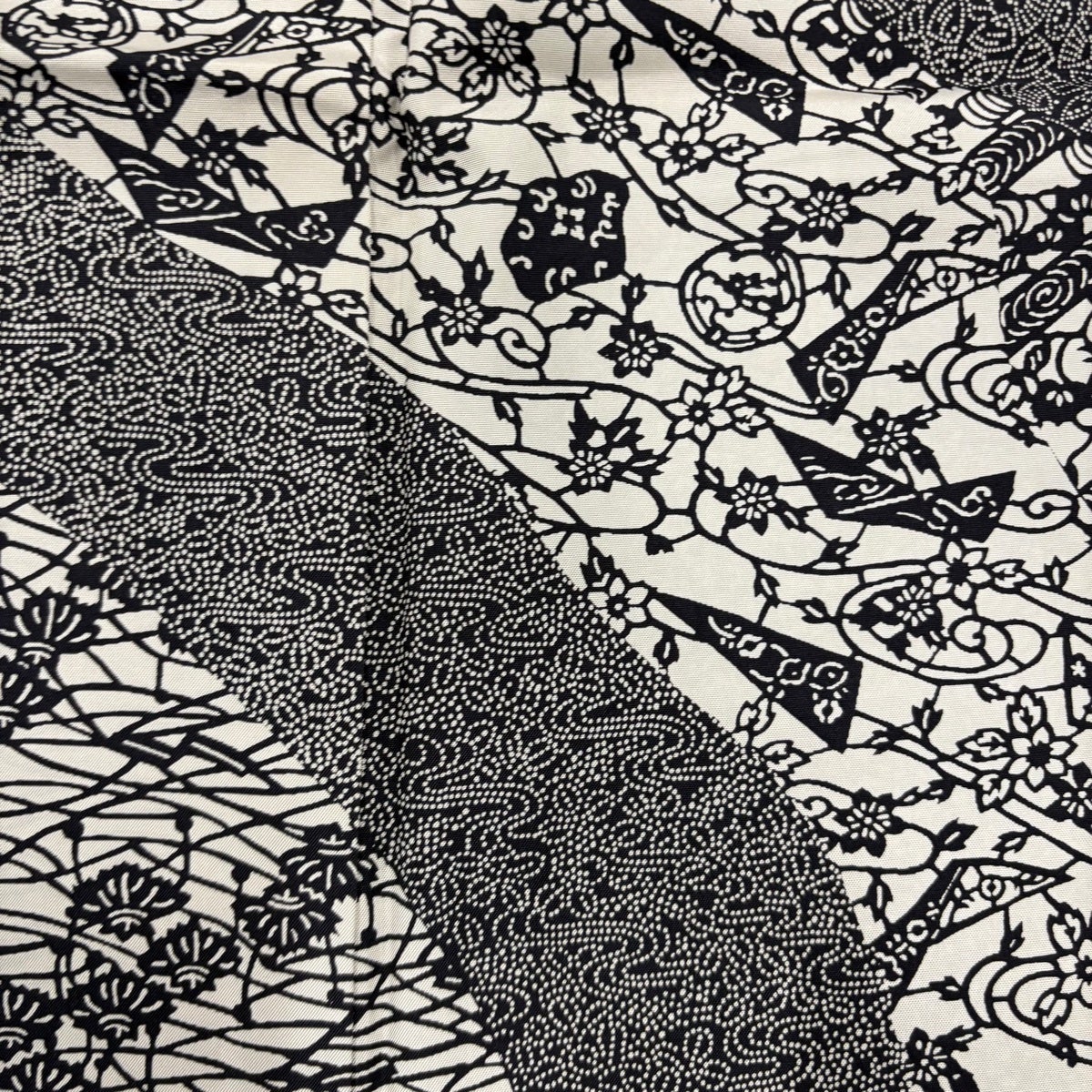訪問着 身丈150cm 裄丈63cm S 袷 江戸小紋柄 寄せ柄 黒灰 正絹 秀品
