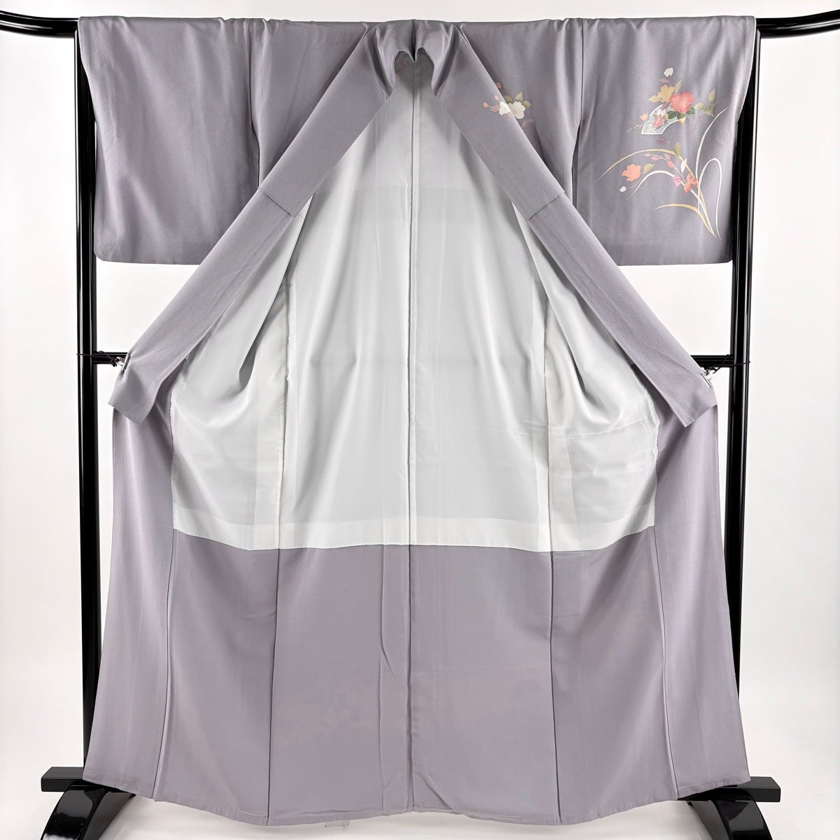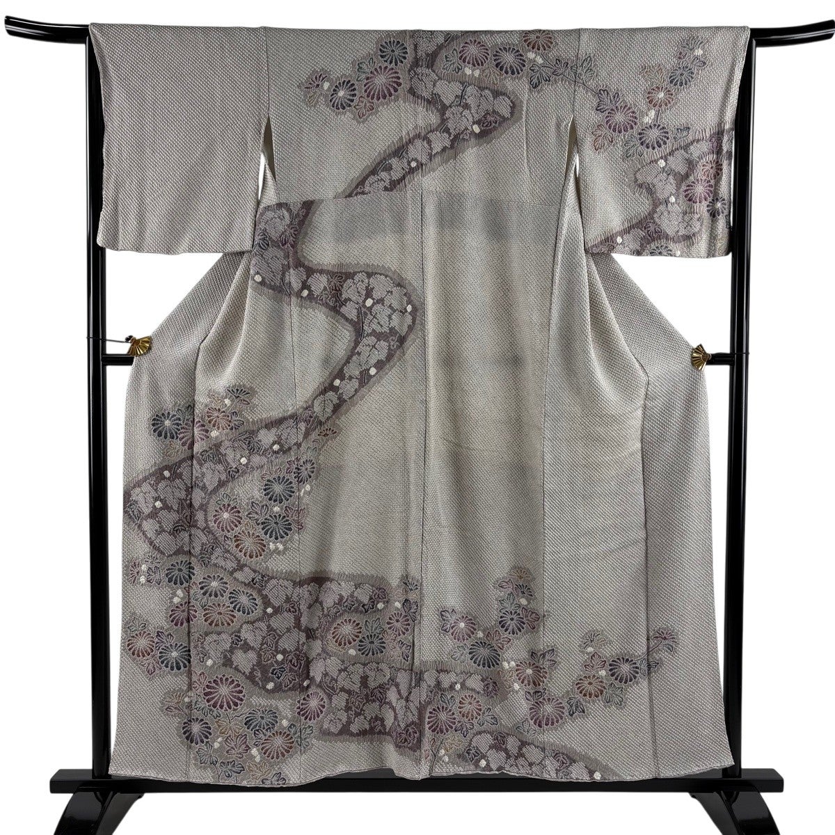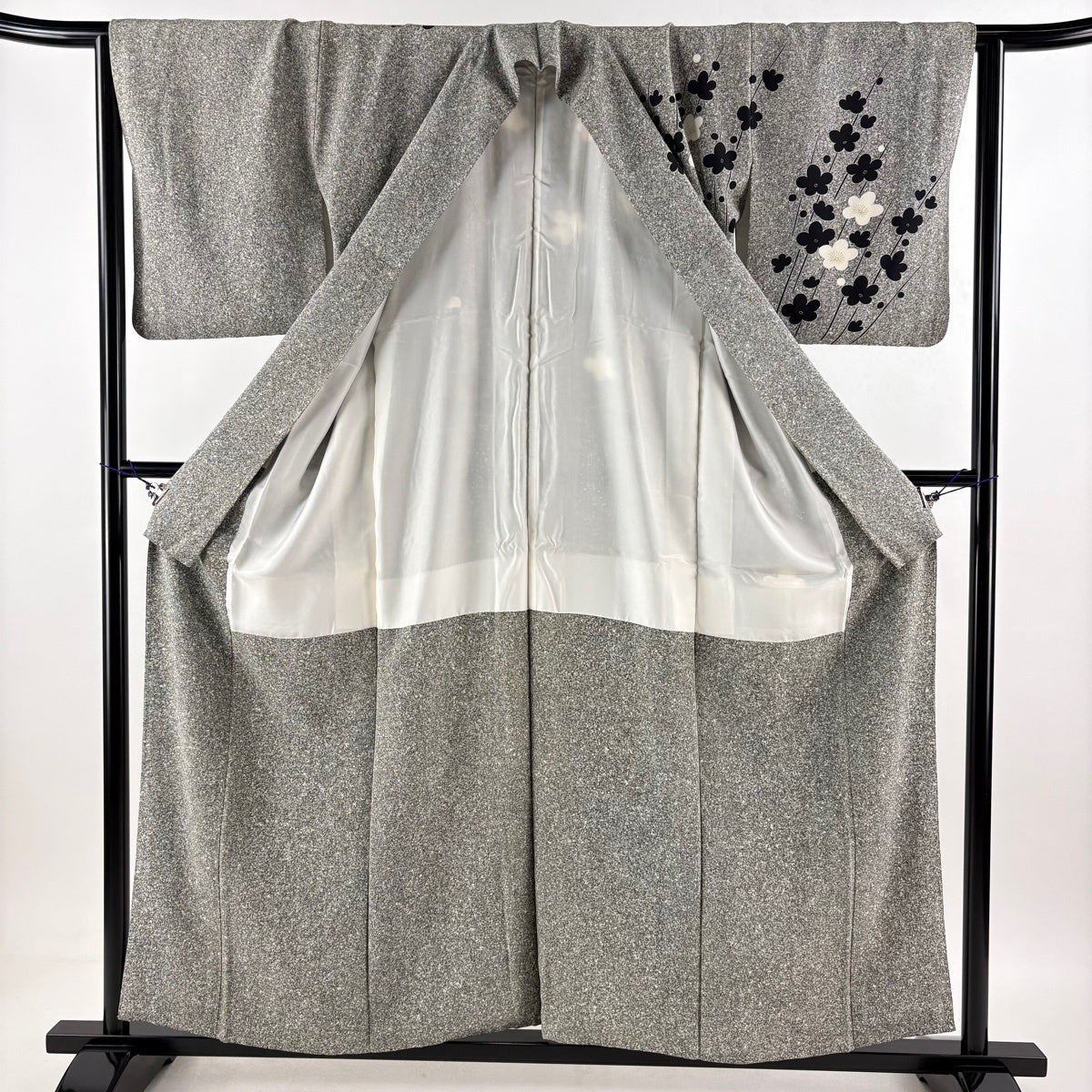 訪問着 身丈156cm 裄丈63cm S 袷 落款あり 梅 金彩 灰色 正絹 秀品